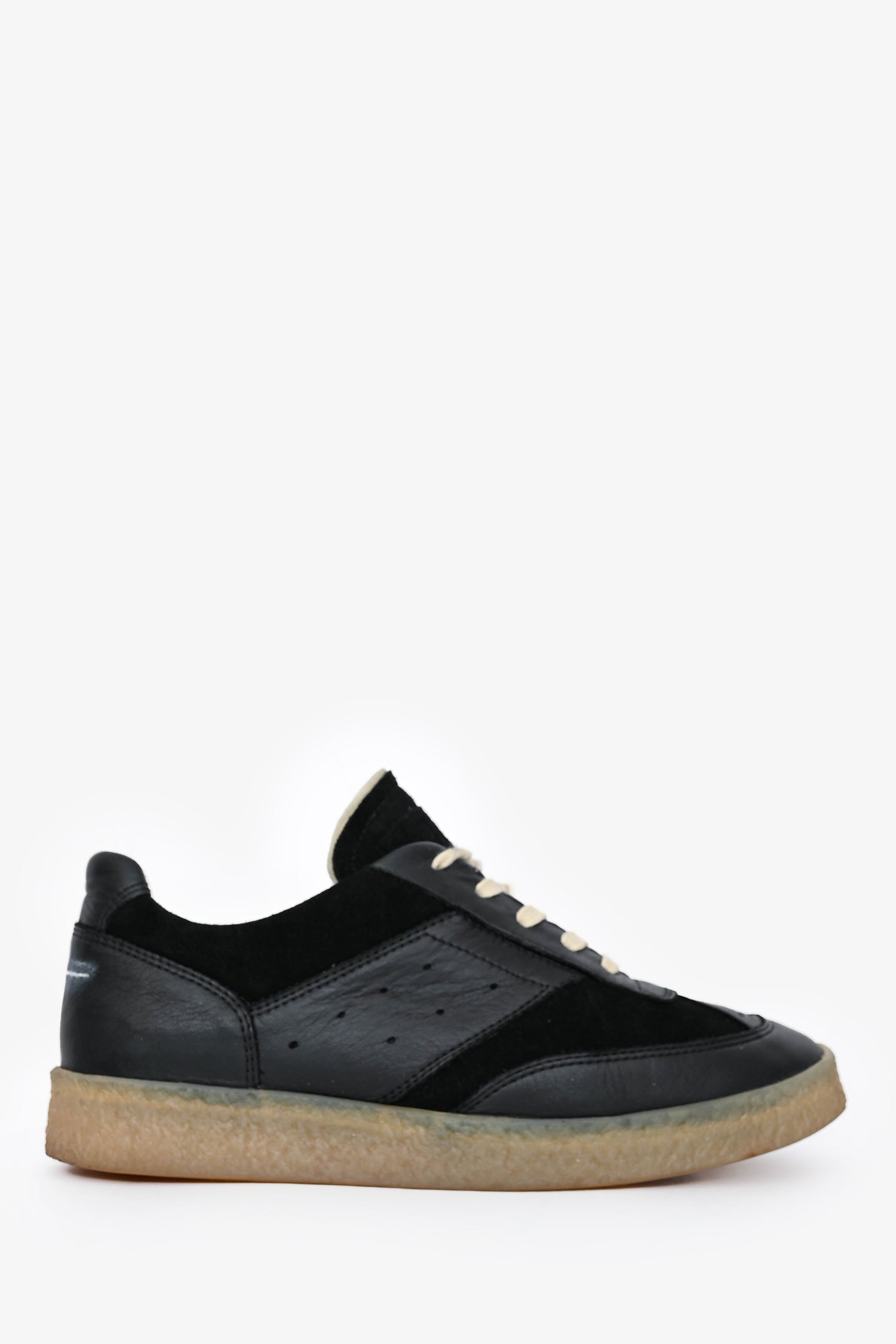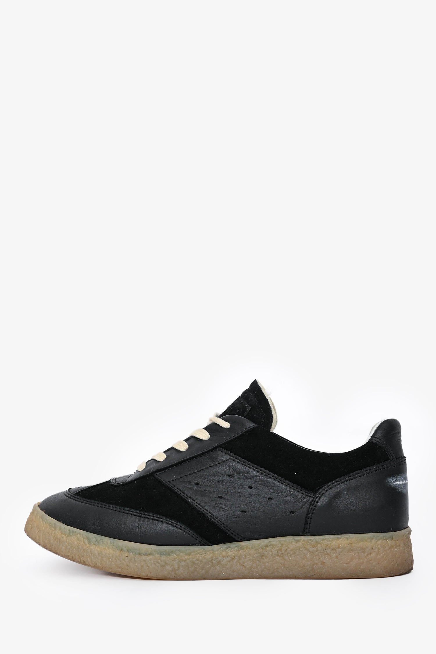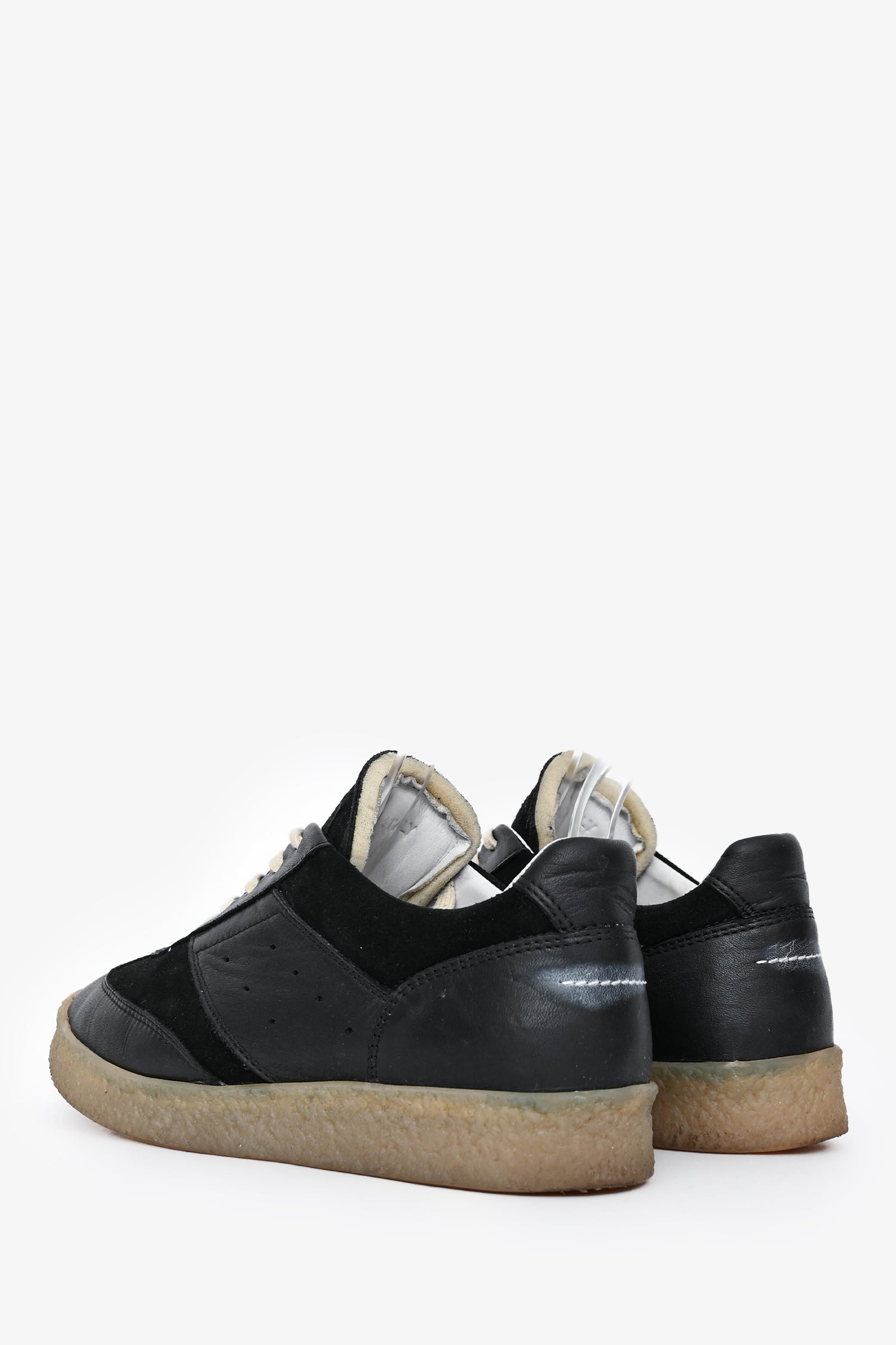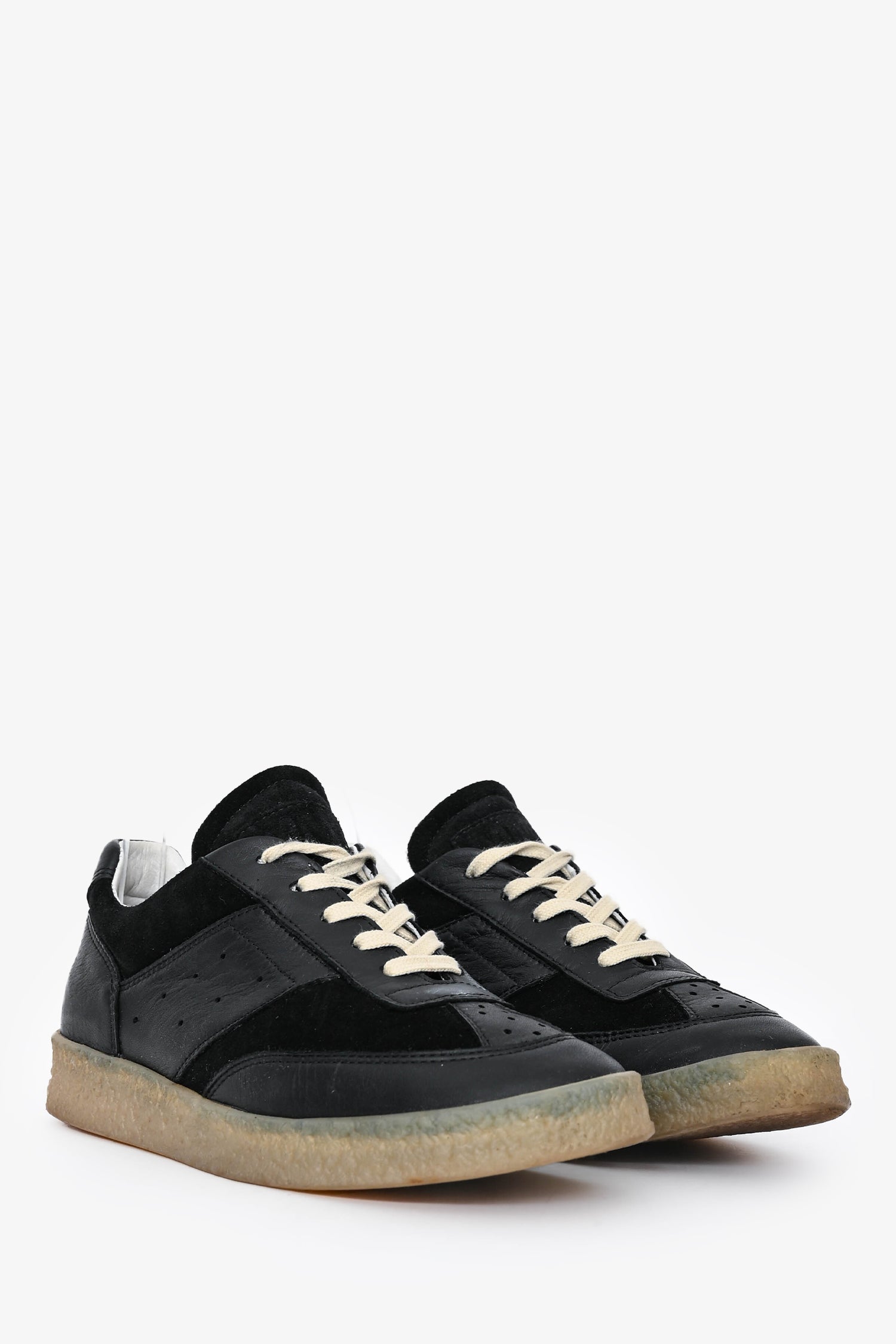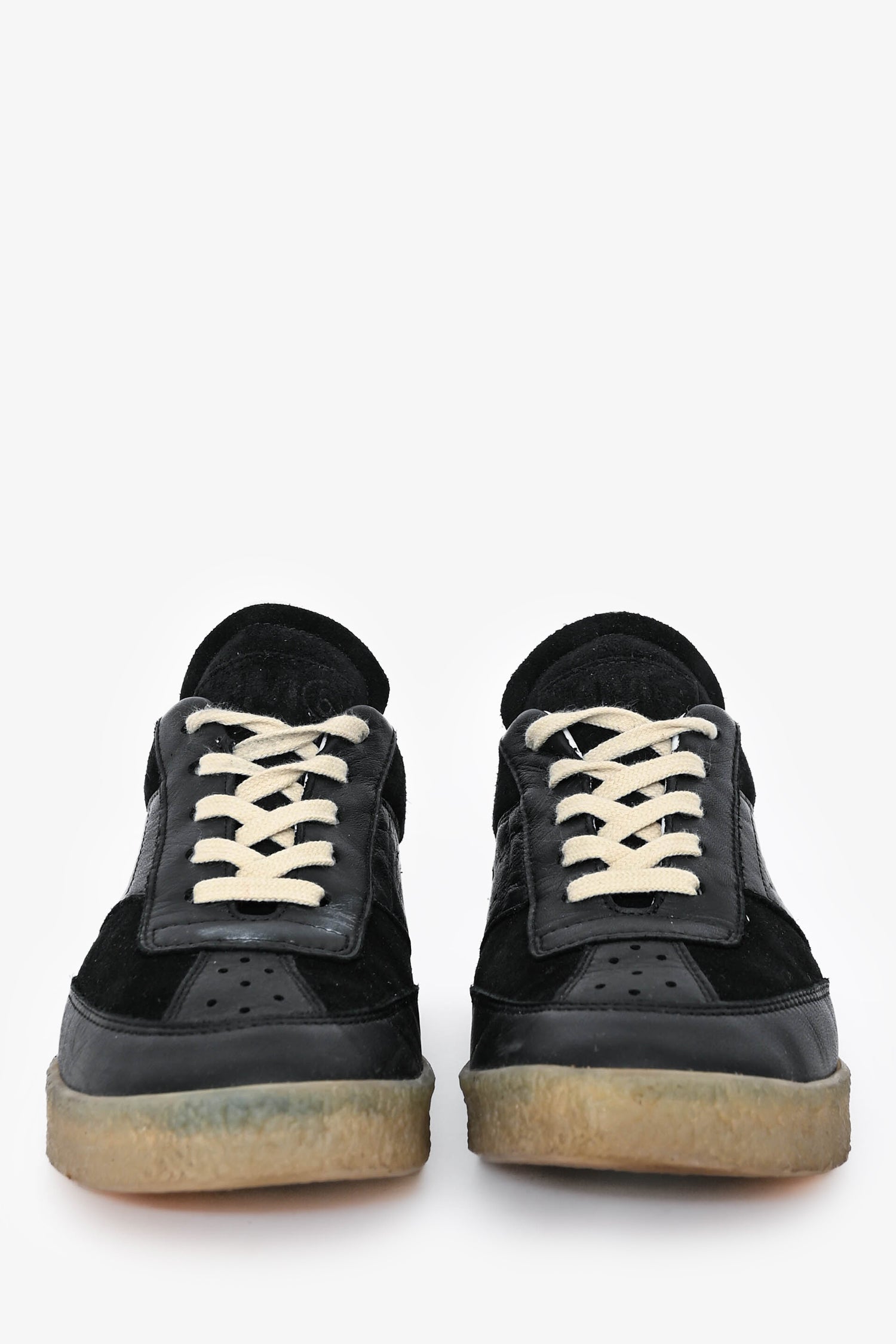 Refresh availabilityMM6 Maison Margiela Black Suede/Leather Sneakers. Round toe. Lace-up closure. Contrasting gum sole.