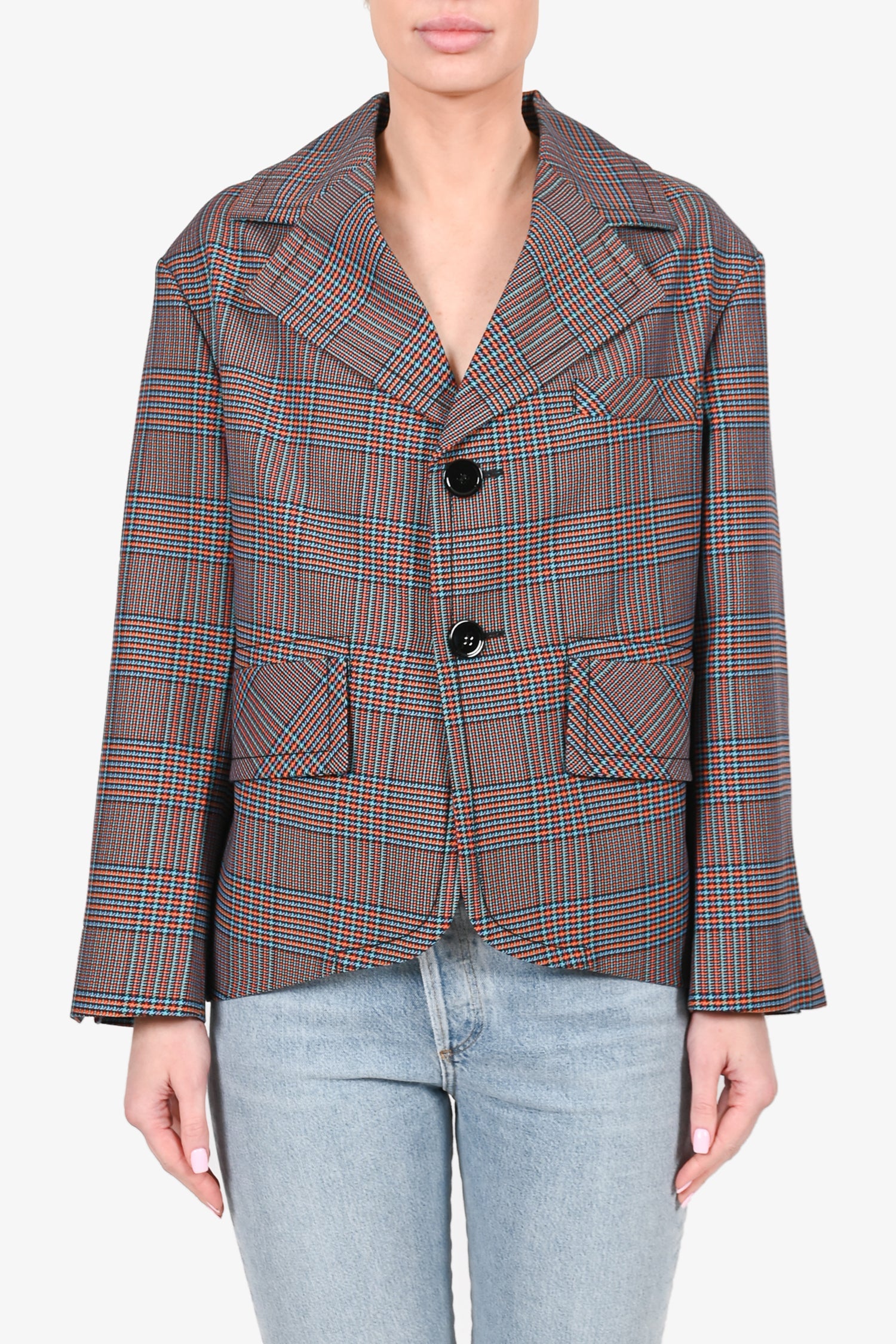 Refresh availabilityMM6 Maison Margiela Orange/ Blue Virgin Wool Houndstooth Blazer. Front button-up closure. Lined. Tonal stitching.