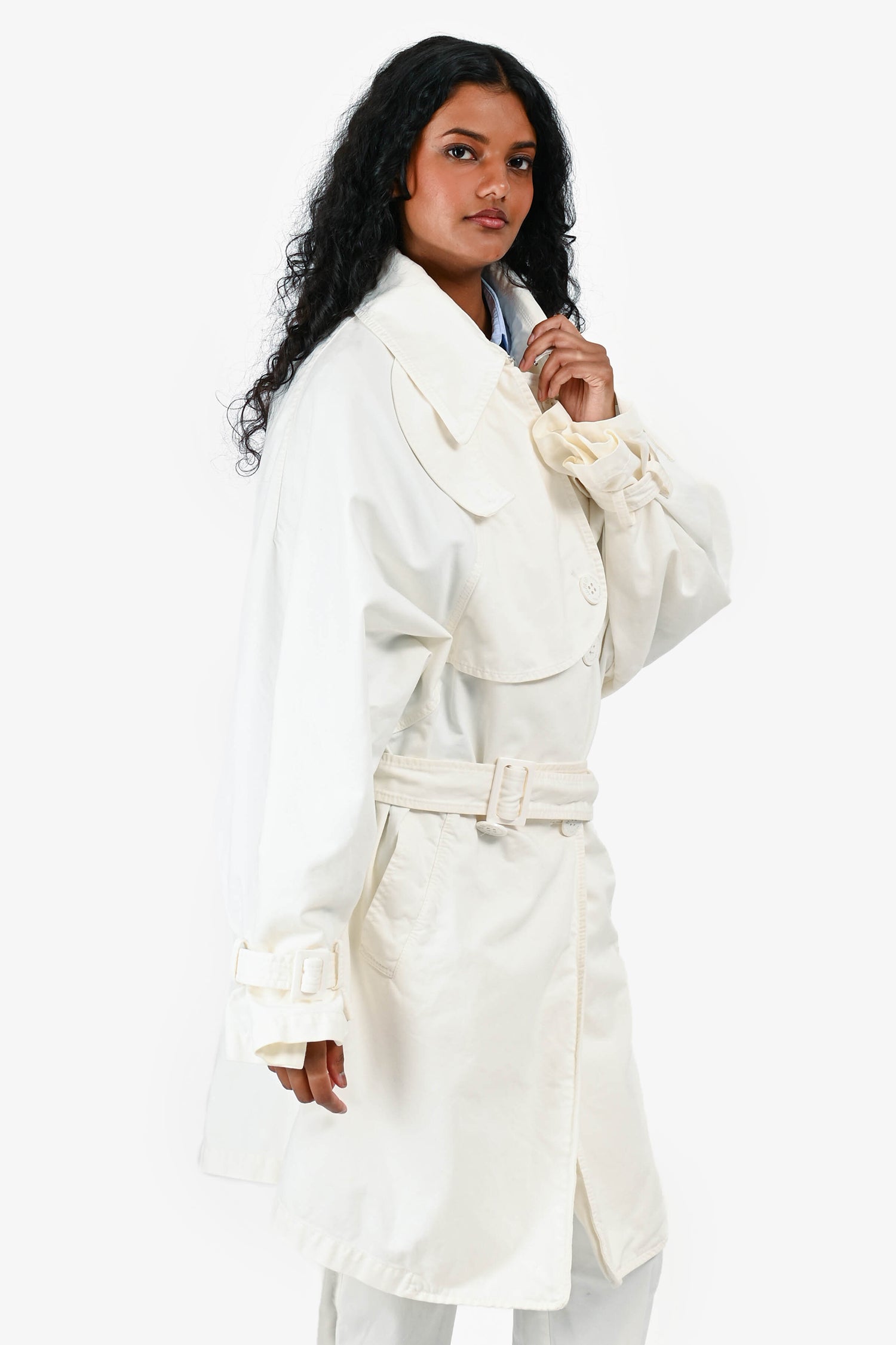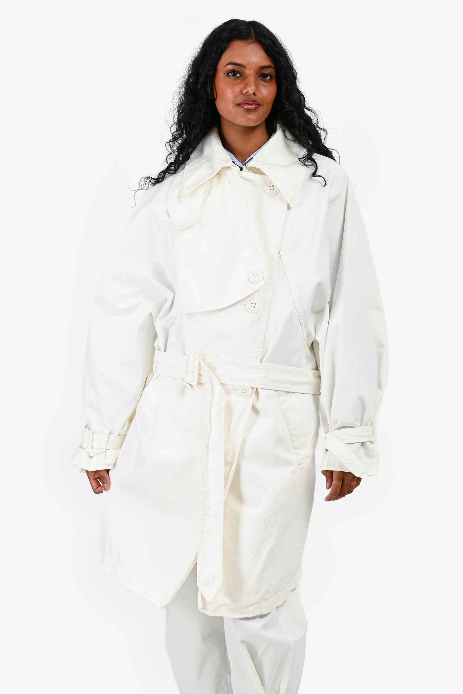 MM6 Maison Margiela White Cotton Belted Midi Trench Coat Size 44