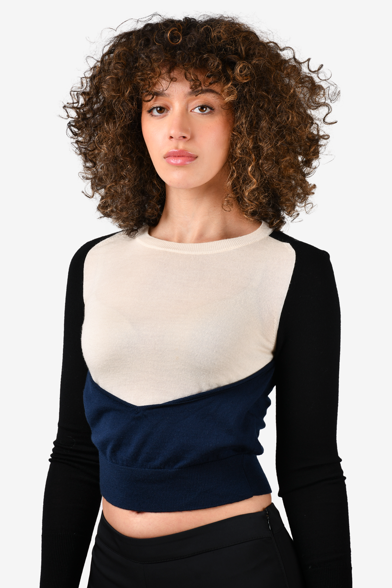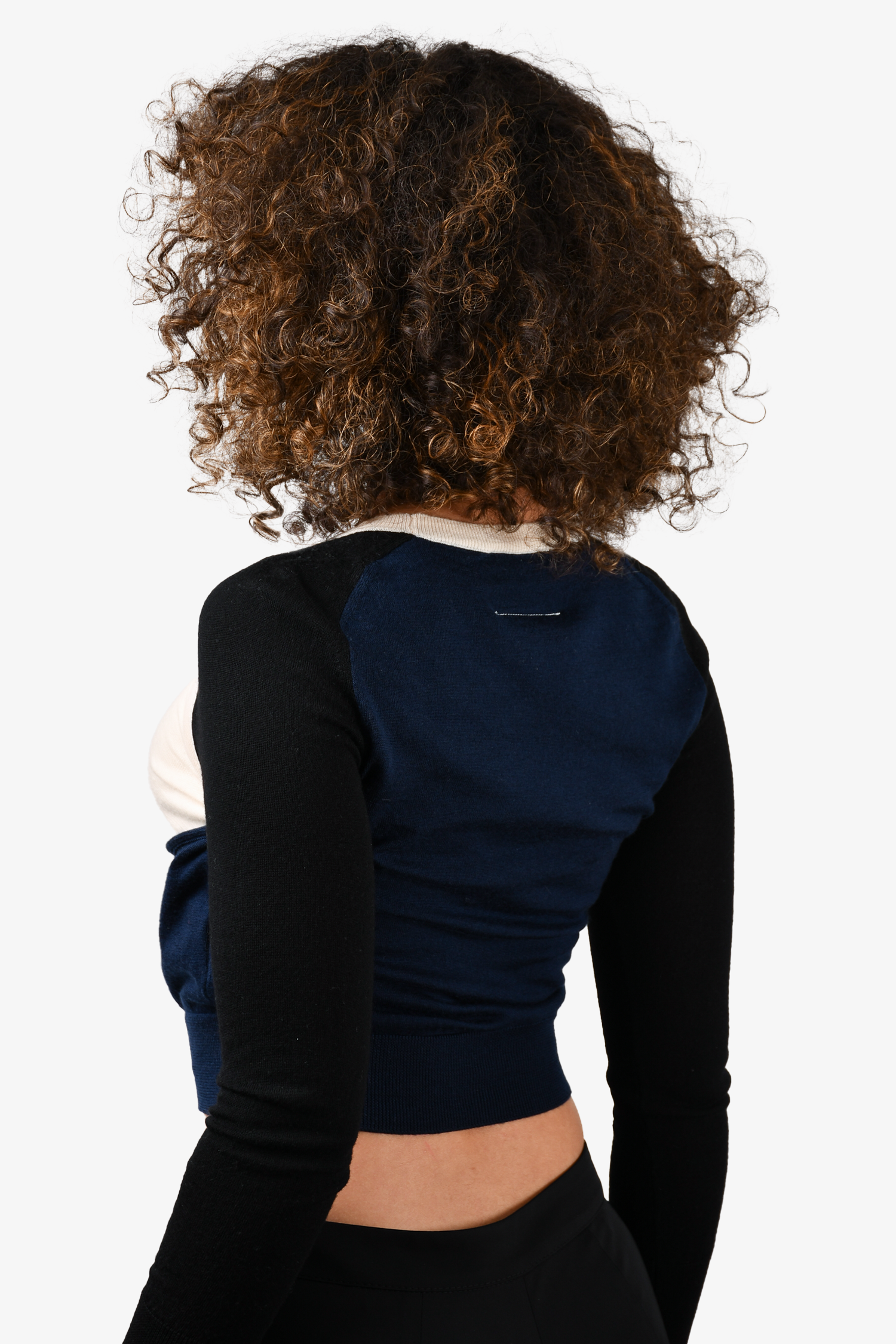 Refresh availabilityMM6 Maison Martin Margiela Cream/Black Wool Sweater. Round neck. Pull-on. Tonal stitching.