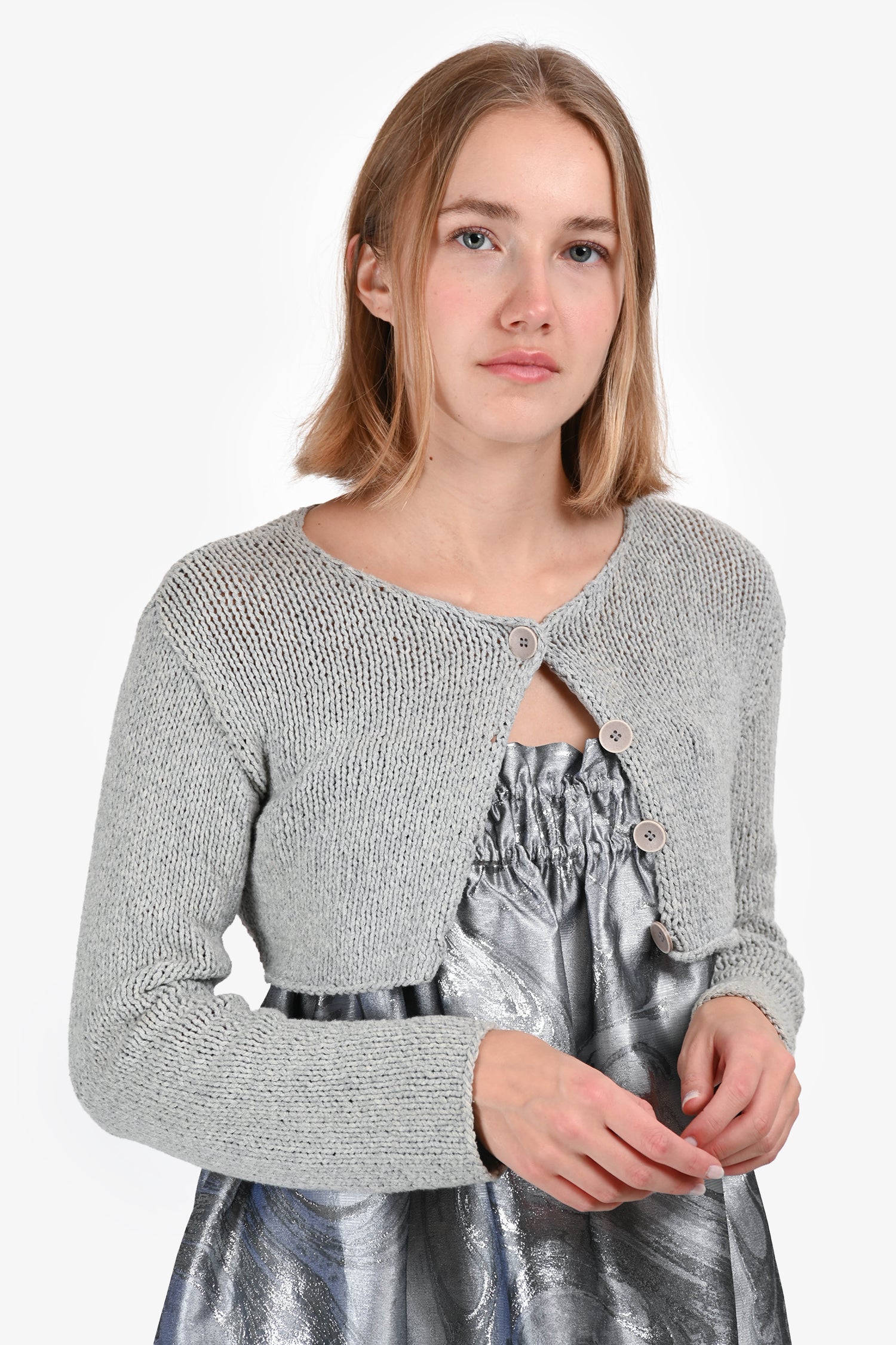 Refresh availabilityMM6 Maison Martin Margiela Light Grey Cotton Knit Crop Jacket. Slip-on. Round neckline. Front button-up closure. Tonal stitching.