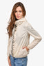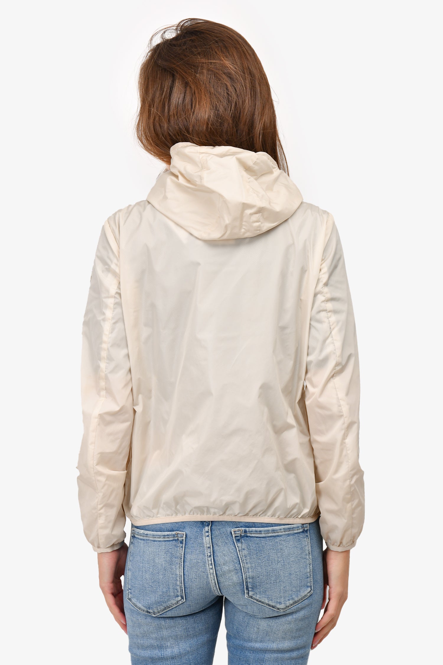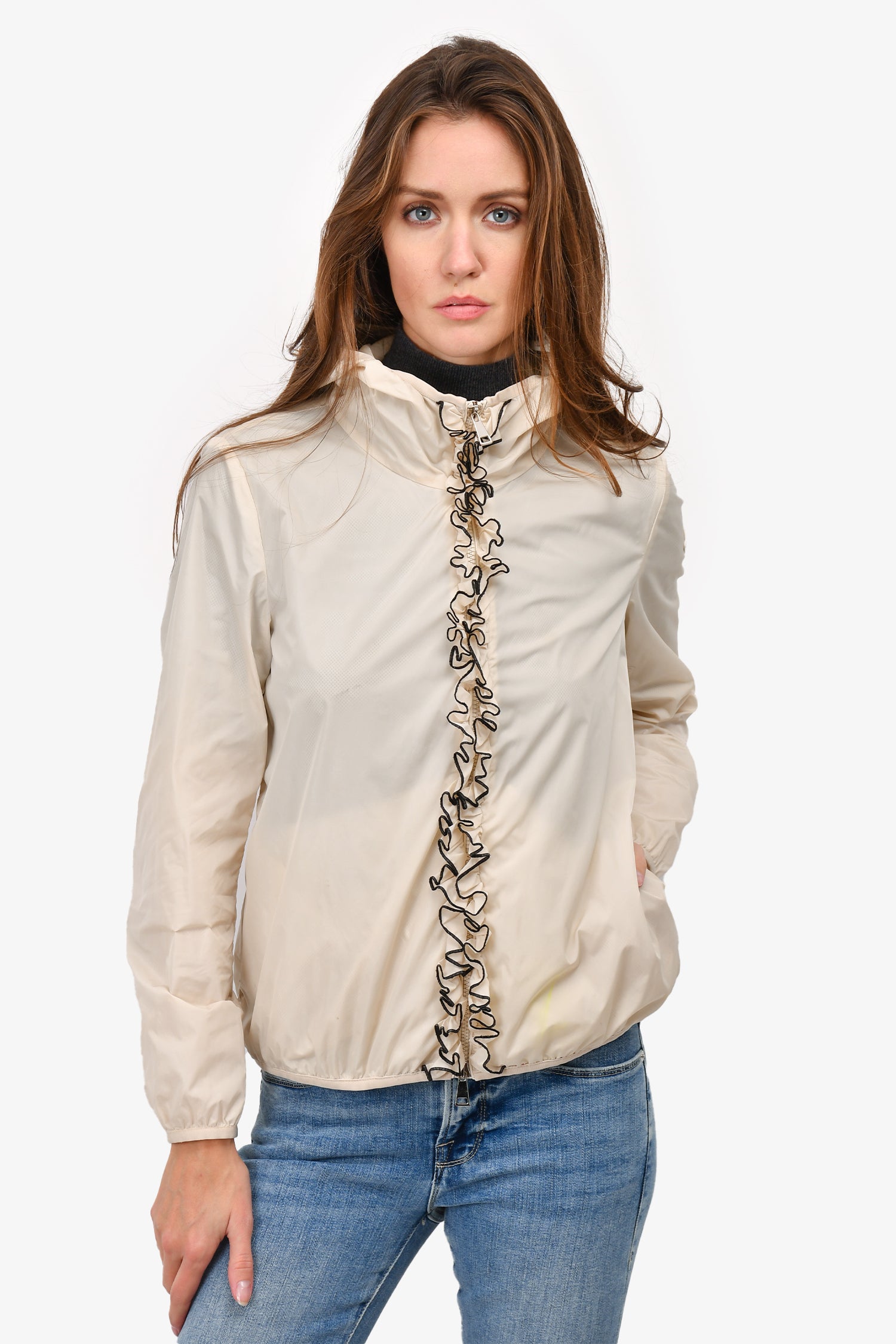 Moncler Beige Nylon 'Vivre' Hooded Jacket With Black Ruffle Trim Size 2