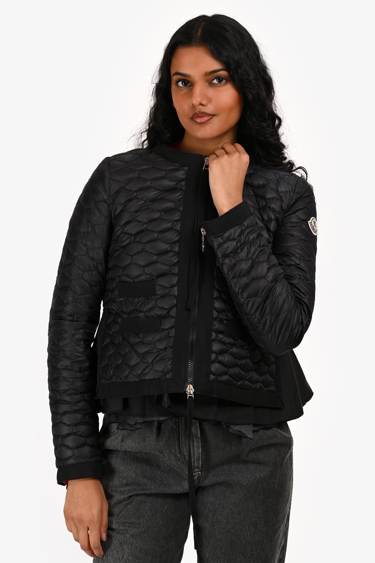 Refresh availabilityMoncler Black Hikaru Giubbotto Light Down Jacket. Slip-on. Collarless neckline. Front 2-way zip closure. 4 exterior slip pockets. Side slits. Cuffs with zip-up detail. Silver-tone hardware. Tonal stitching.