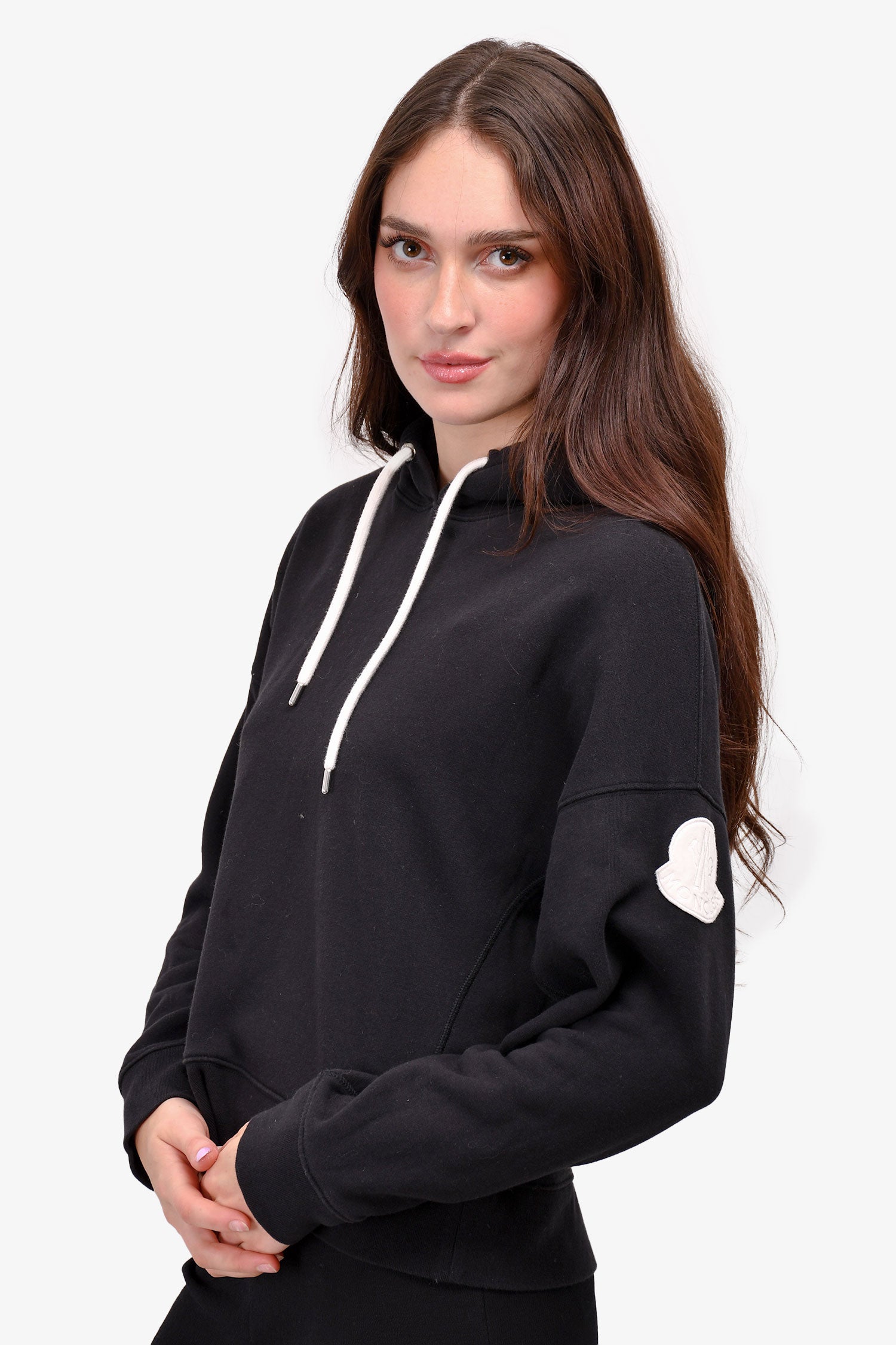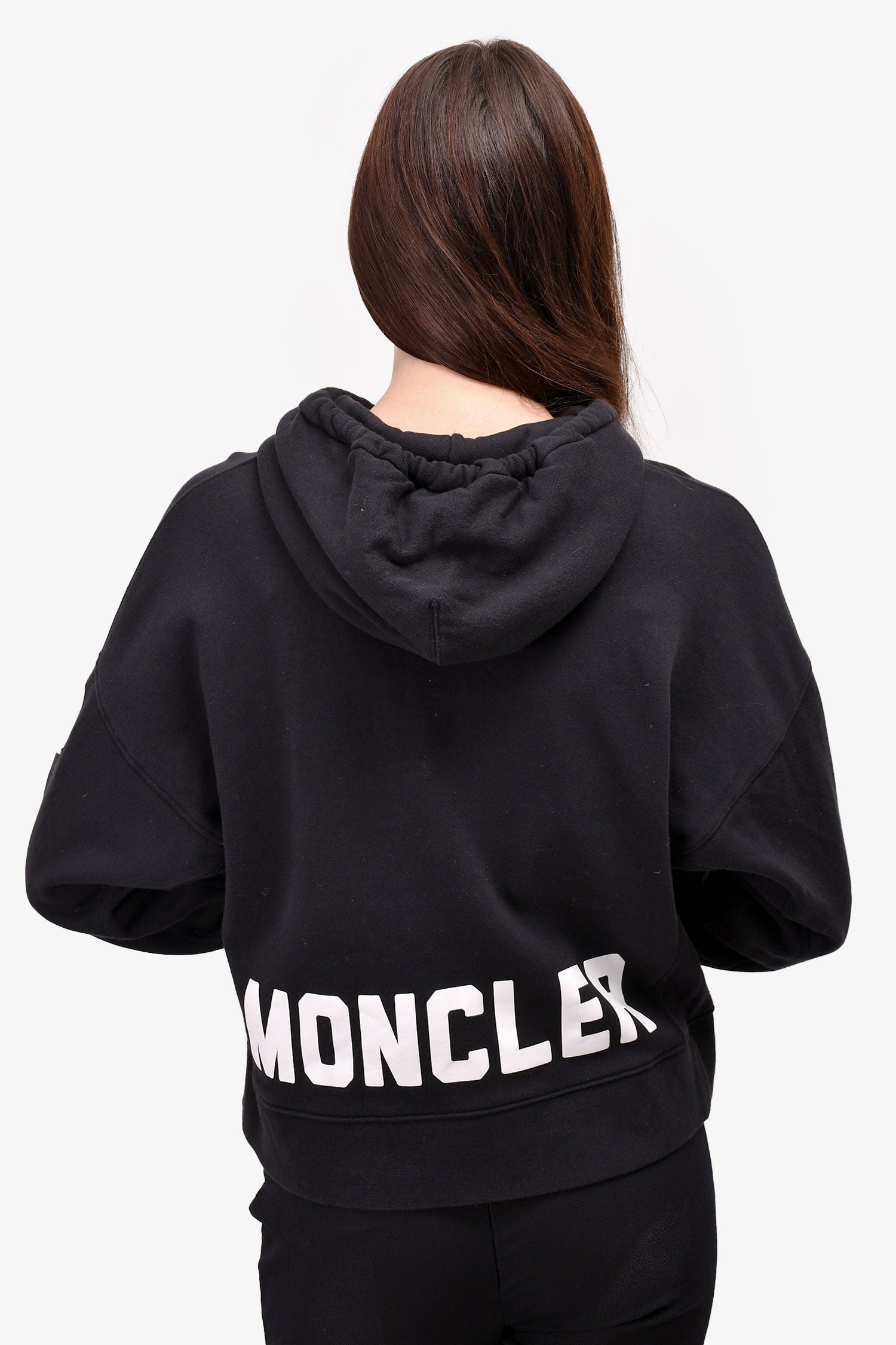 Moncler Black Maglia Girocollo Logo Printed Hoodie Size S