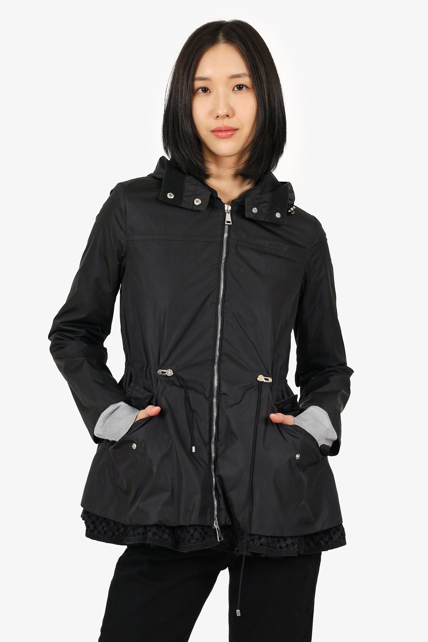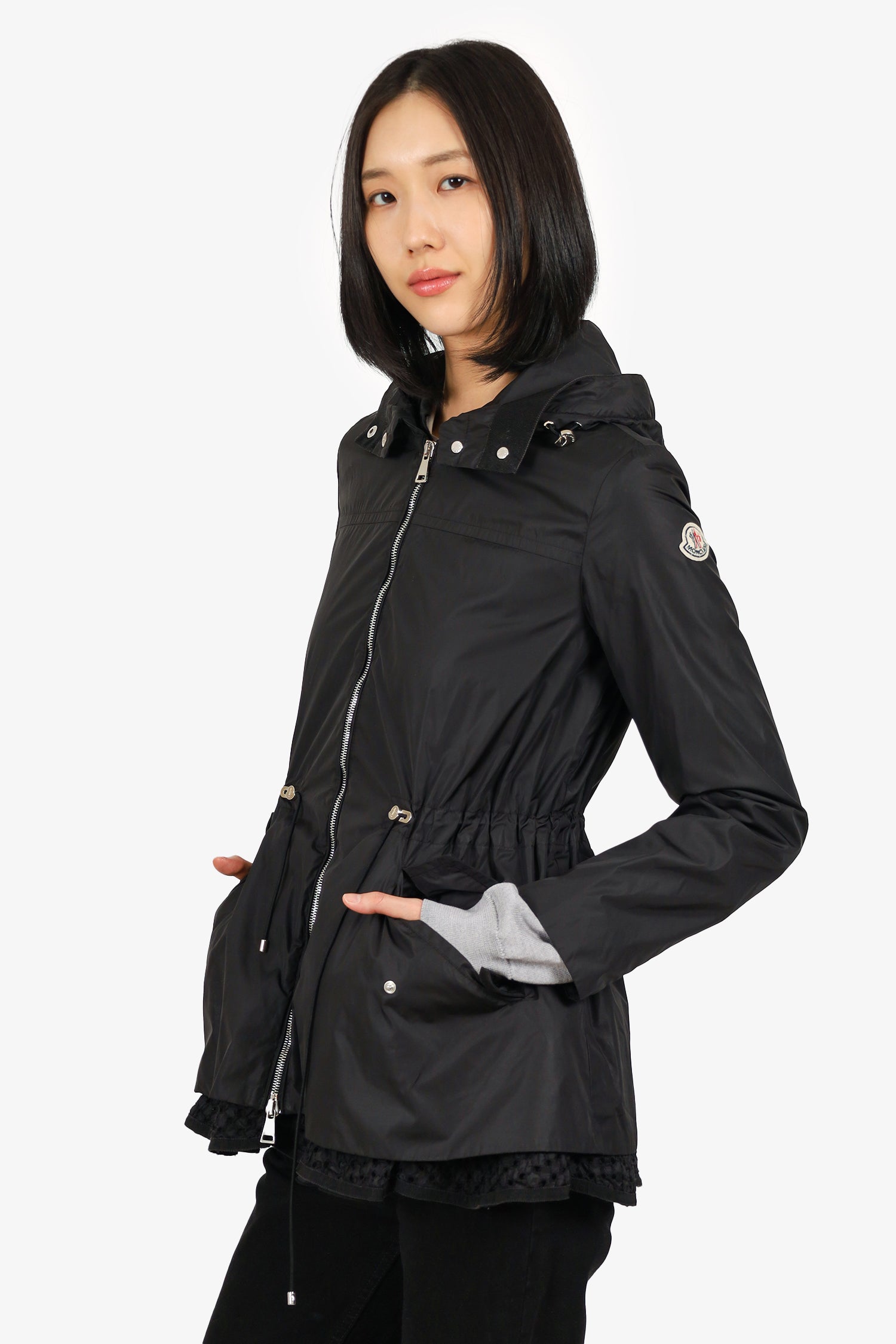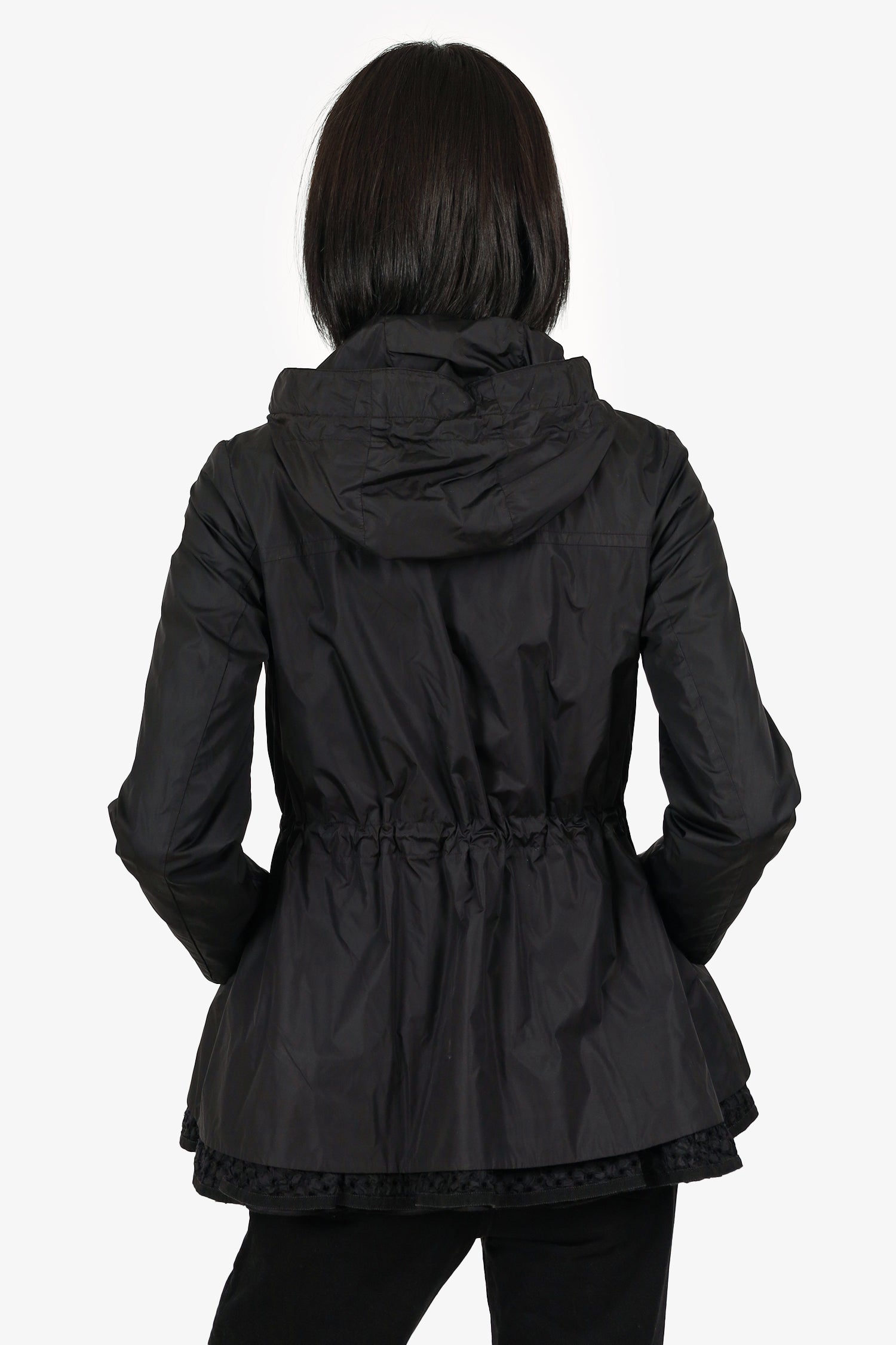 Moncler Black Nylon Cinched Waist Lace Hem Detail Jacket Size 1