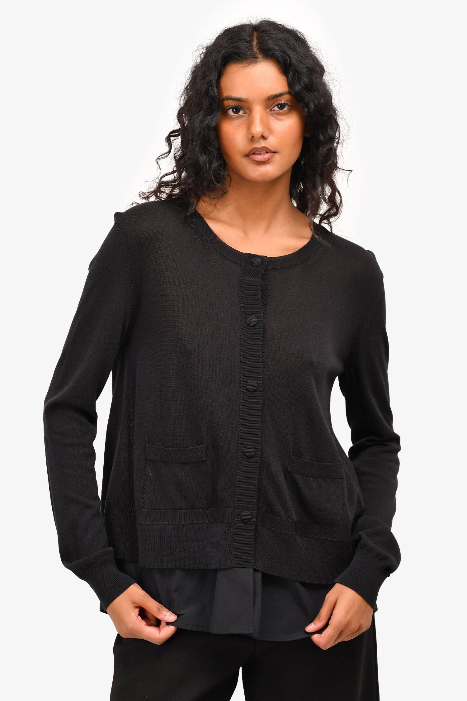 Moncler Black Nylon/Knit Button-Up Cardigan Size S