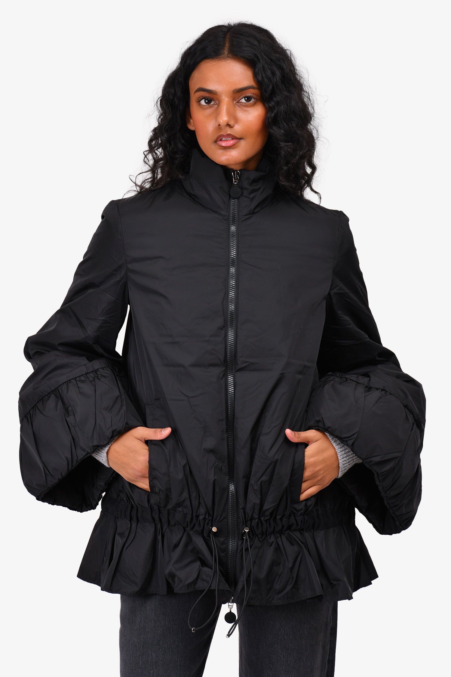 Moncler Black Nylon Peplum Hem Zip-Up Jacket Size 1