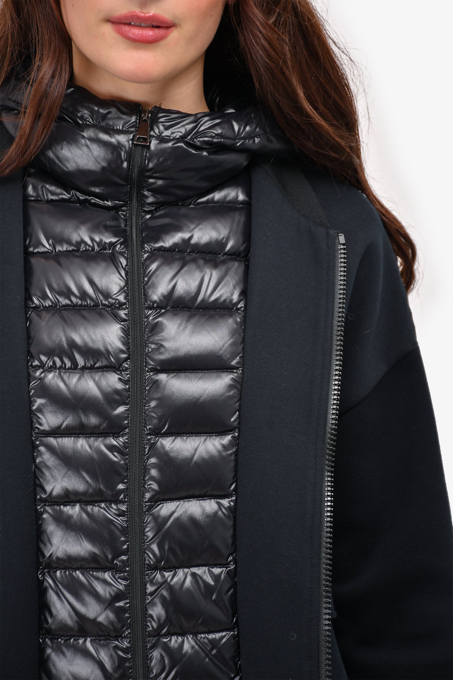 Refresh availabilityMoncler Black Puffer-Lined 'Maglia' Mens Jacket. Dual front zip closures. 4 hand pockets; 2 with fold-over flap and 2 slip. Drawstring adjustable bottom hem. Tonal stitching.