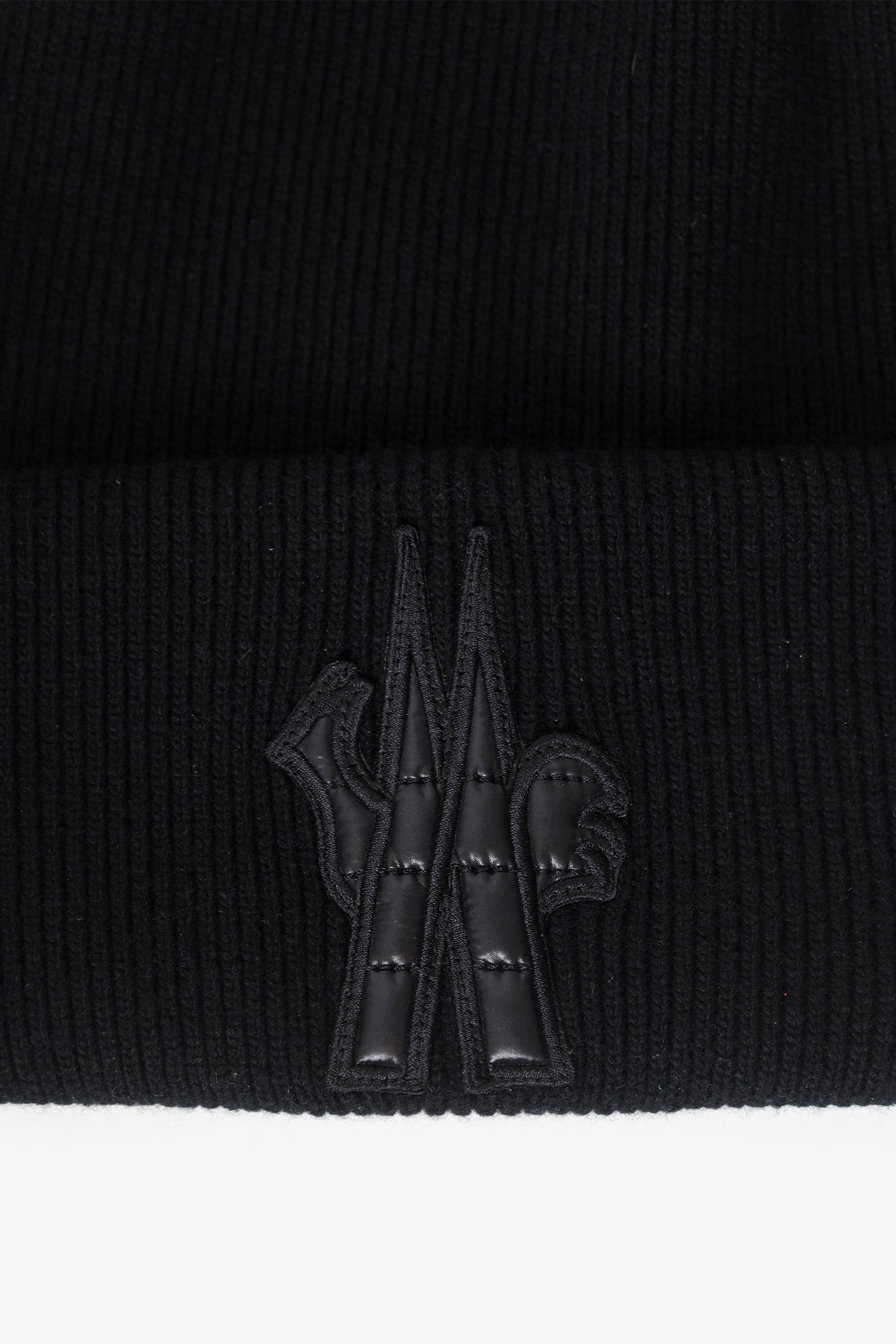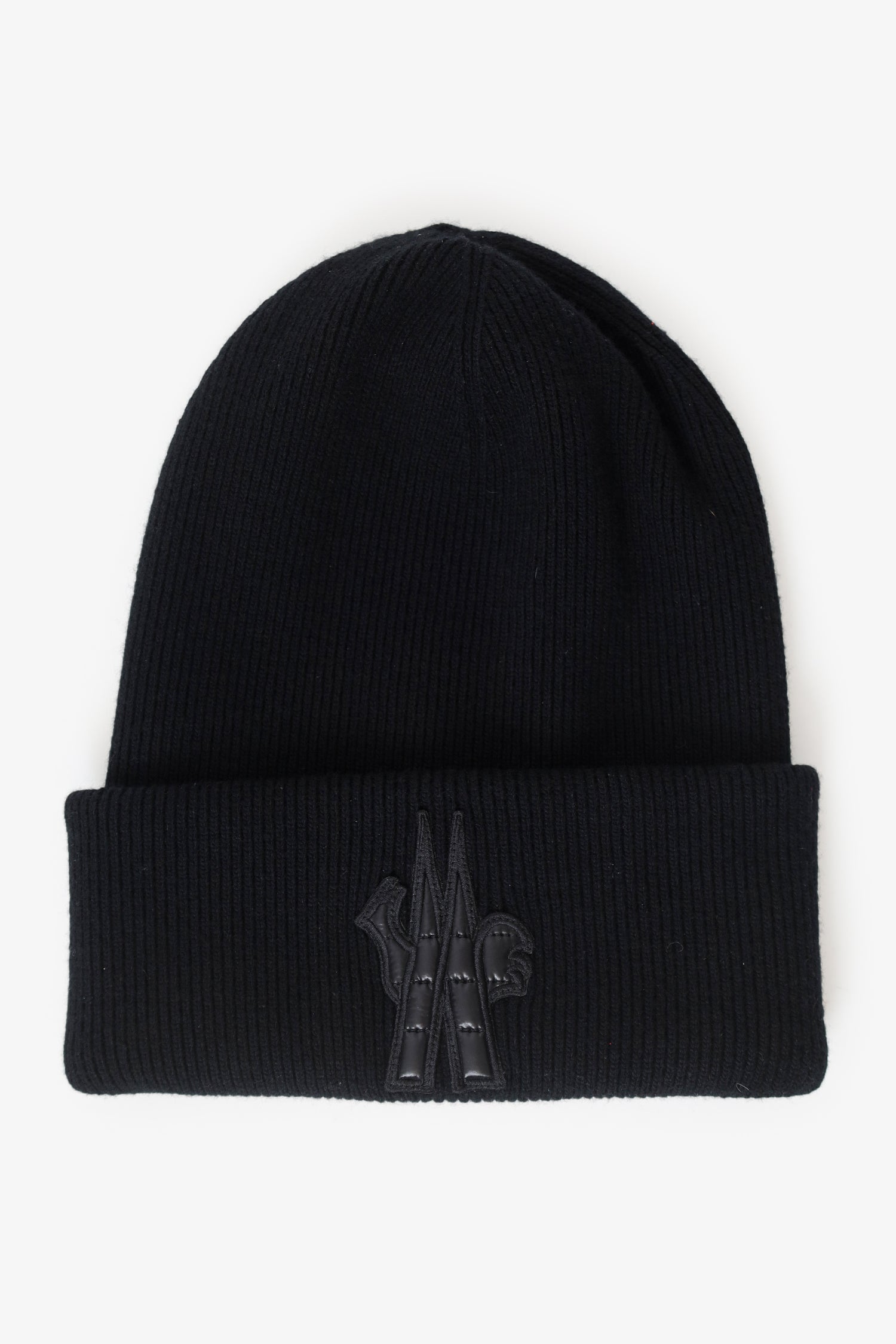 Refresh availabilityMoncler Black Ribbed Knit Logo Embroidery Beanie. Front logo embellishment. Tonal stitching.