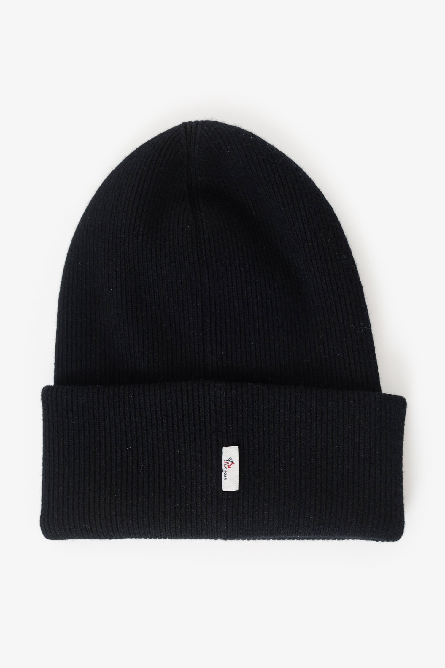 Moncler Black Ribbed Knit Logo Embroidery Beanie