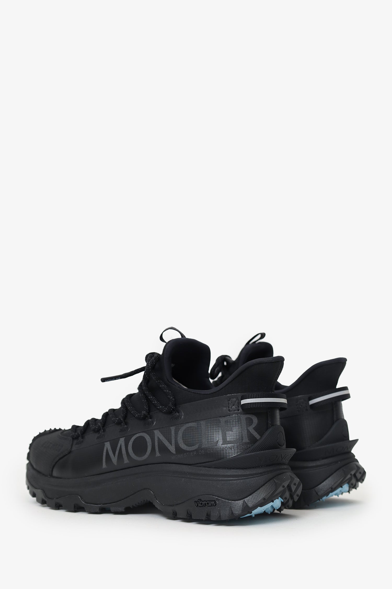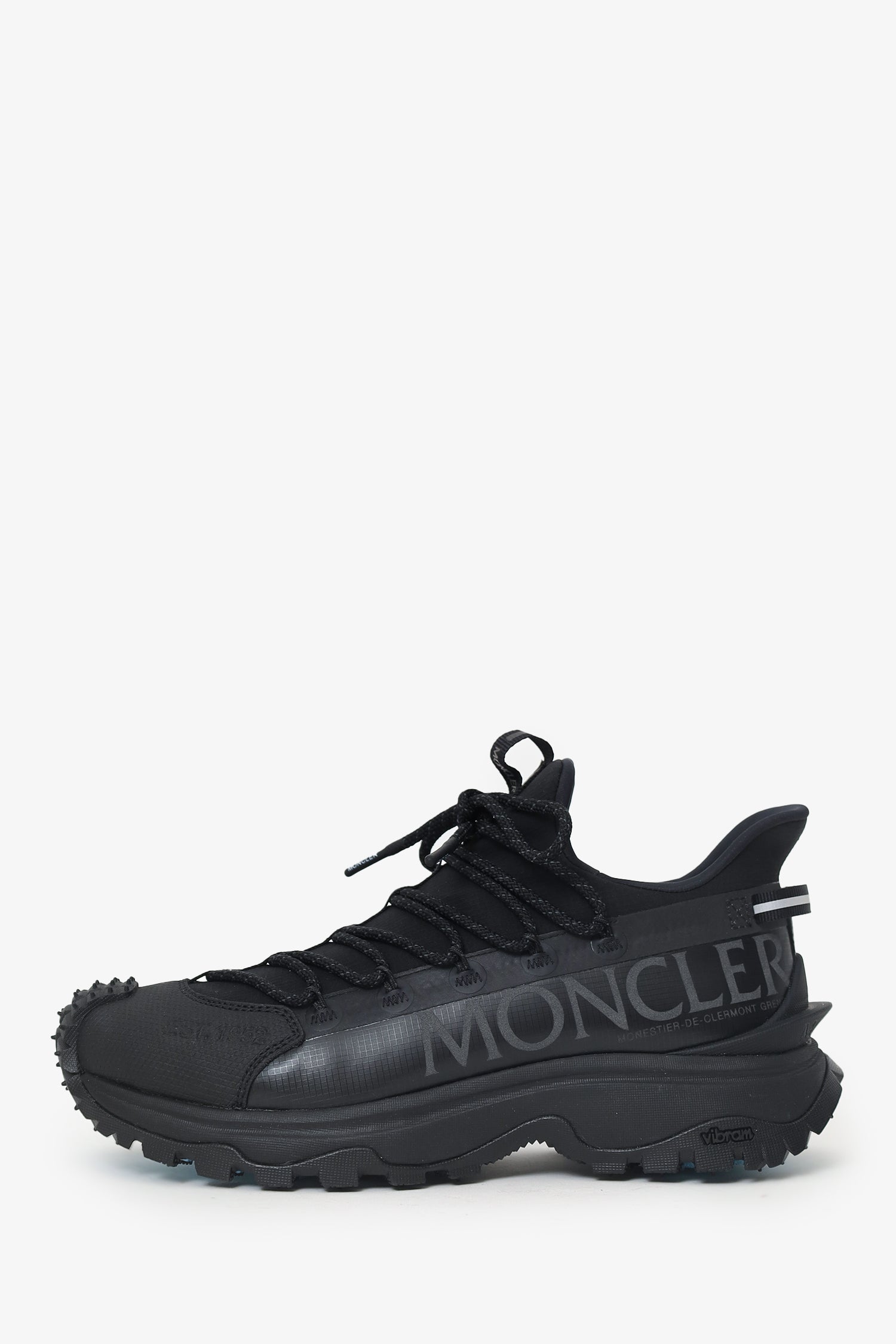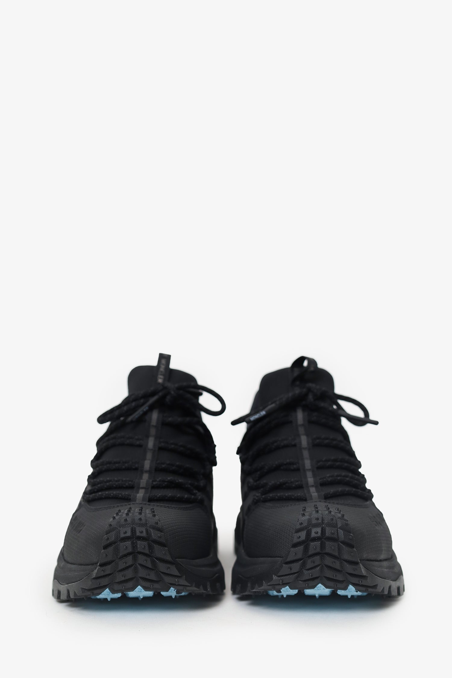 Refresh availabilityMoncler Black Trailgrip Lite2 Sneakers. Slip-on. Round toe. Front lace-up closure. Front and rear pull tabs. Tonal stitching.