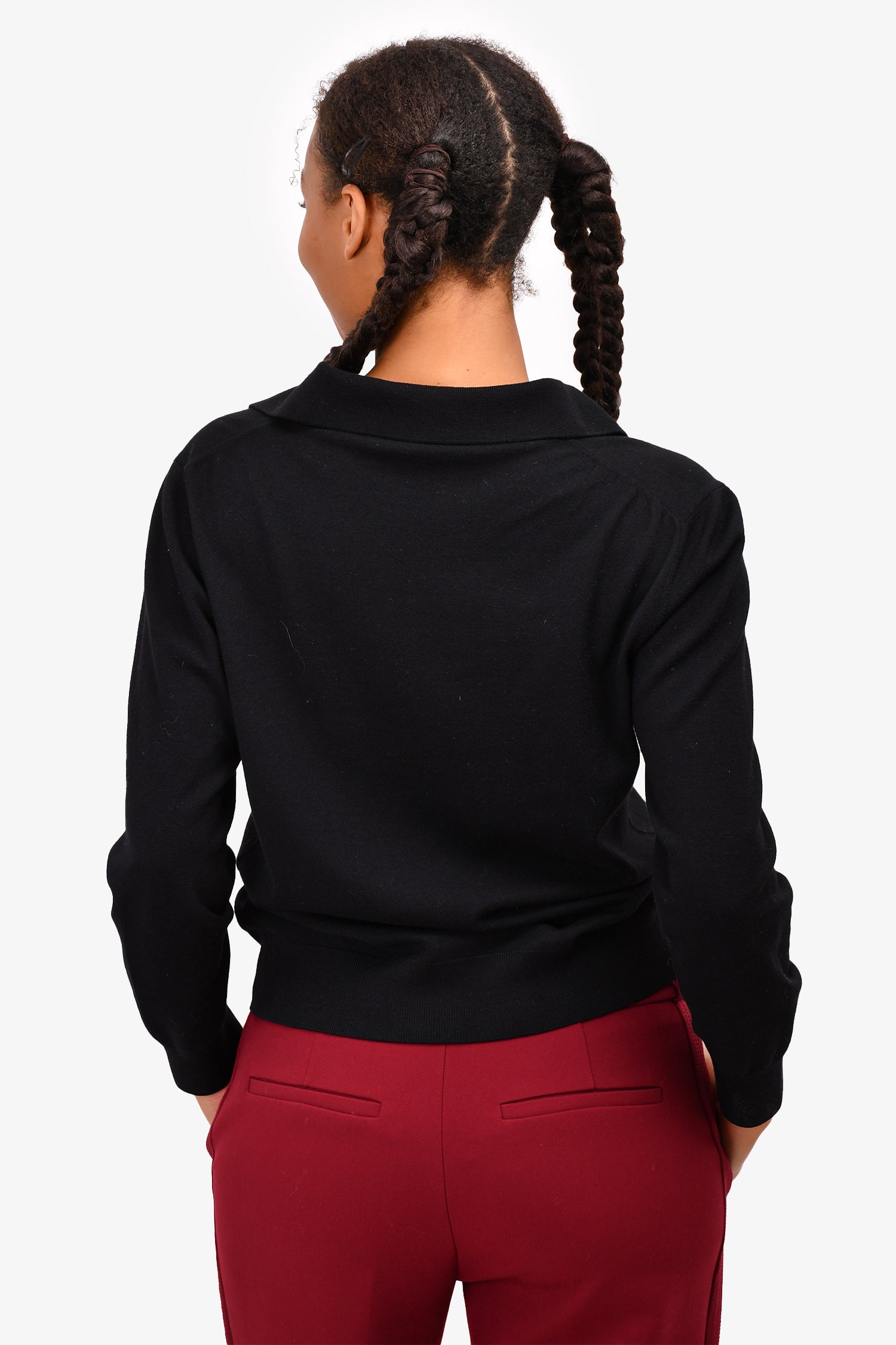 Moncler Black Virgin Wool Polo Tricot Sweater Size XL