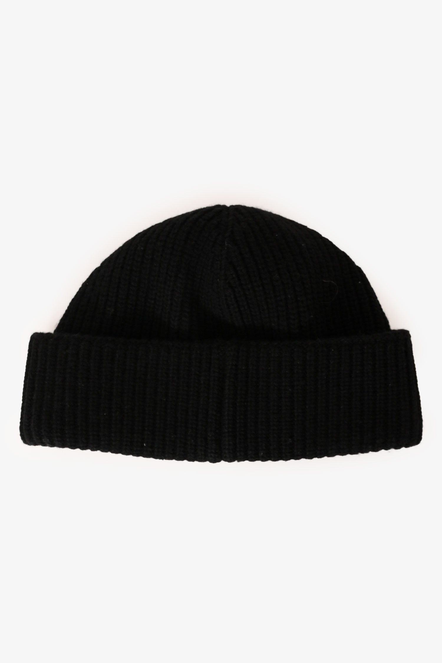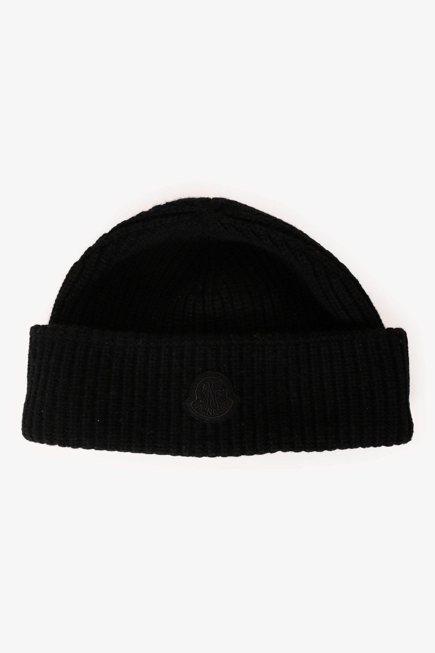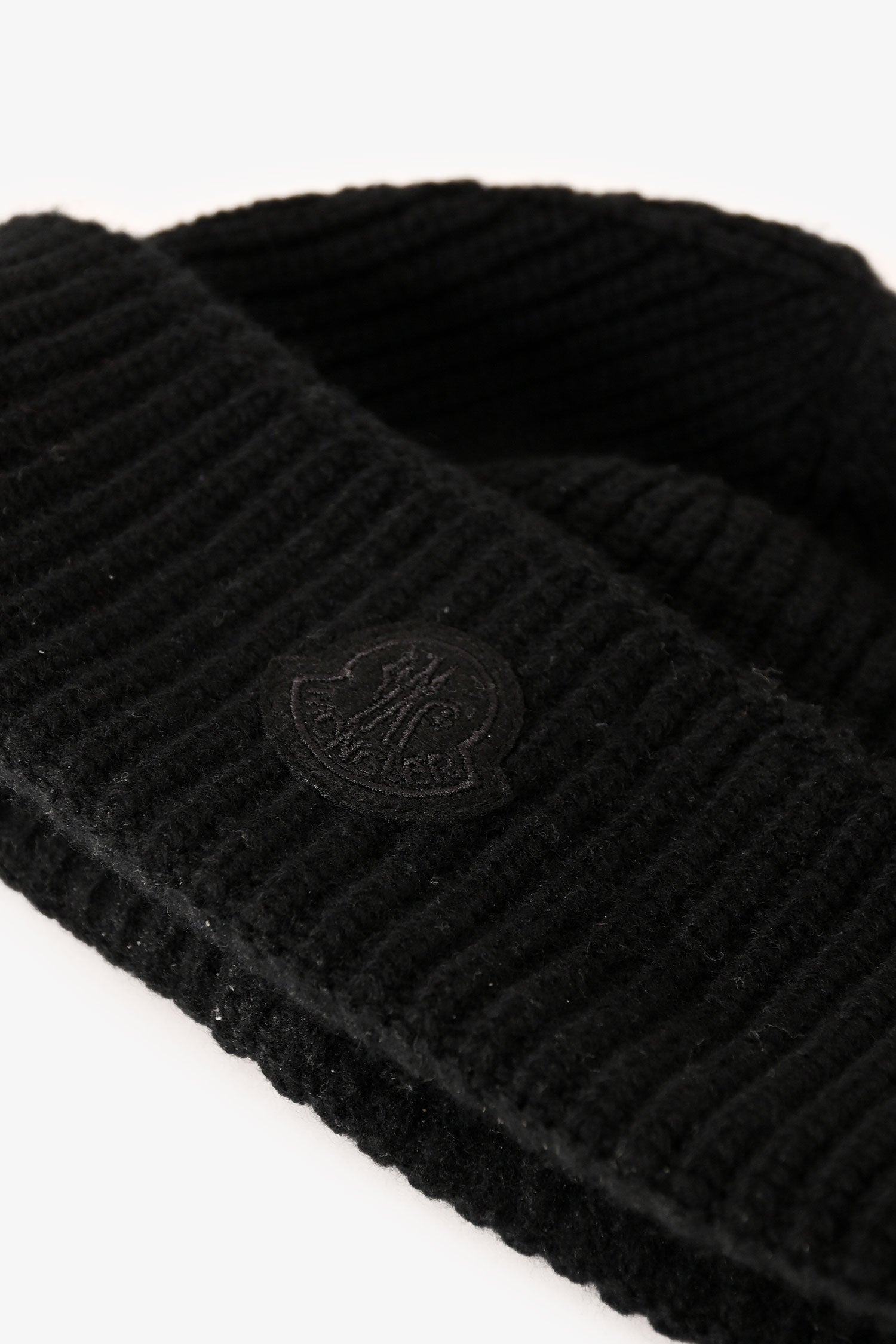 Refresh availabilityMoncler Black Wool Logo Beanie. Tonal stitching.