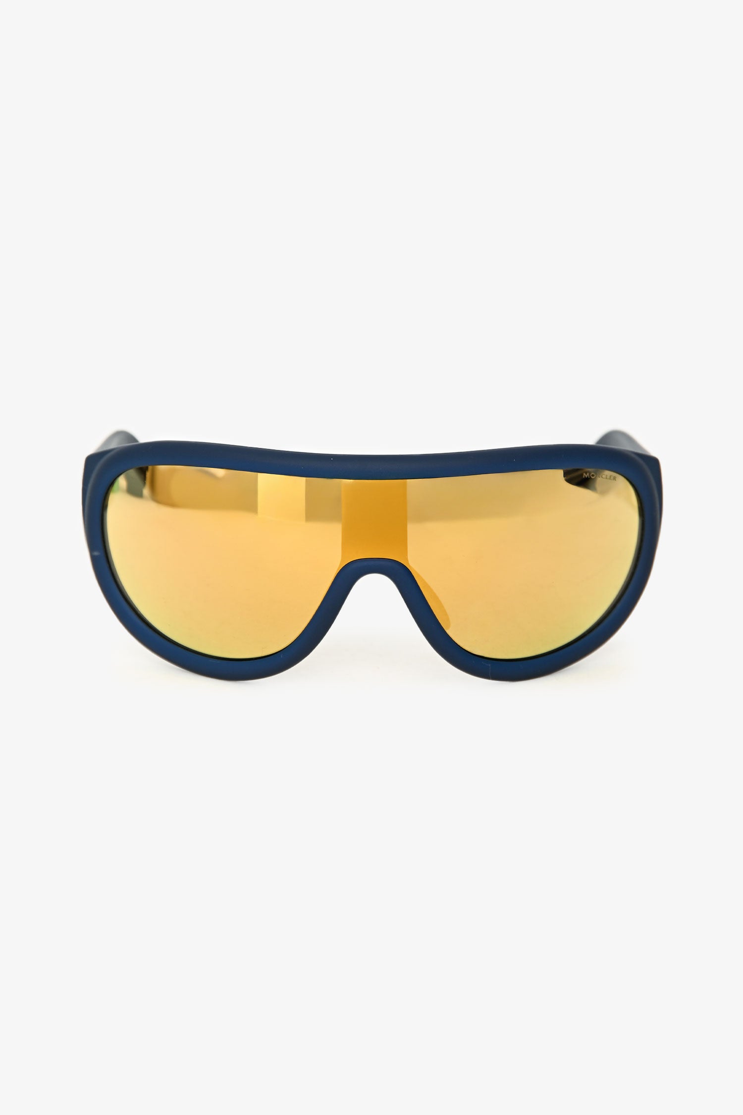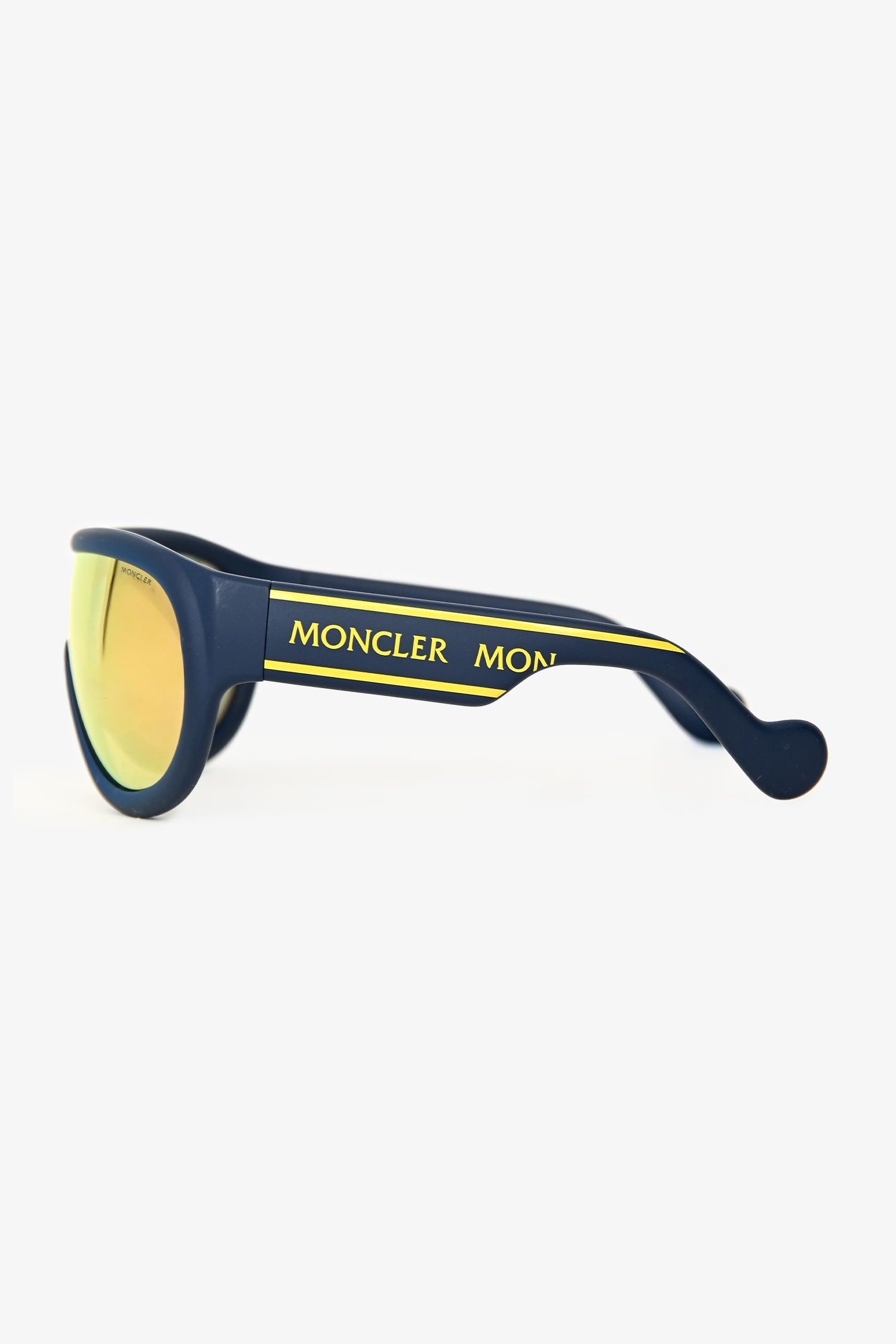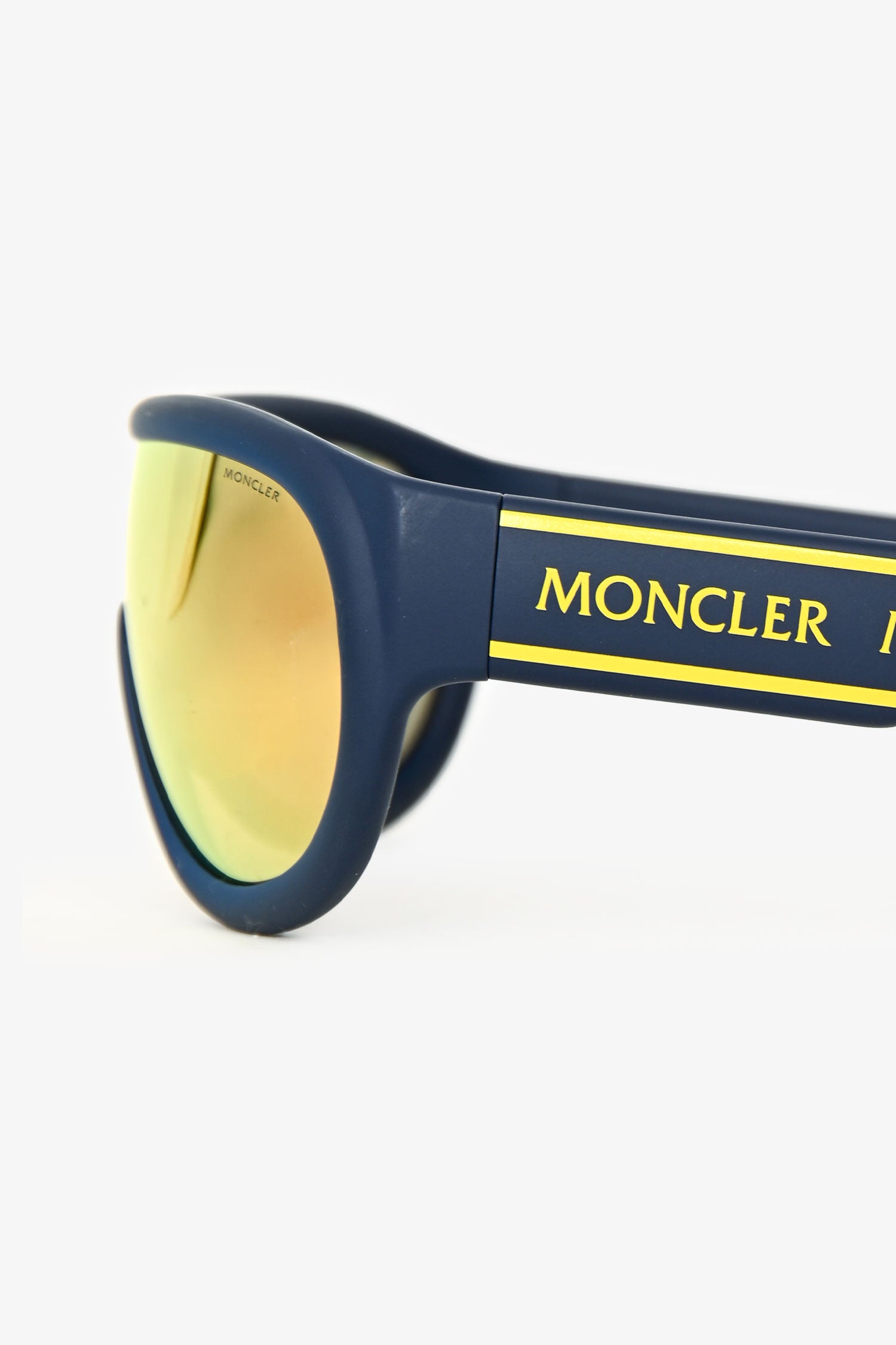 Refresh availabilityMoncler Blue/Yellow Oversized Reflective Sunglasses. Built-in nose pads. Gold-tone hardware.