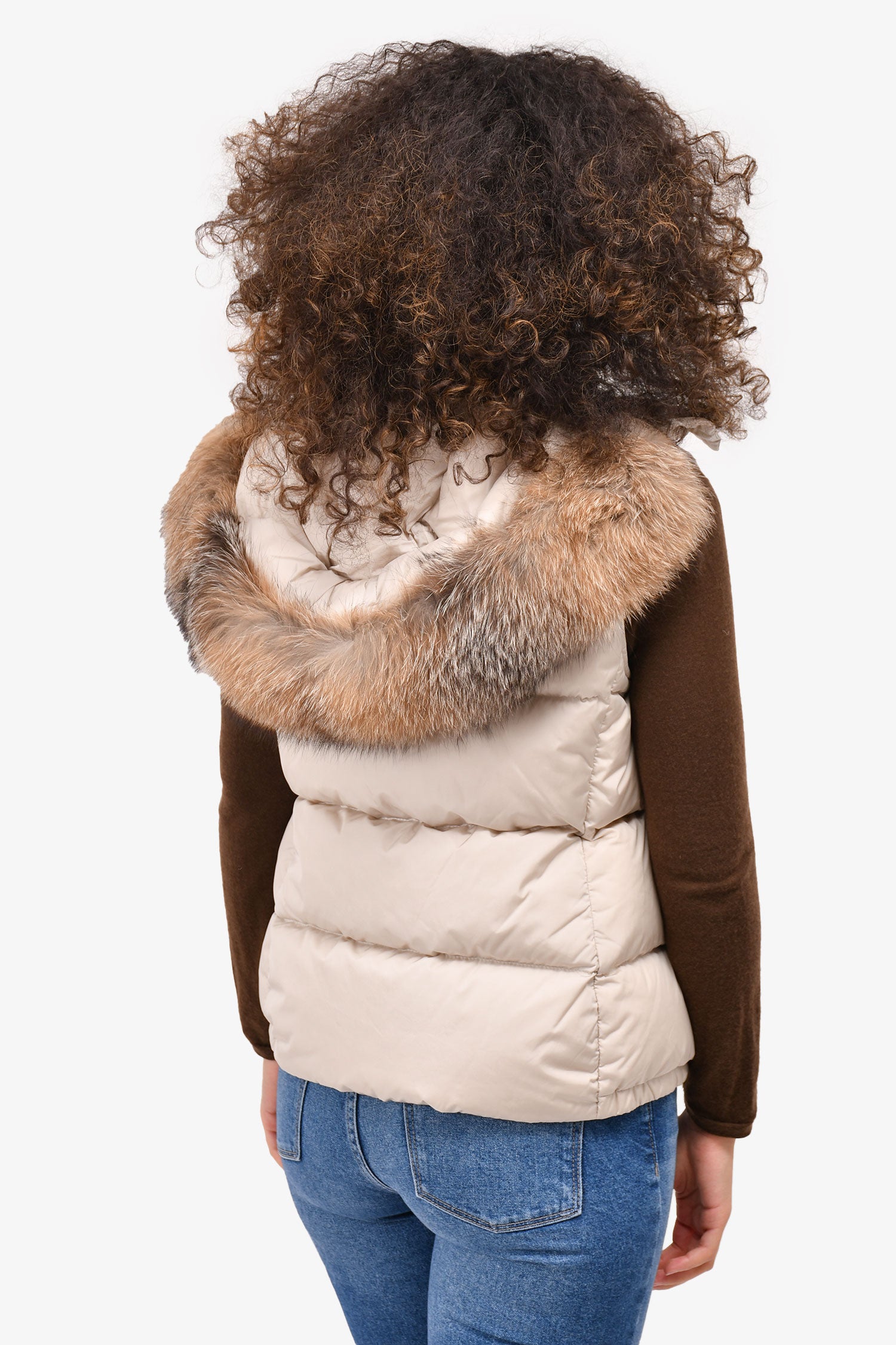 Moncler Cream Down Vest with Fur Hood Size 4