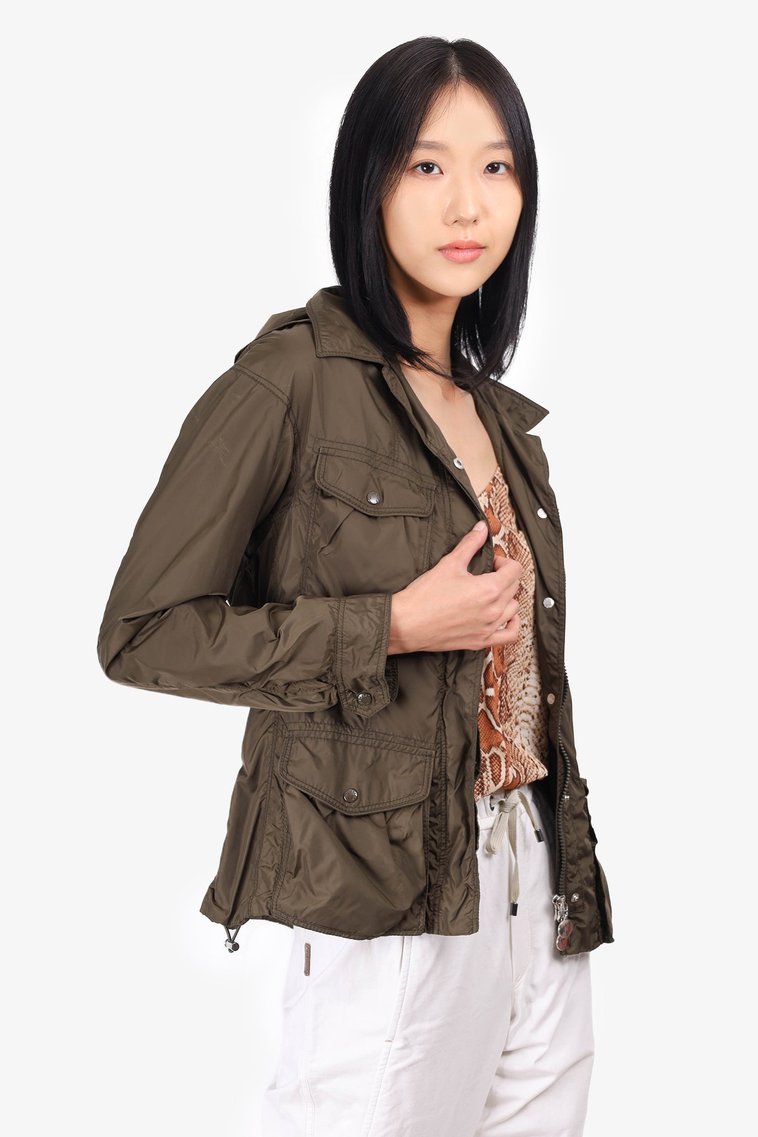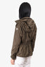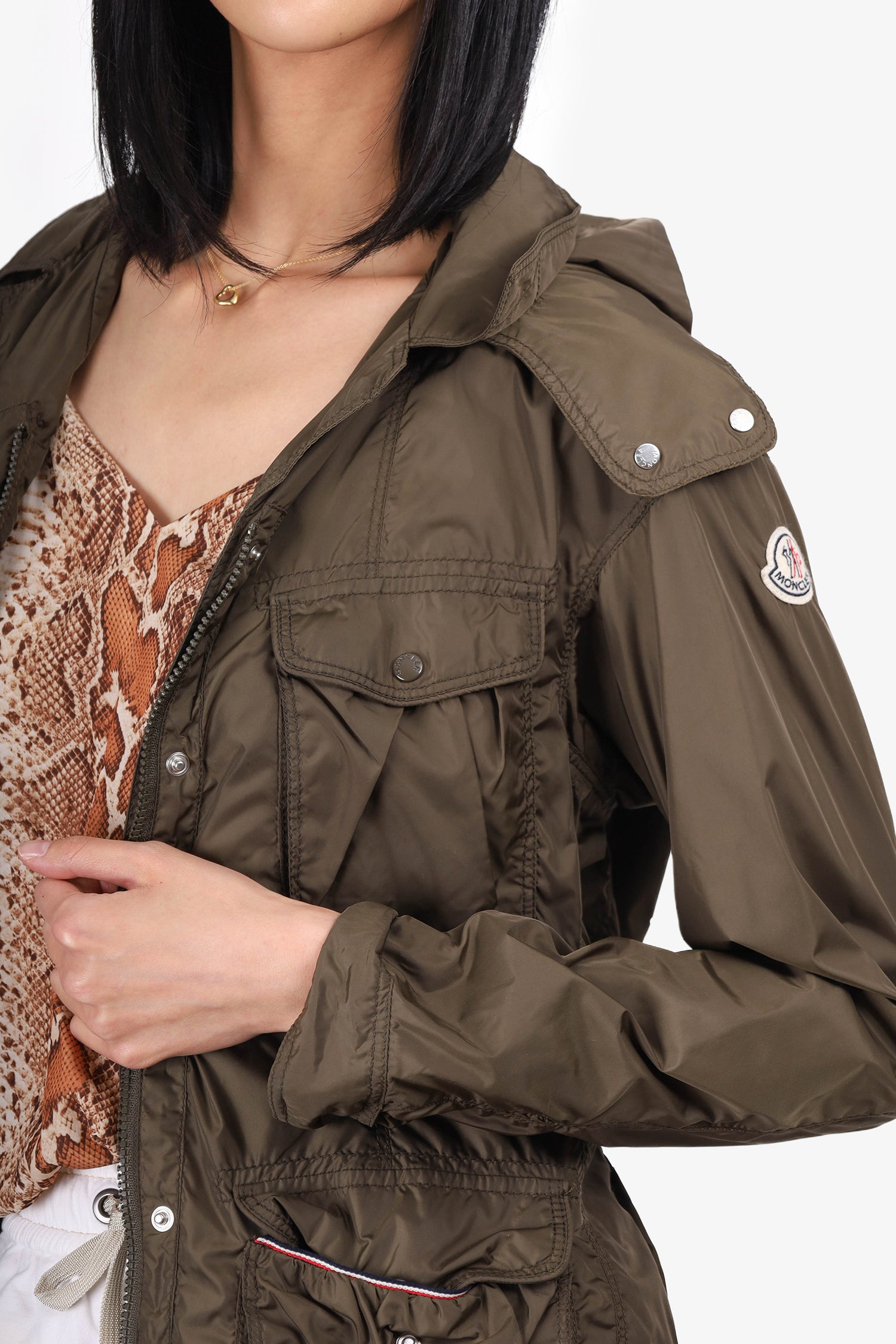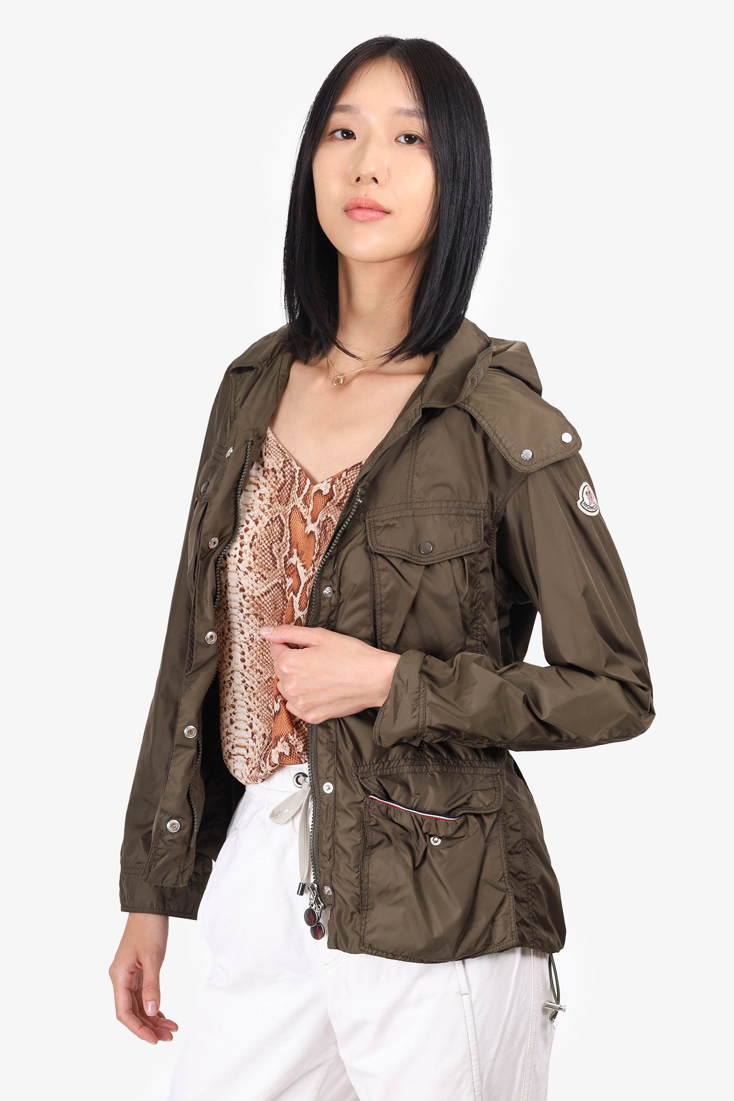 Moncler Green Khaki Nylon Cinched Waist Jacket with Removable Hood Size 0