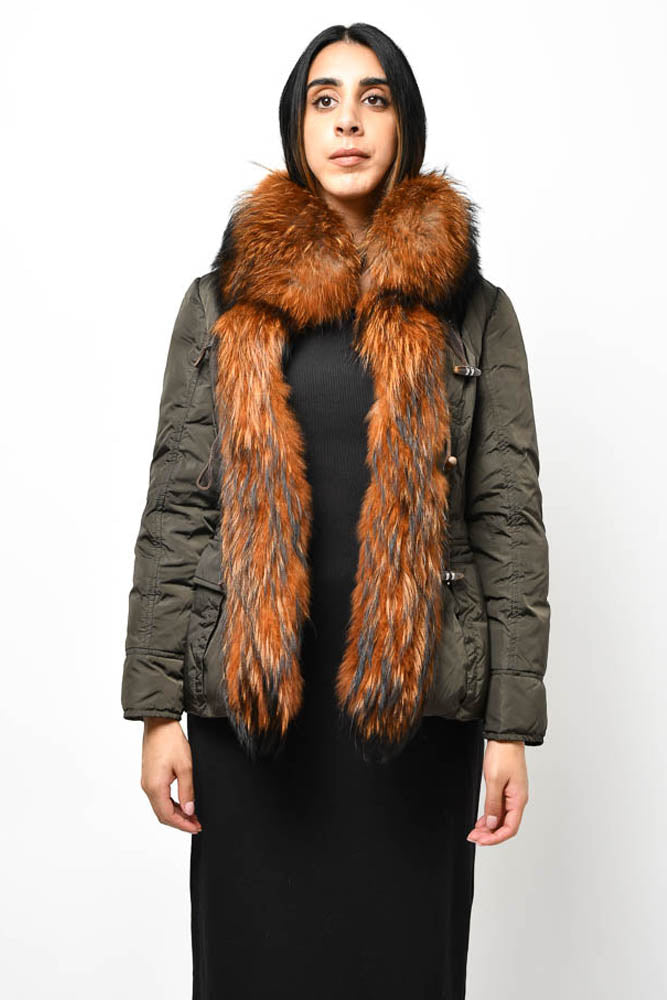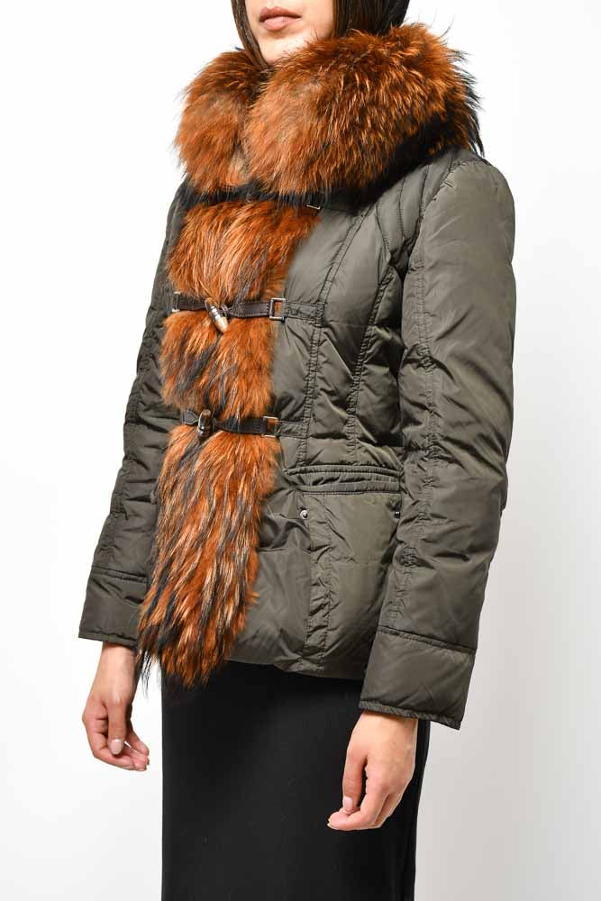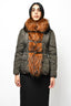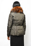 Moncler Green Nylon Fur Lined Toggle Closure Short Parka