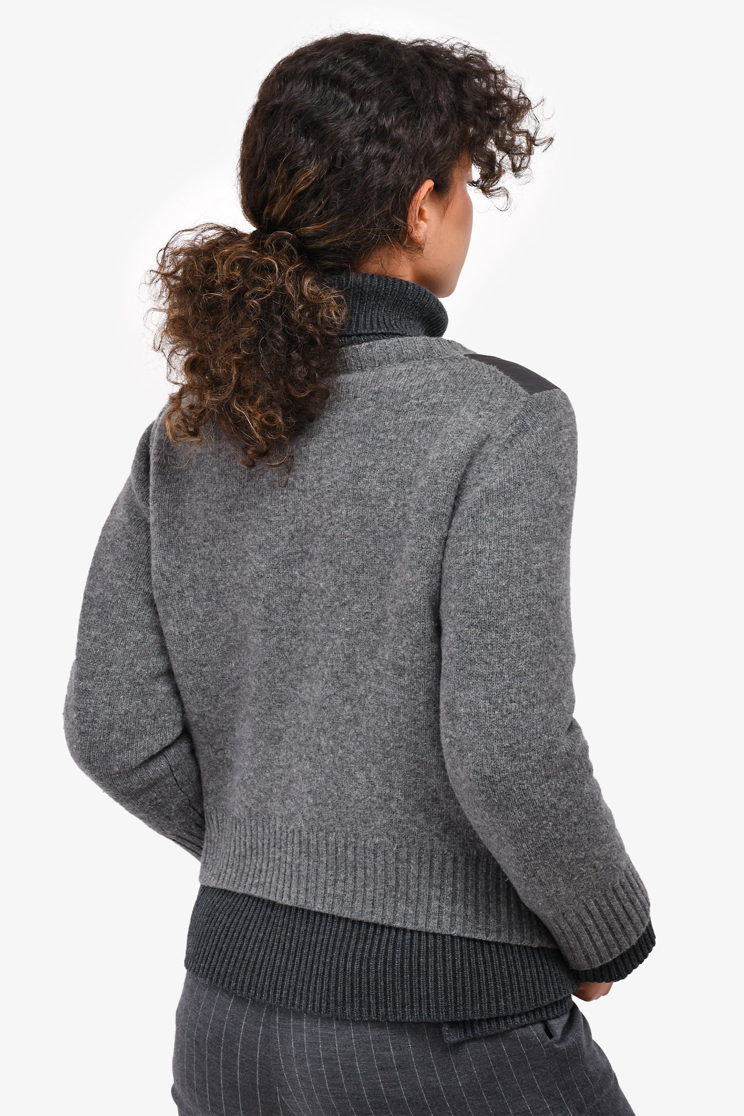 Moncler Grey Padded 'Maglione Tricot' Knit Cardigan Size L