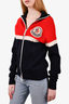 Moncler Navy Blue/Red Wool Maglion Zip-Up Cardigan Size S (As Is)