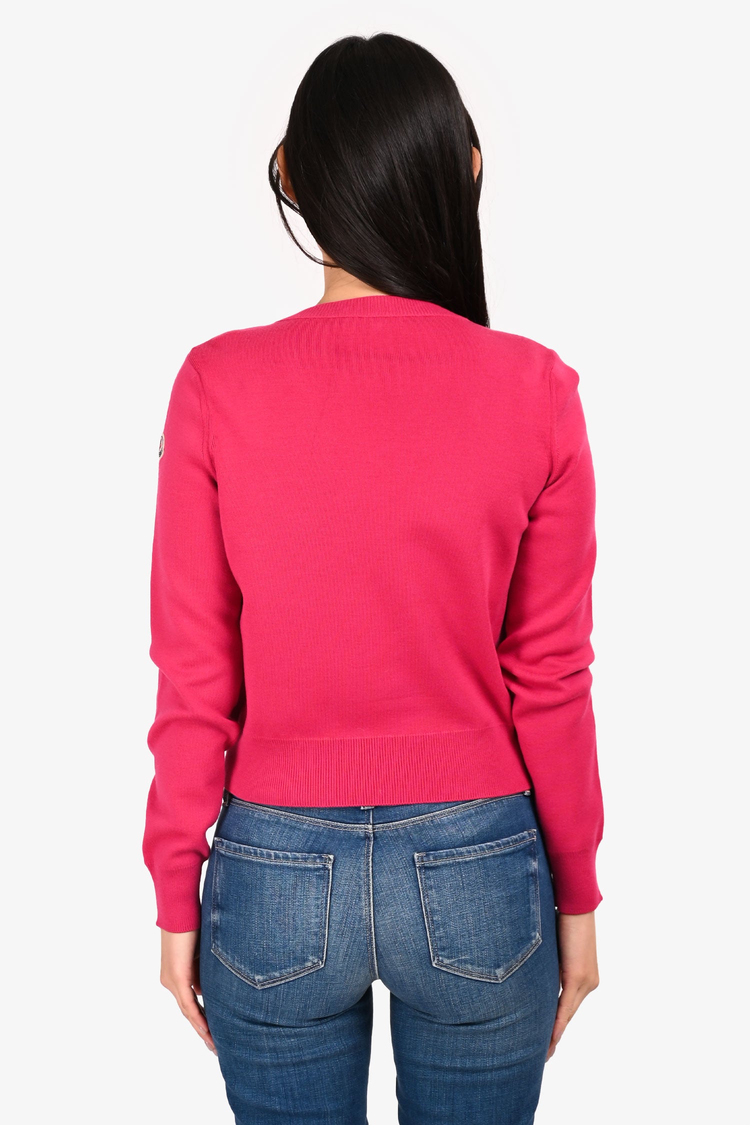 Refresh availabilityMoncler Pink Wool/Down Puffer 'Maglione Tricot Alla Coreana' Jacket. Front two-way zip closure. Front pockets. Brand logo patch on the left sleeve. Ribbed neck, cuffs, and hem.