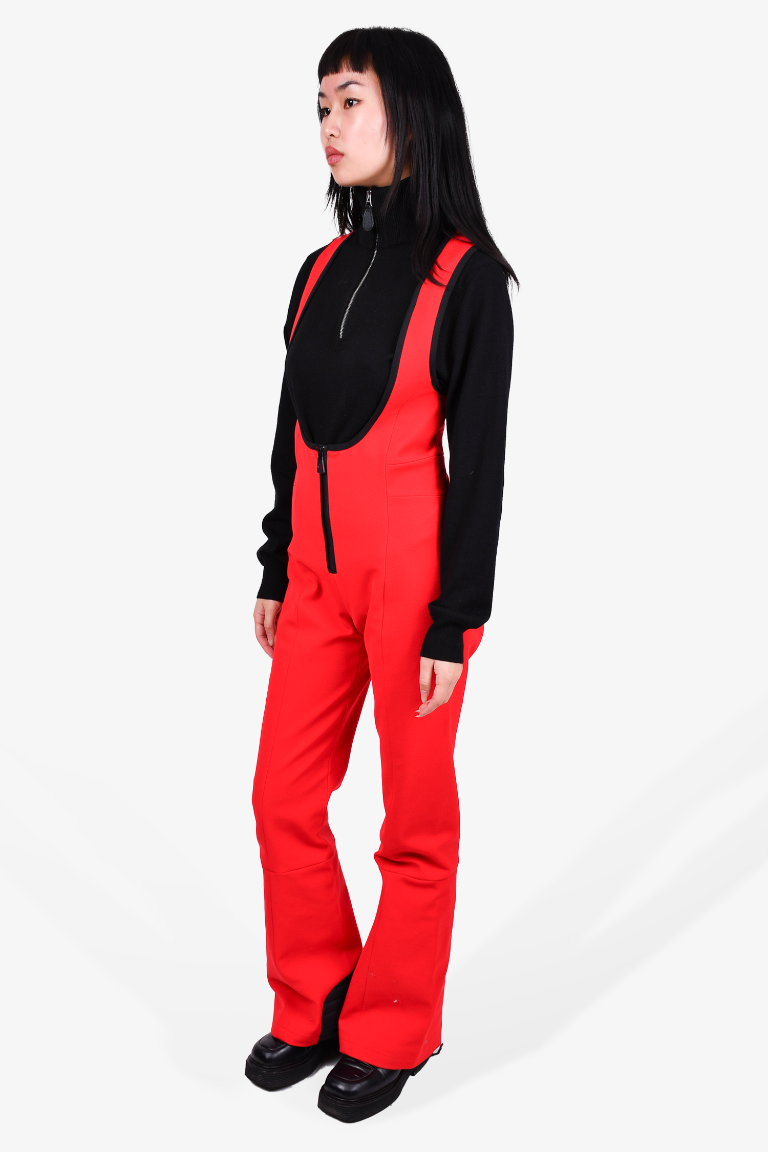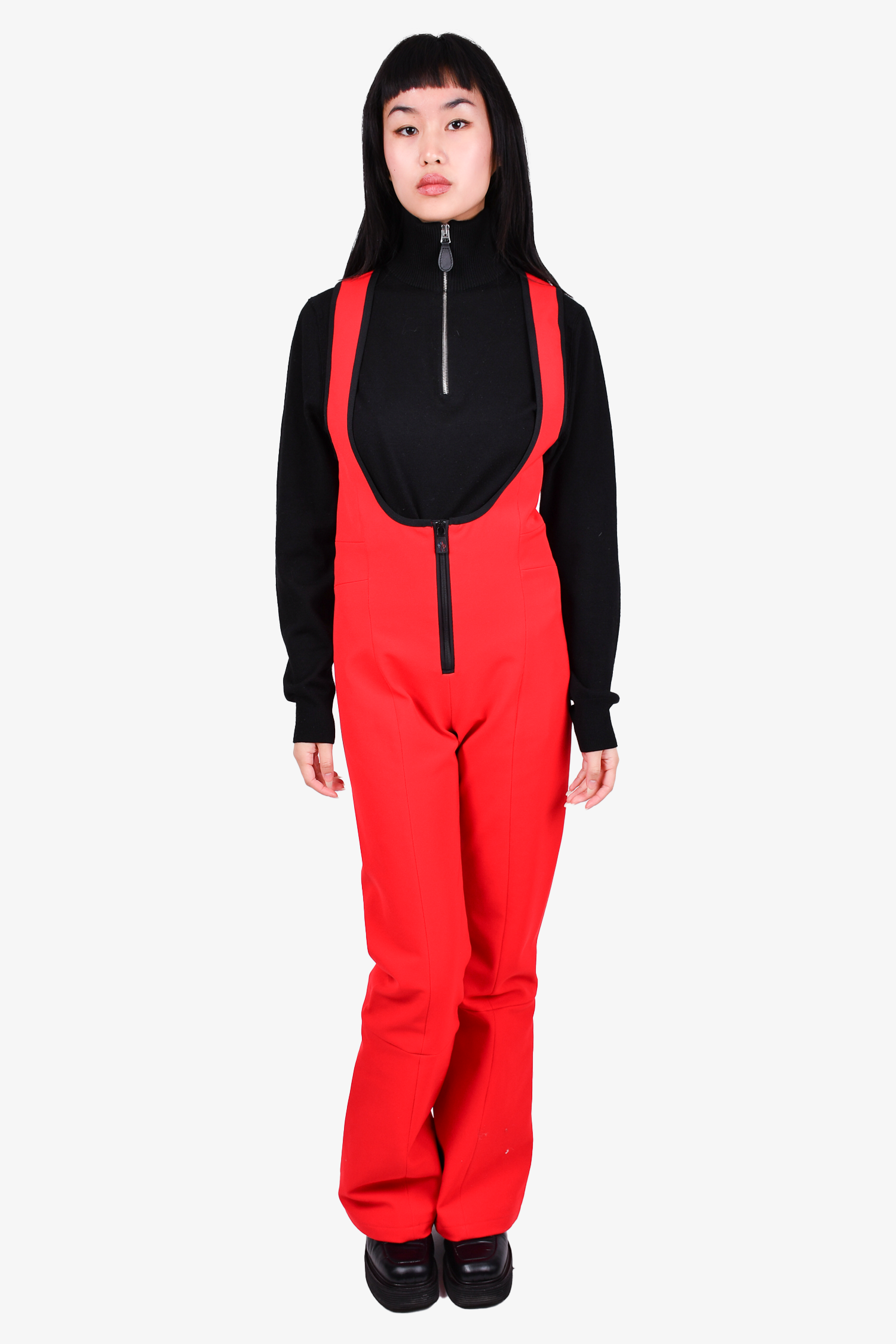 Refresh availabilityMoncler Red One Piece Ski Jumpsuit. Front zipper closure. Elasticated waist. Zipper detail on hem. Tonal stitching.
