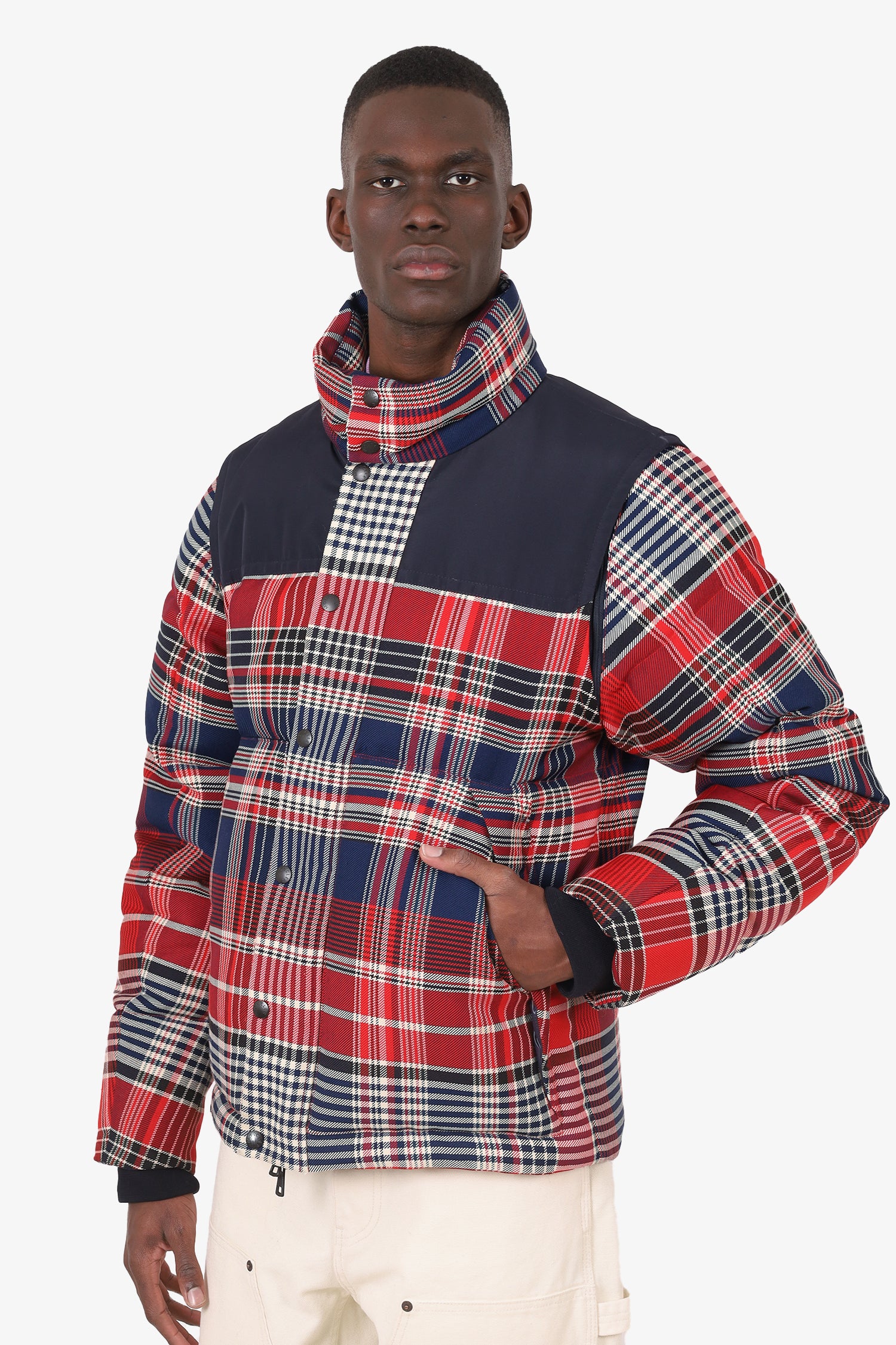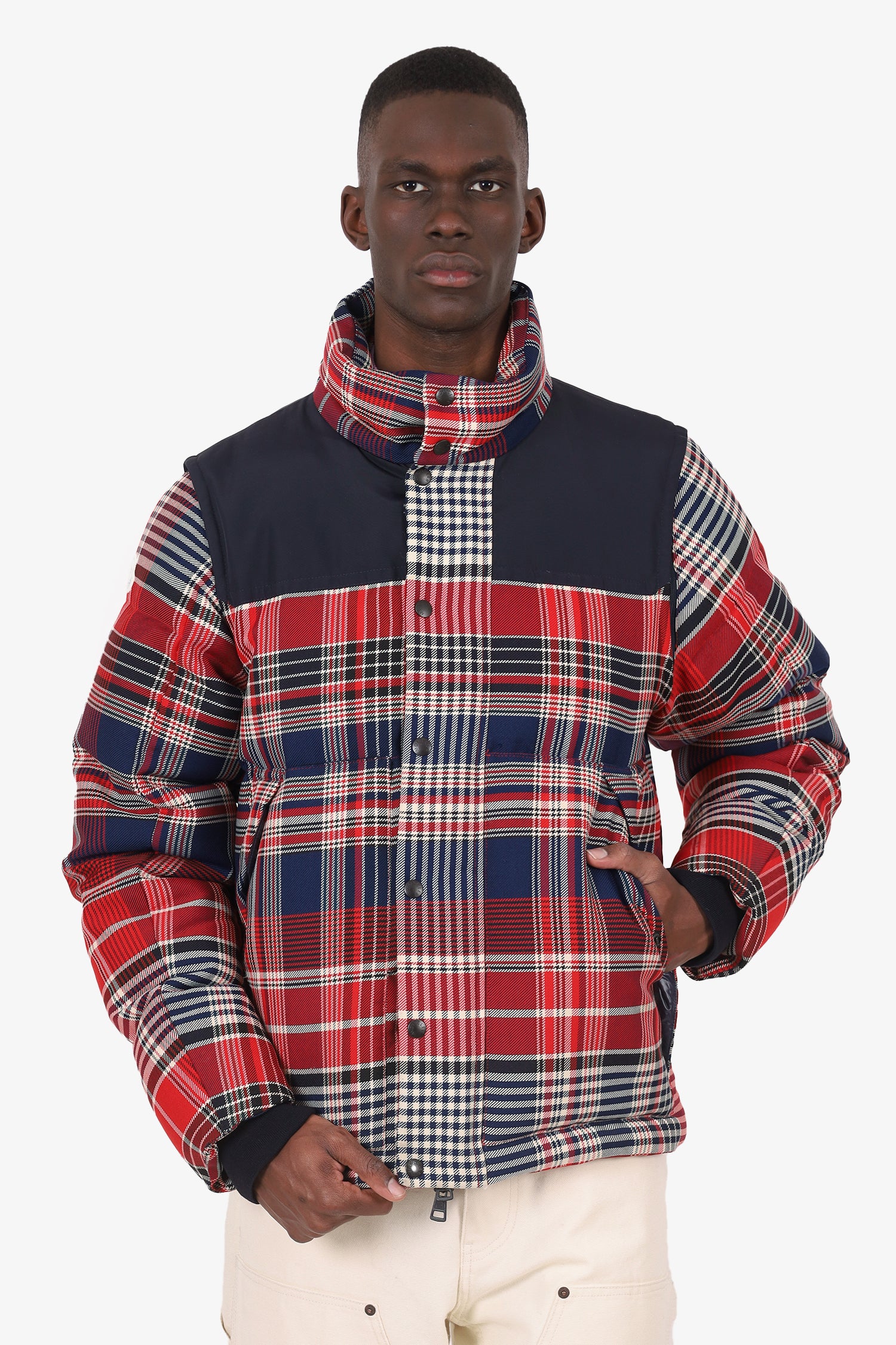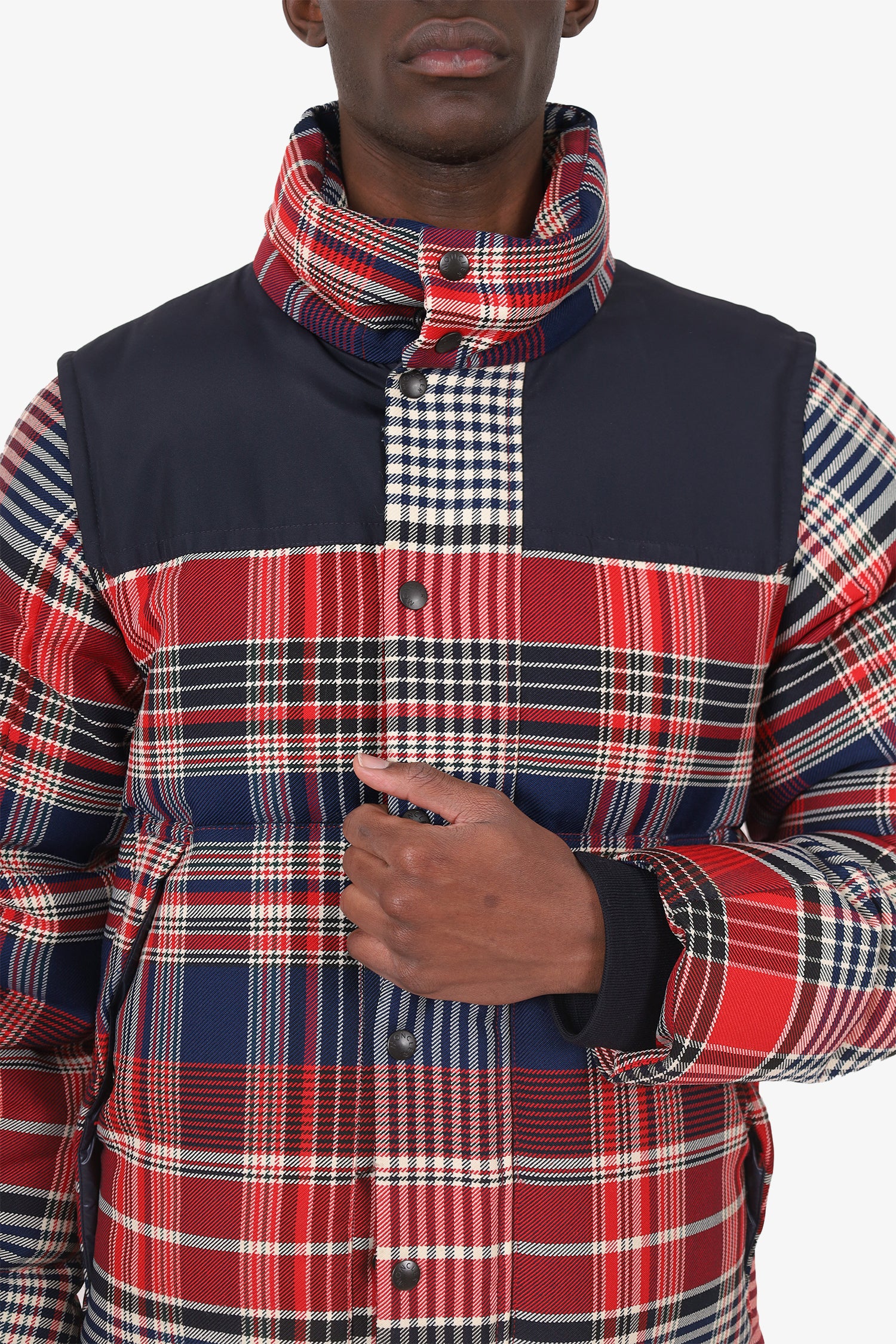 Moncler Red Plaid Detachable Sleeve 'Kerleo' Down Puffer Jacket Size 3 Mens