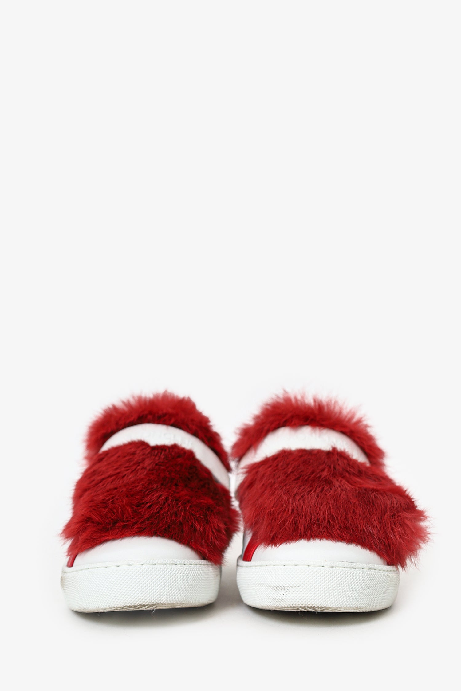 Moncler White Leather/Red Fur Victorie Sneakers Size 37
