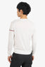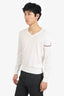 Moncler White V-Neck Long Sleeve Arm Logo Sweater Size M