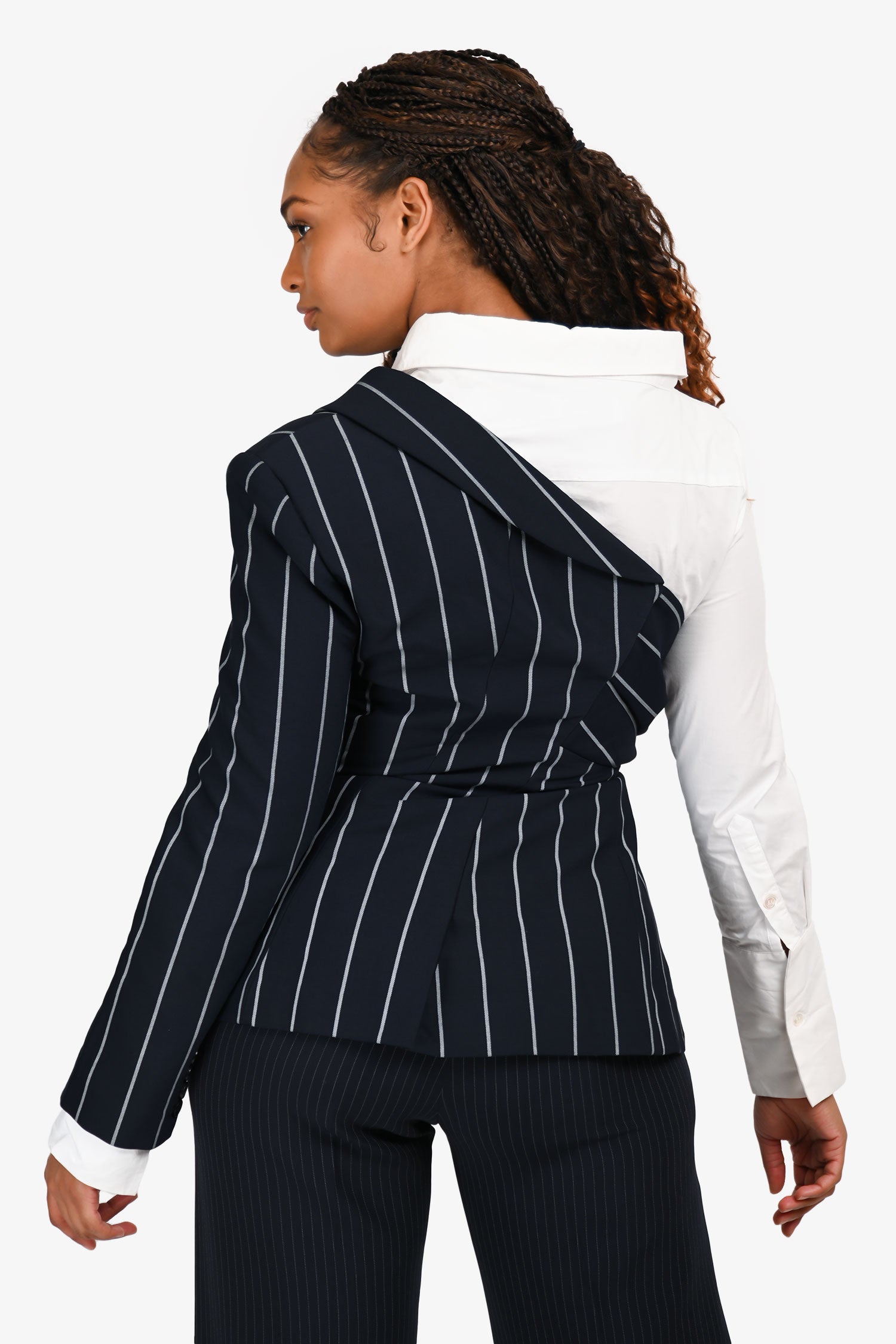 Monse 2020 Runway Blue/White Pinstripe Asymmetrical Shirt/Blazer Size M