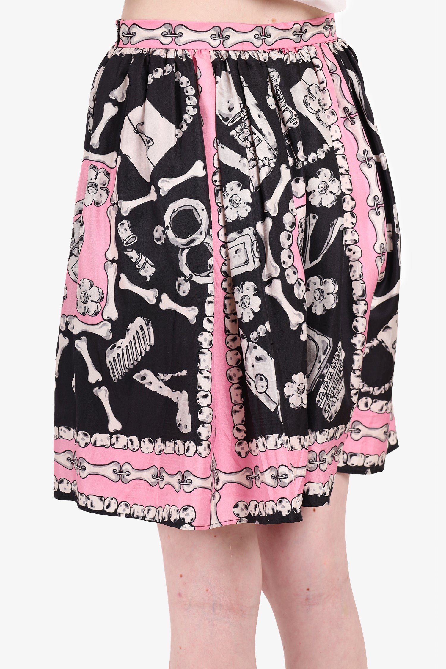 Moschino Black/Pink/White Silk Bones Historic Chic Skirt Size 4