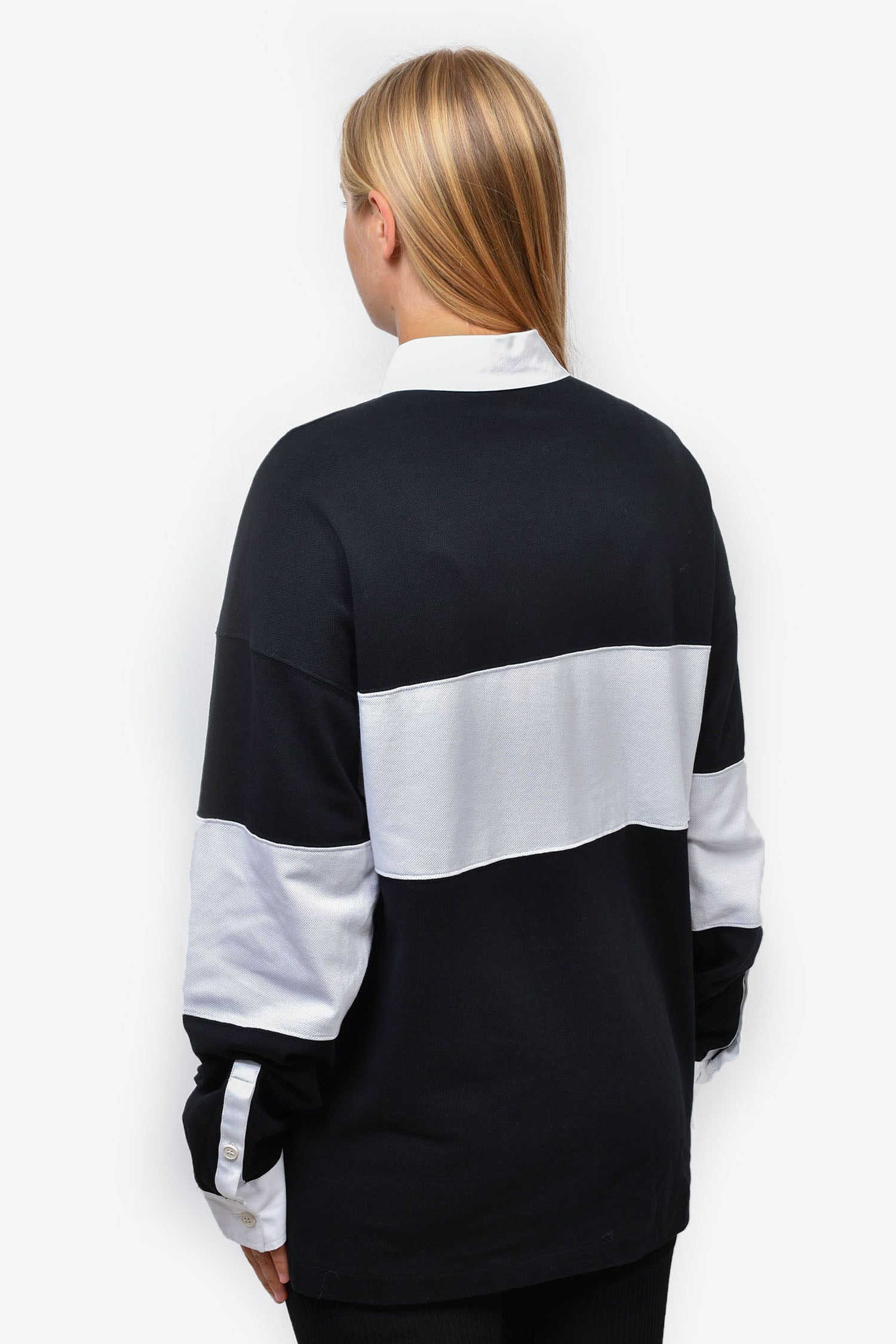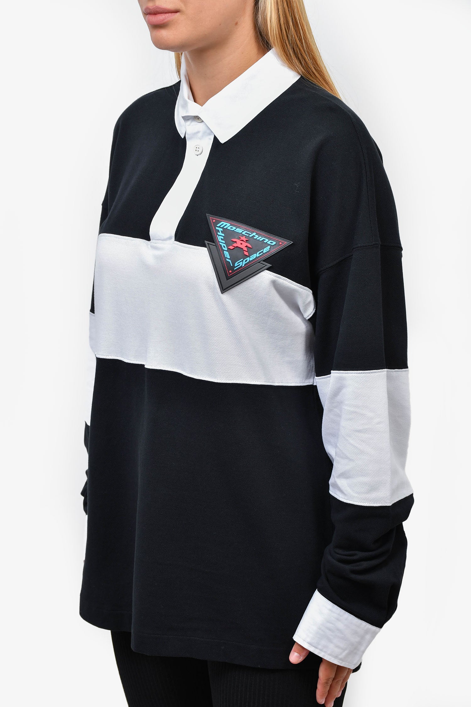 Refresh availabilityMoschino Black/White Collared 'Space' Shirt. Front button-up closure. Pull-on. Tonal stitching.