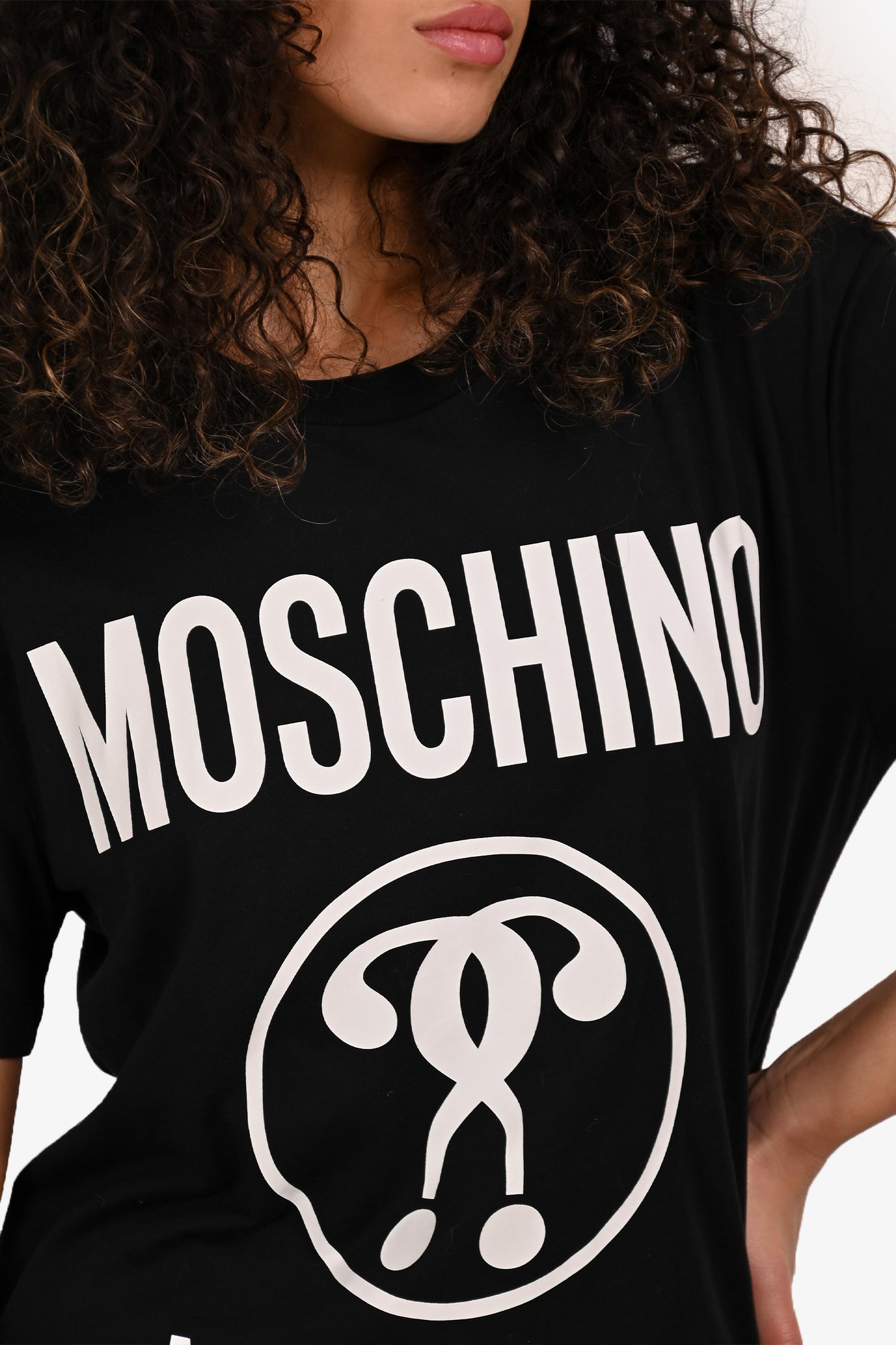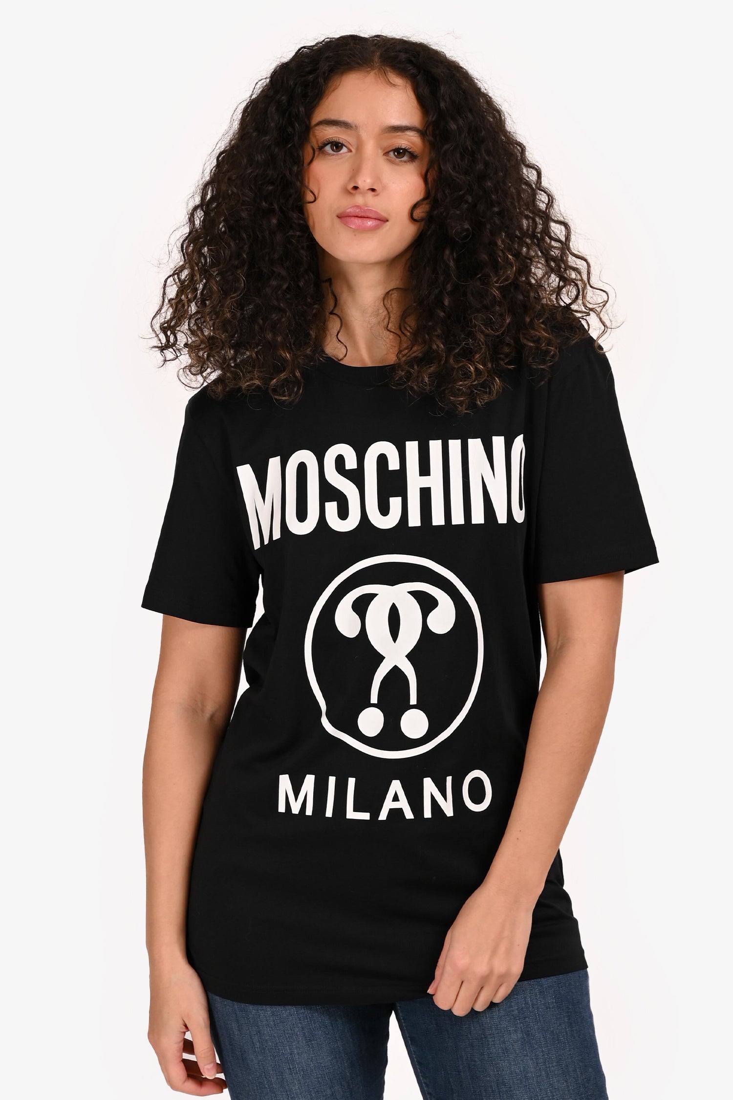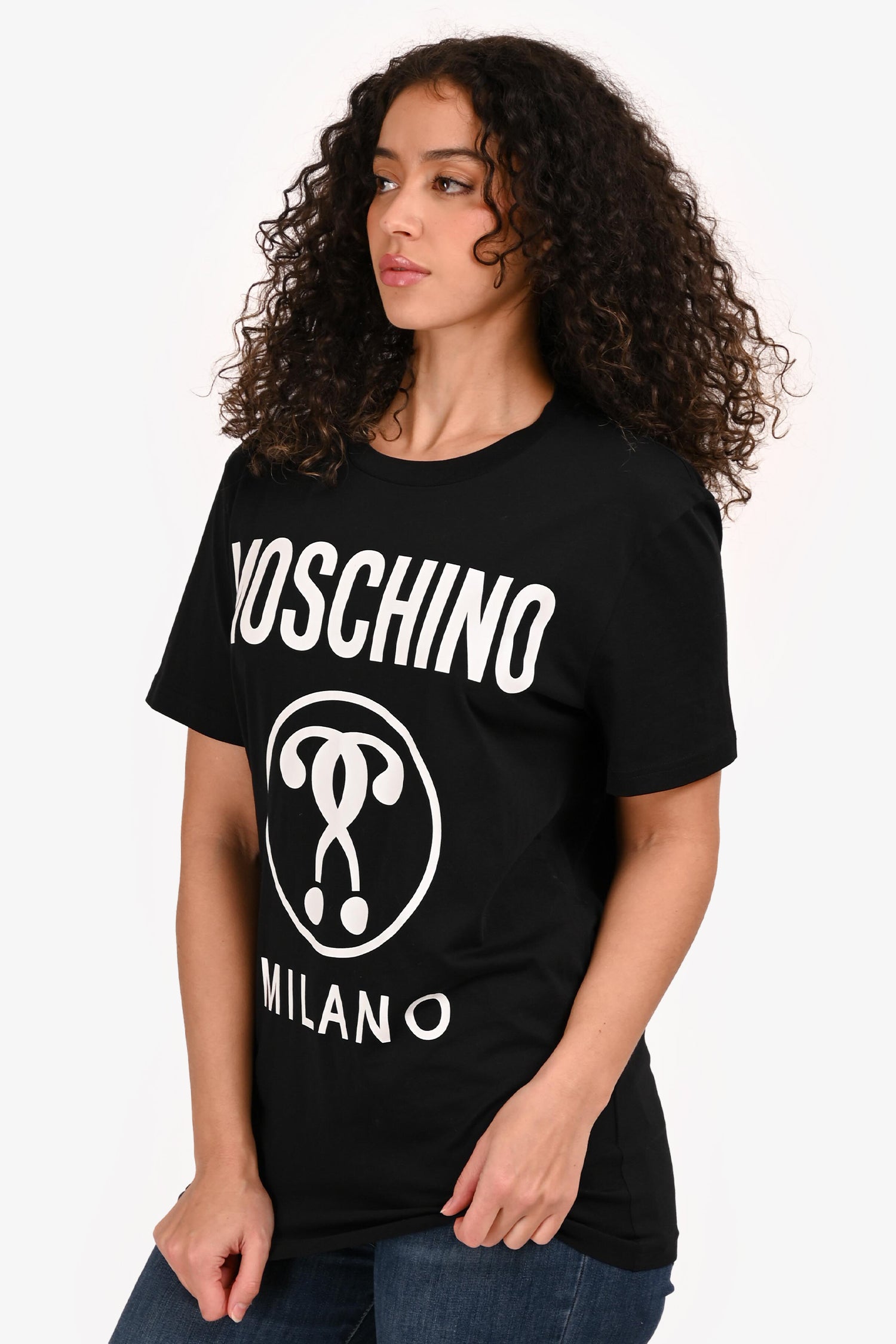 Refresh availabilityMoschino Black/White Logo T-Shirt. Pull-on. Round neckline. Tonal stitching.