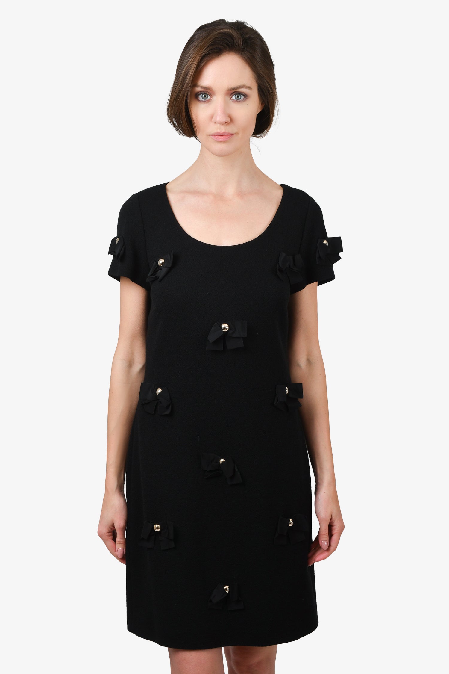 Refresh availabilityMoschino Boutique Black Bow Embellished Dress. Round neck. Rear zip closure. Lined. Tonal stitching.