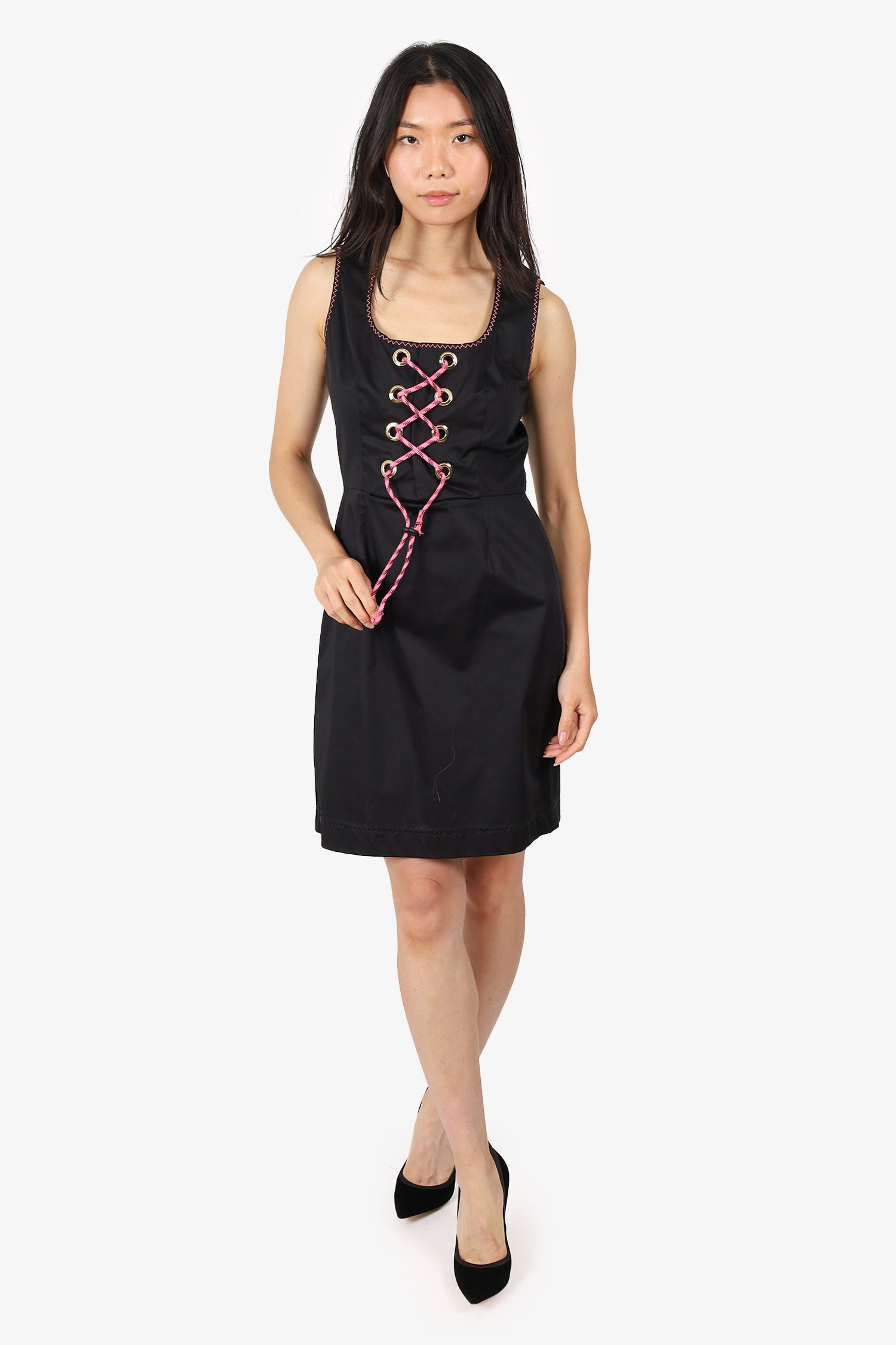 Moschino Cheap & Chic Black/Pink Cotton Lace-Up Dress Size 8