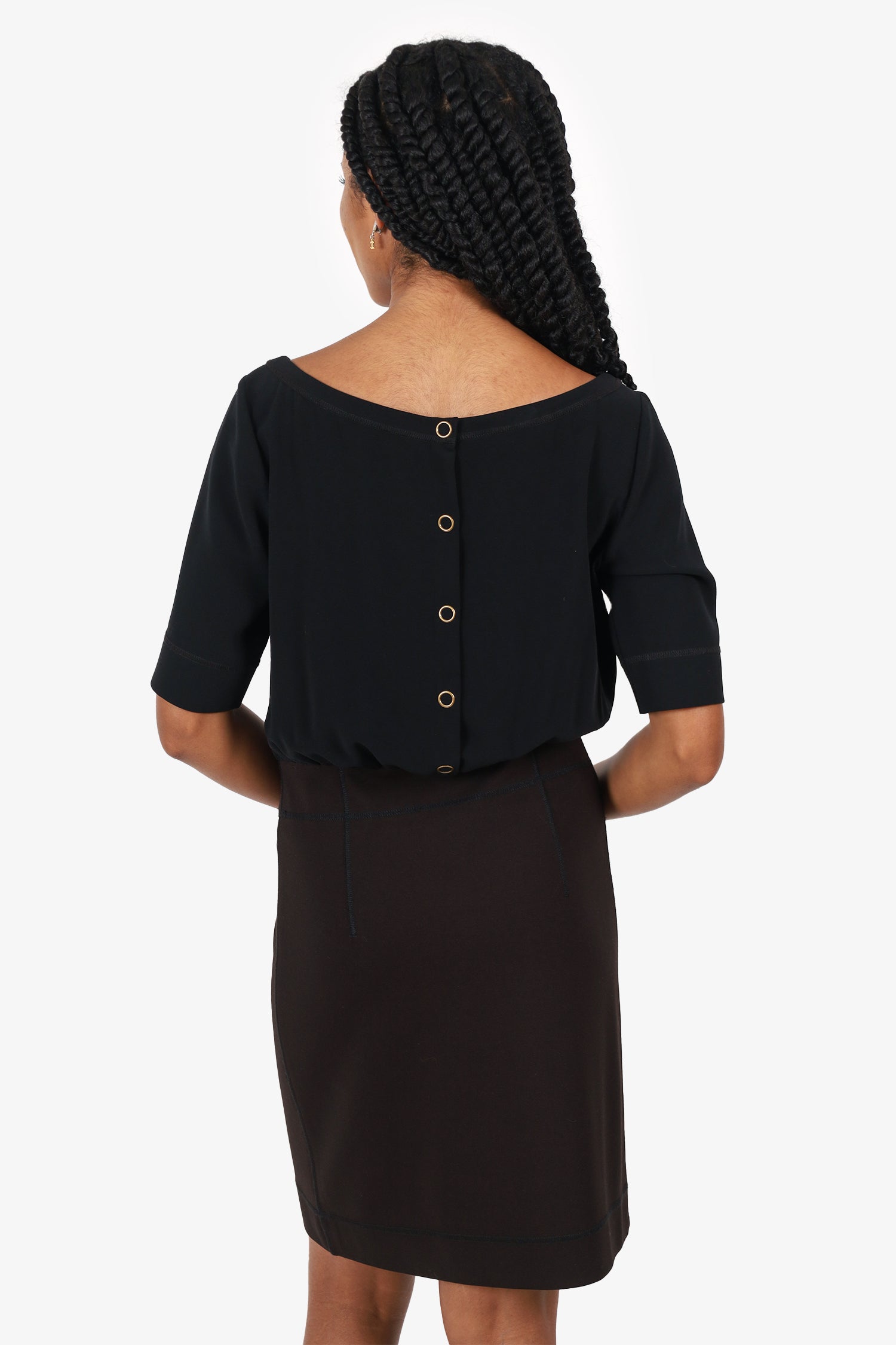 Refresh availabilityMoschino Cheap & Chic Black Snap Button T-Shirt Dress. Slip-on. Boat-neckline. Rear snap-button closure. Bronze-tone hardware. Tonal stitching.