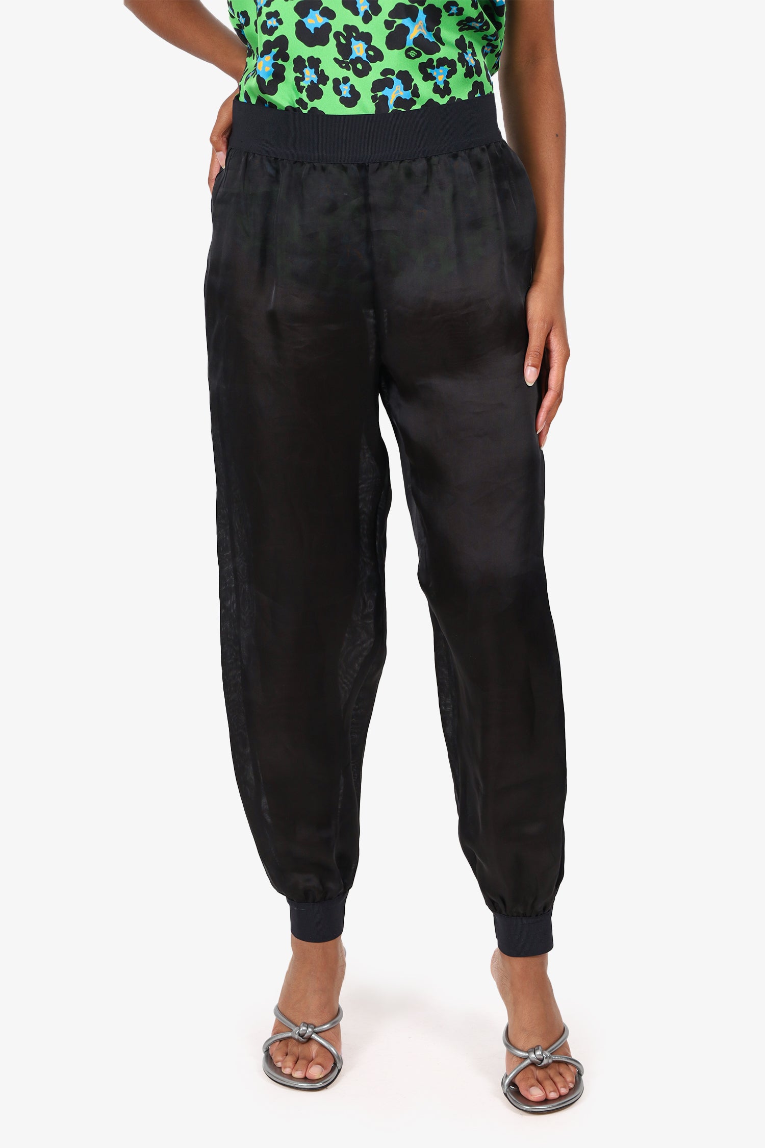 Refresh availabilityMoschino Couture Black Silk Sheer Cuffed Pants. Slip-on. Elasticated waistband and pants cuffs. Tonal stitching.
