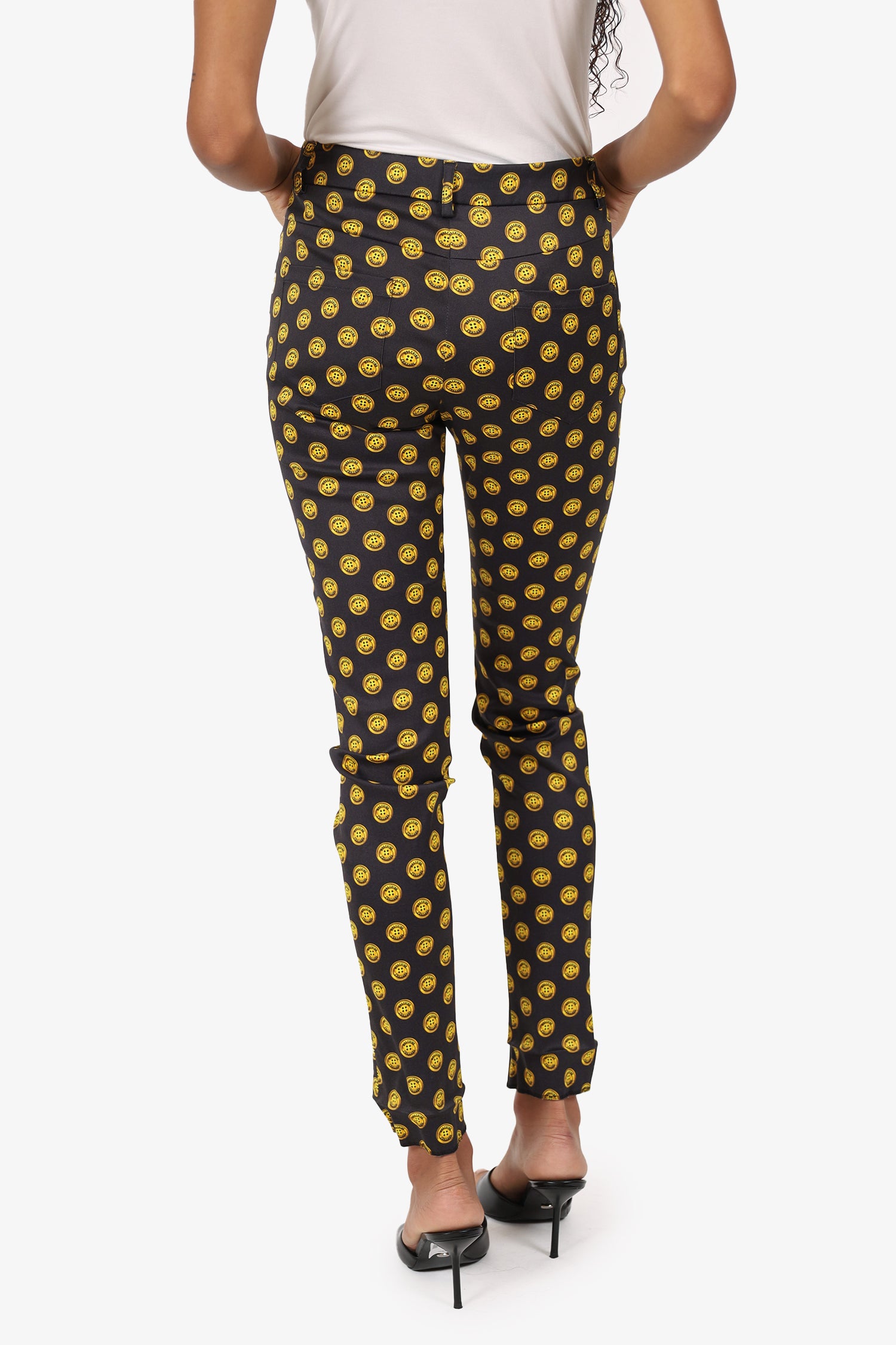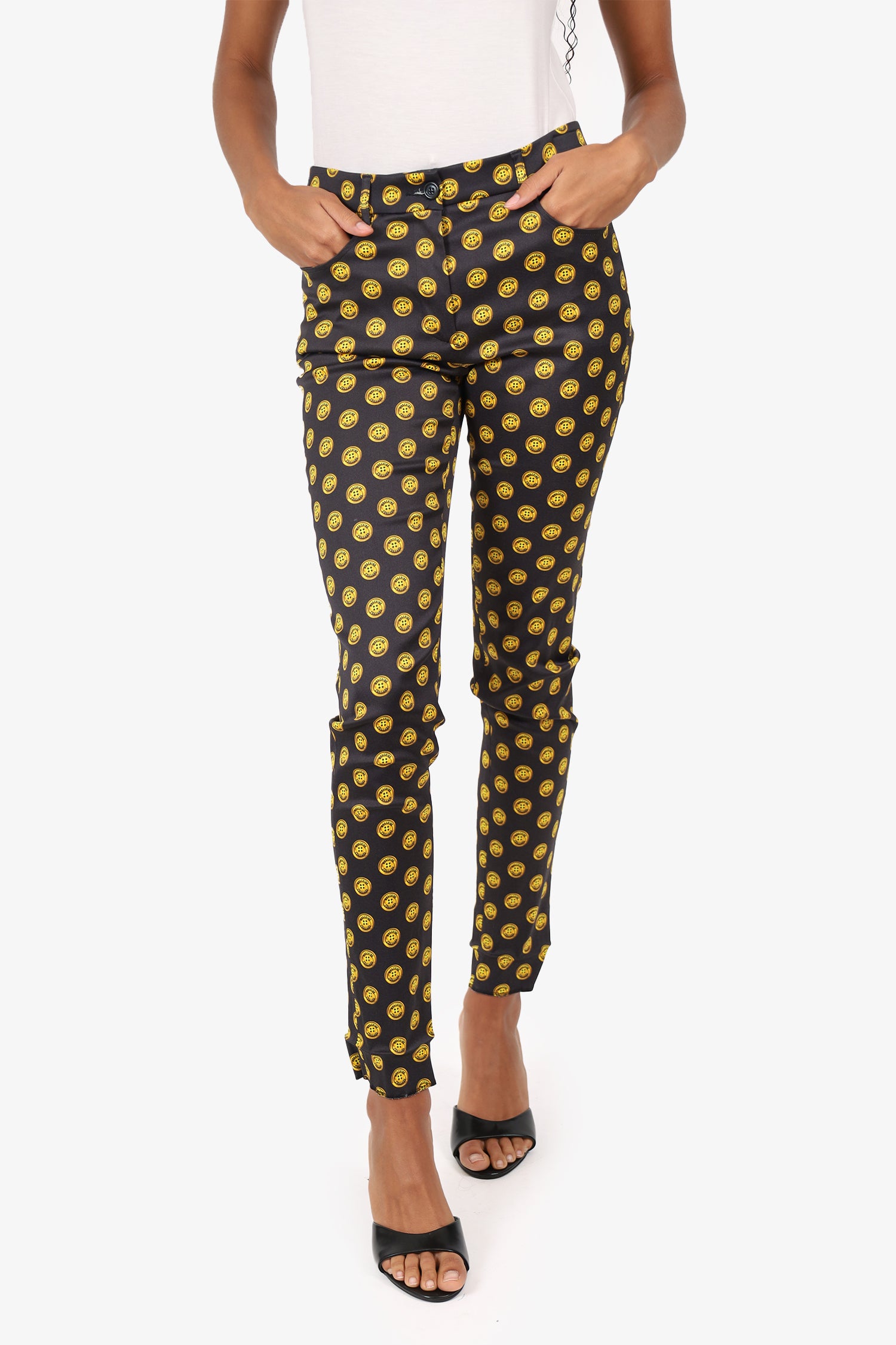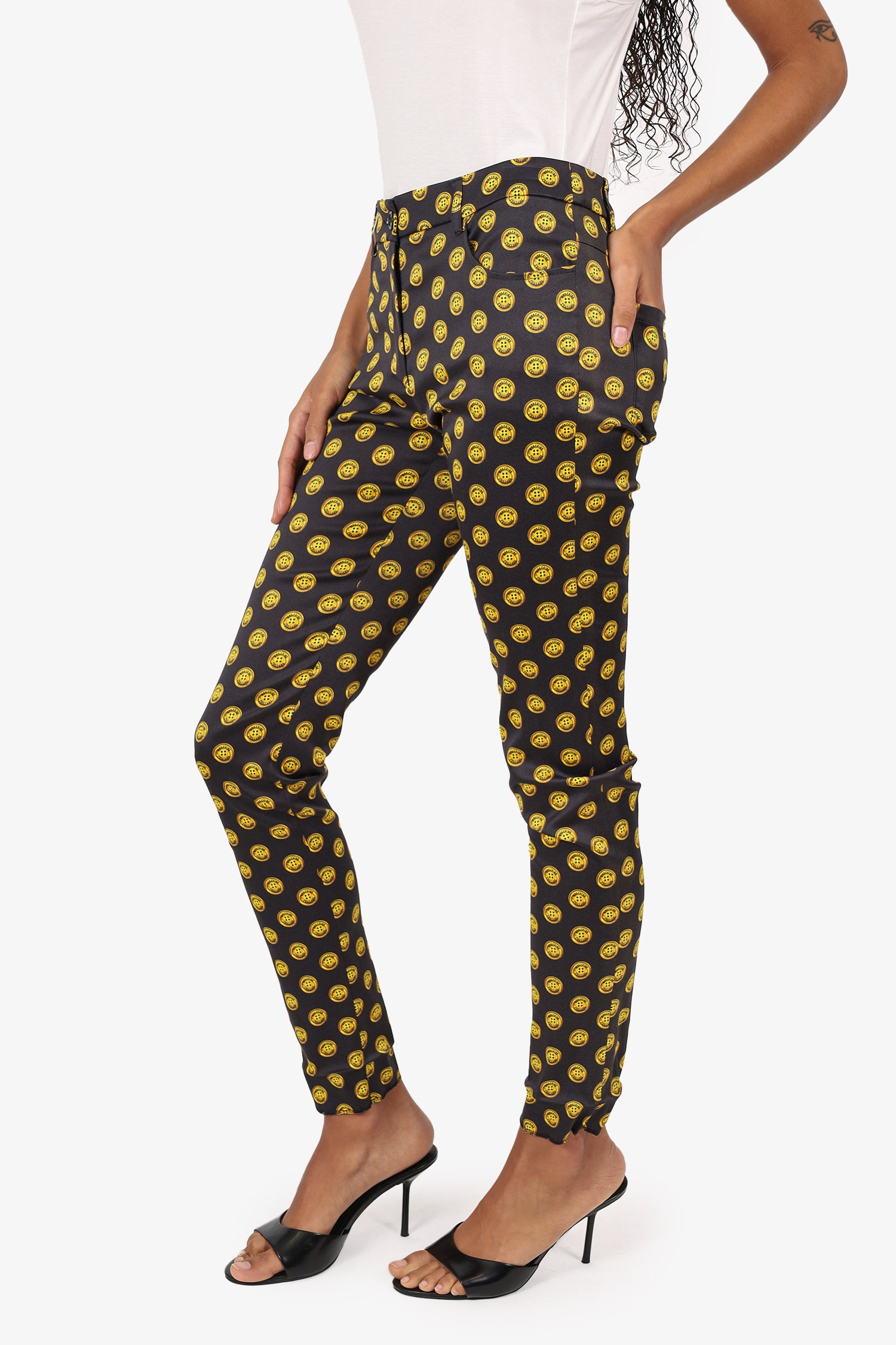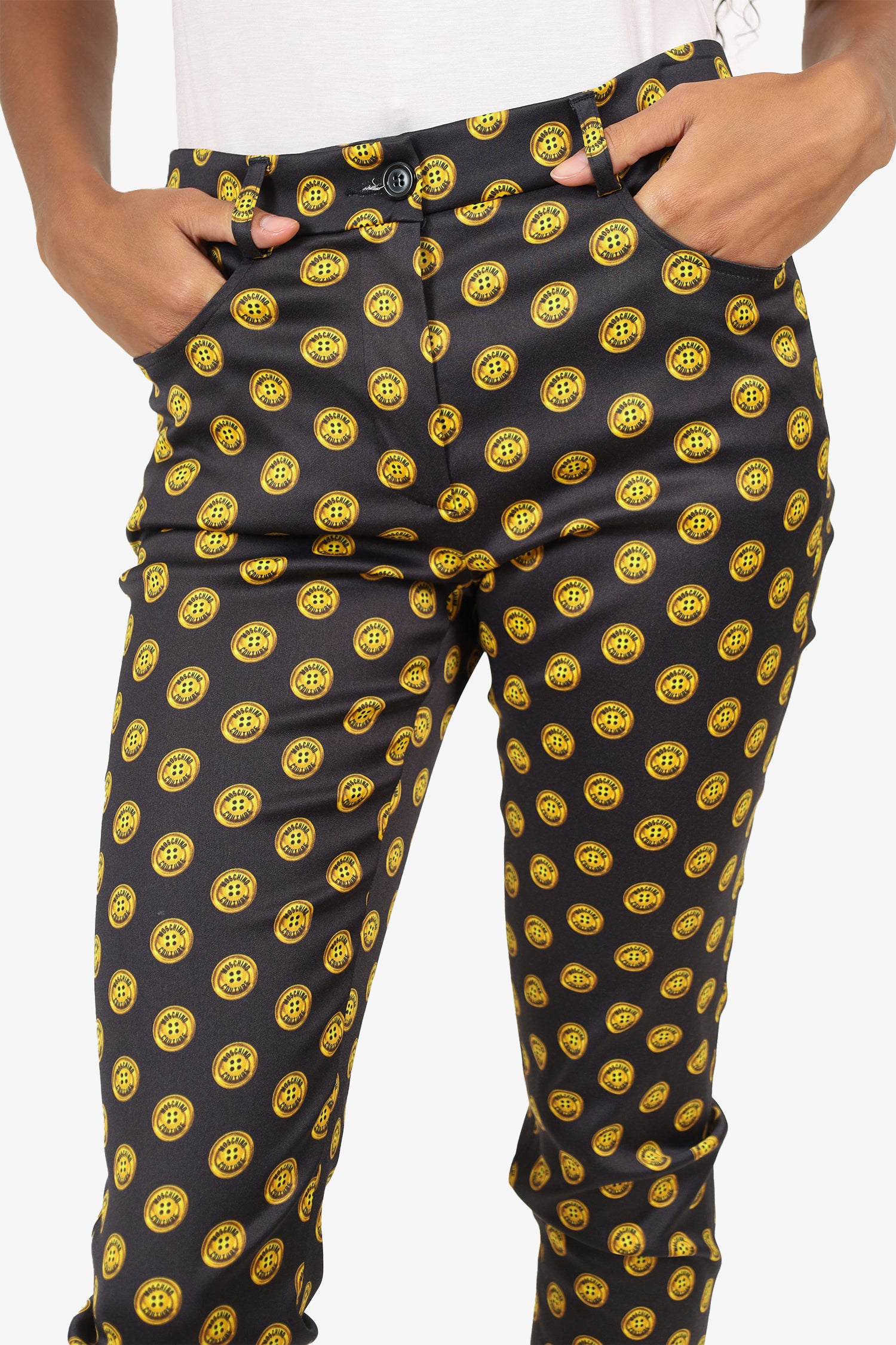 Moschino Couture Black/Yellow Button Print Straight Leg Trousers Size 6