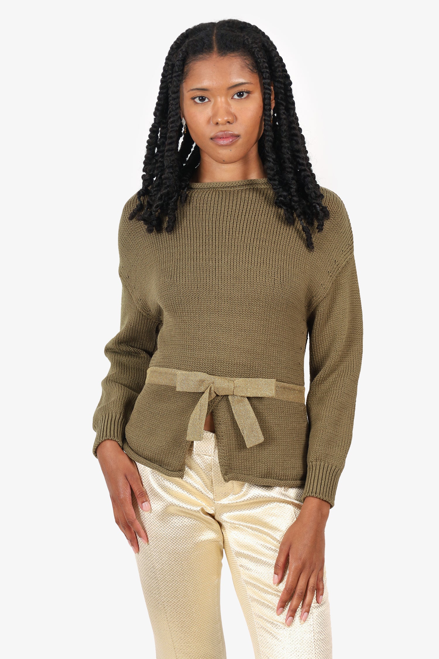 Moschino Green Cotton Knit Zip-Up Bow Sweater Size 8
