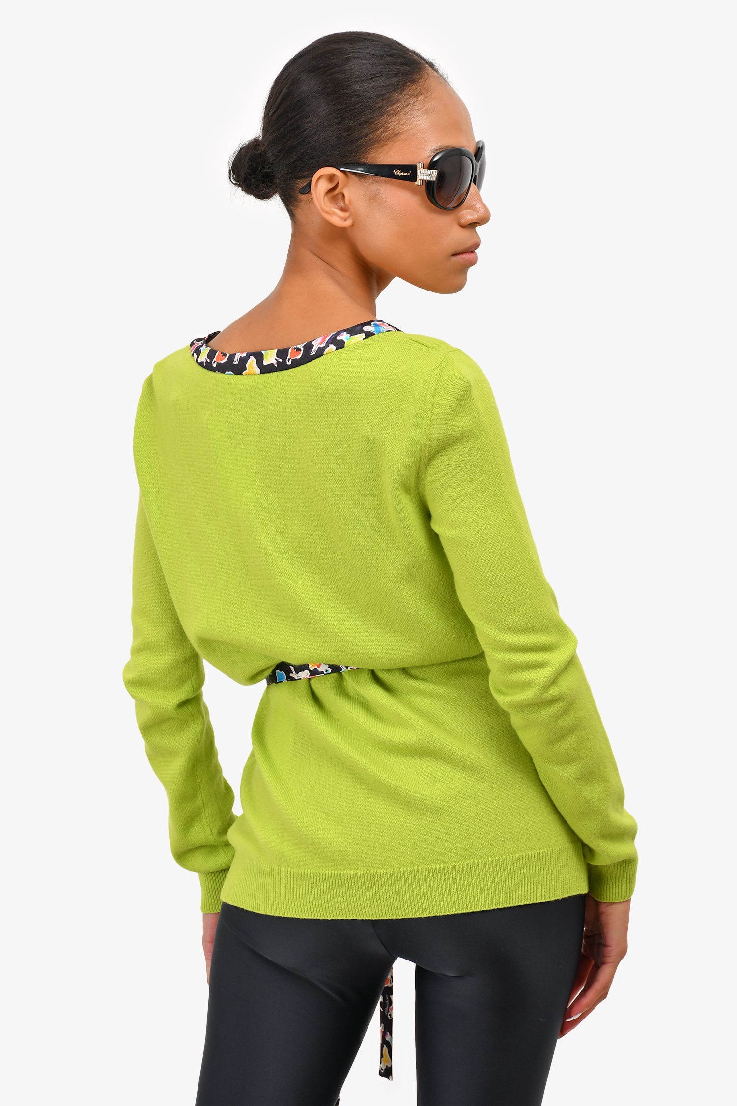 Moschino Lime Green Silk Belted Cardigan Size 38