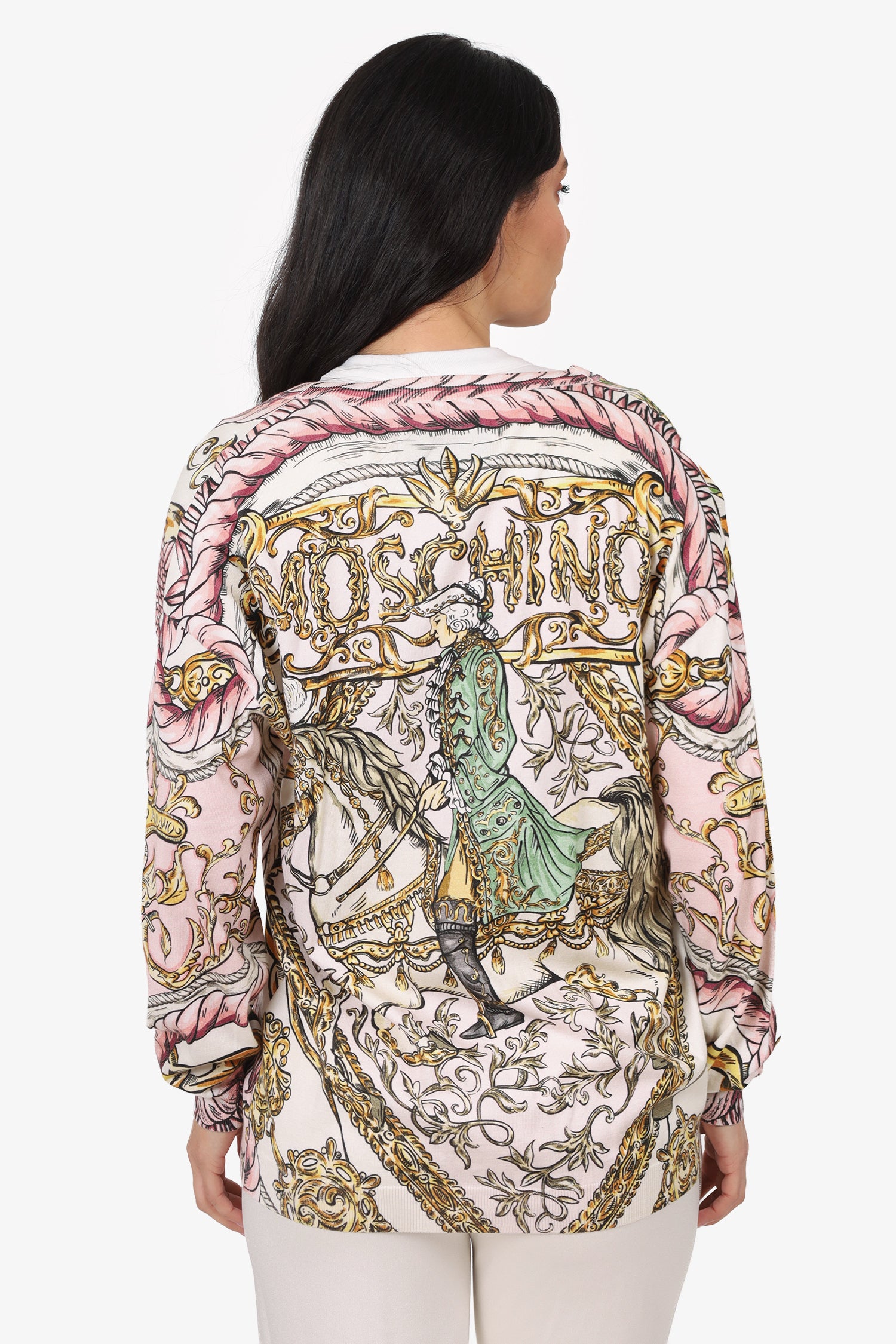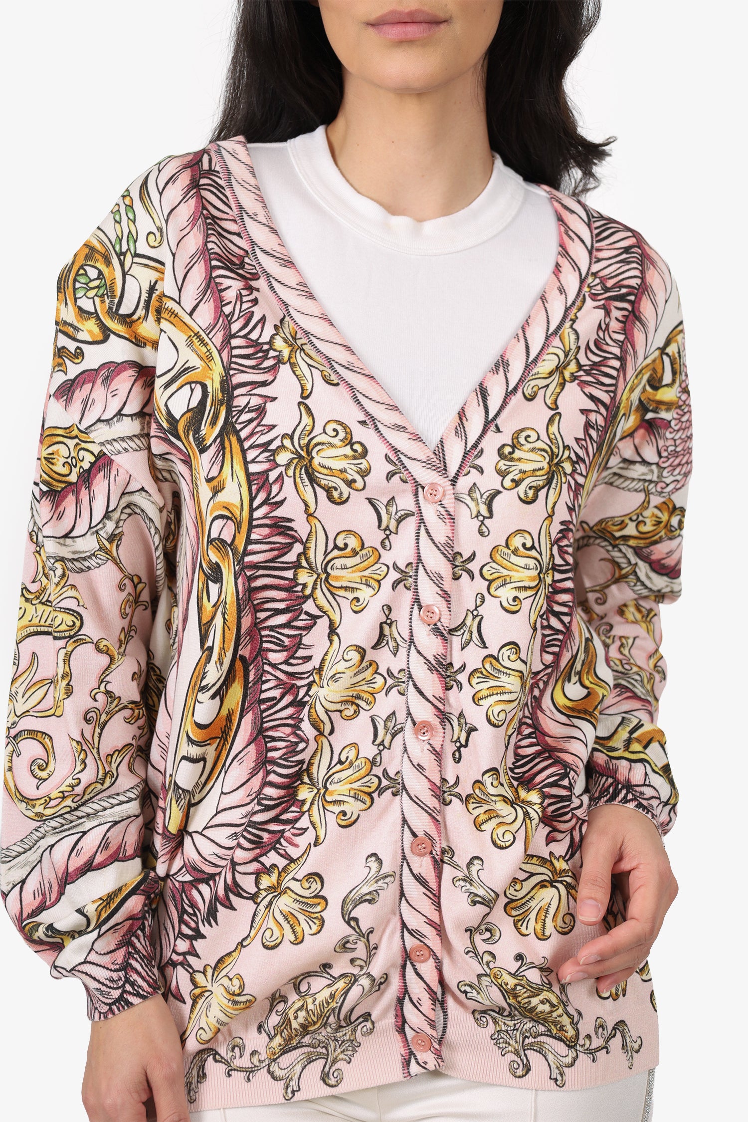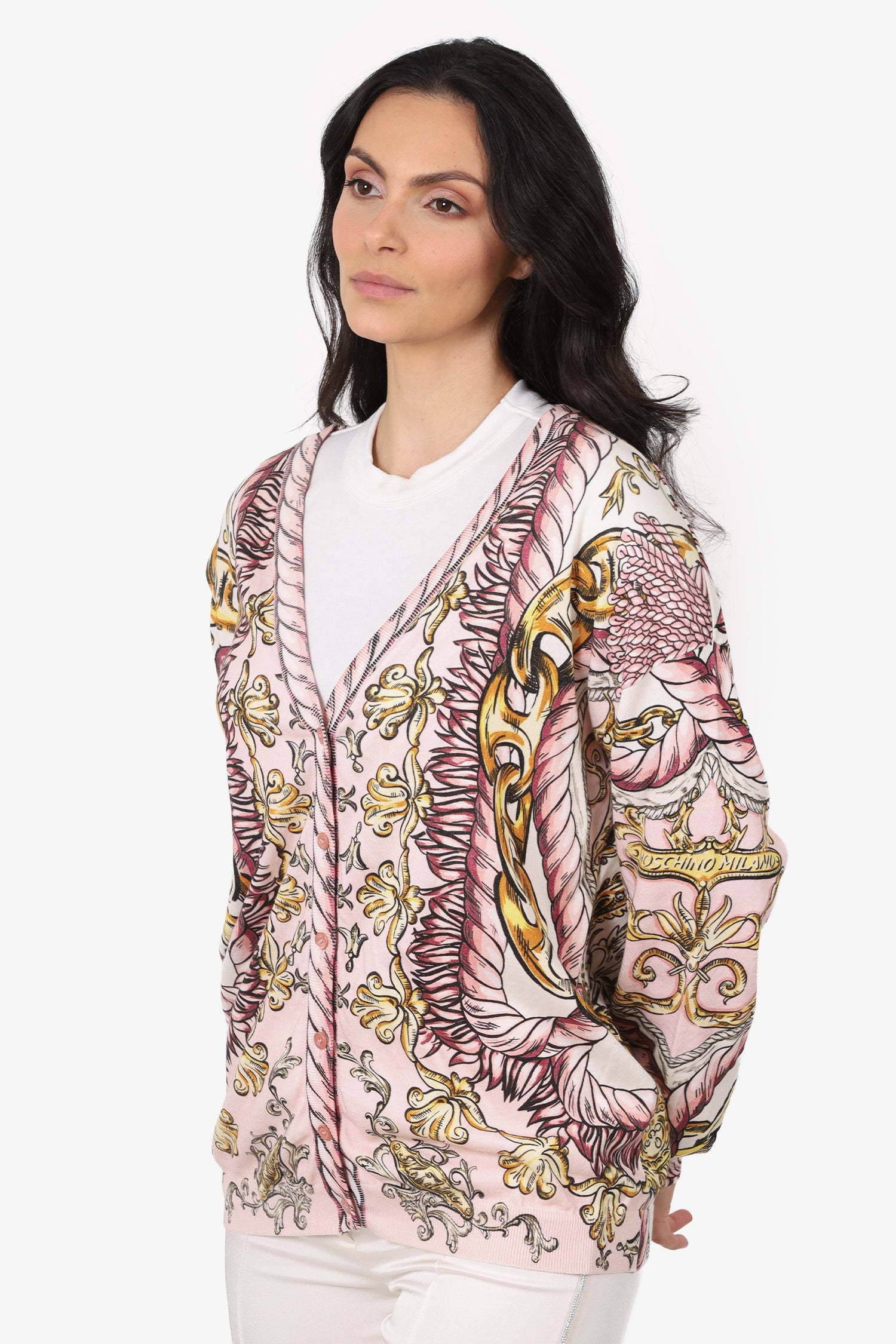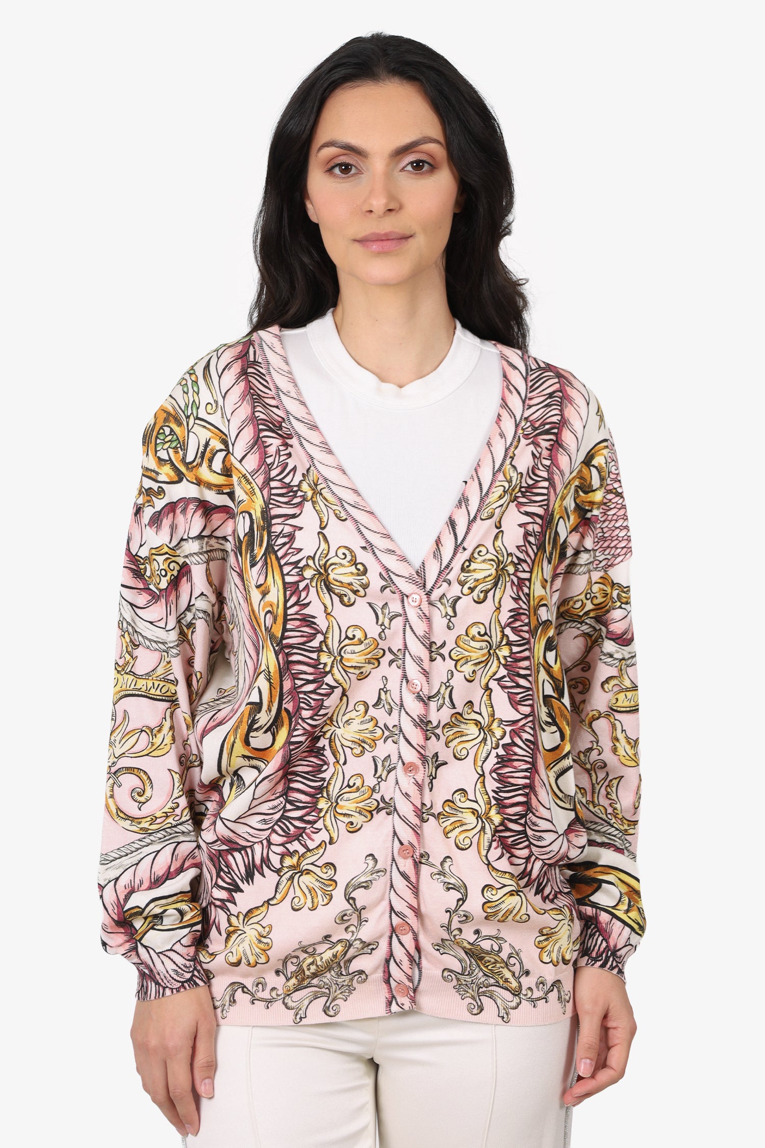 Moschino Pink Fantasy-Print Ribbed Knit Cardigan Size 10