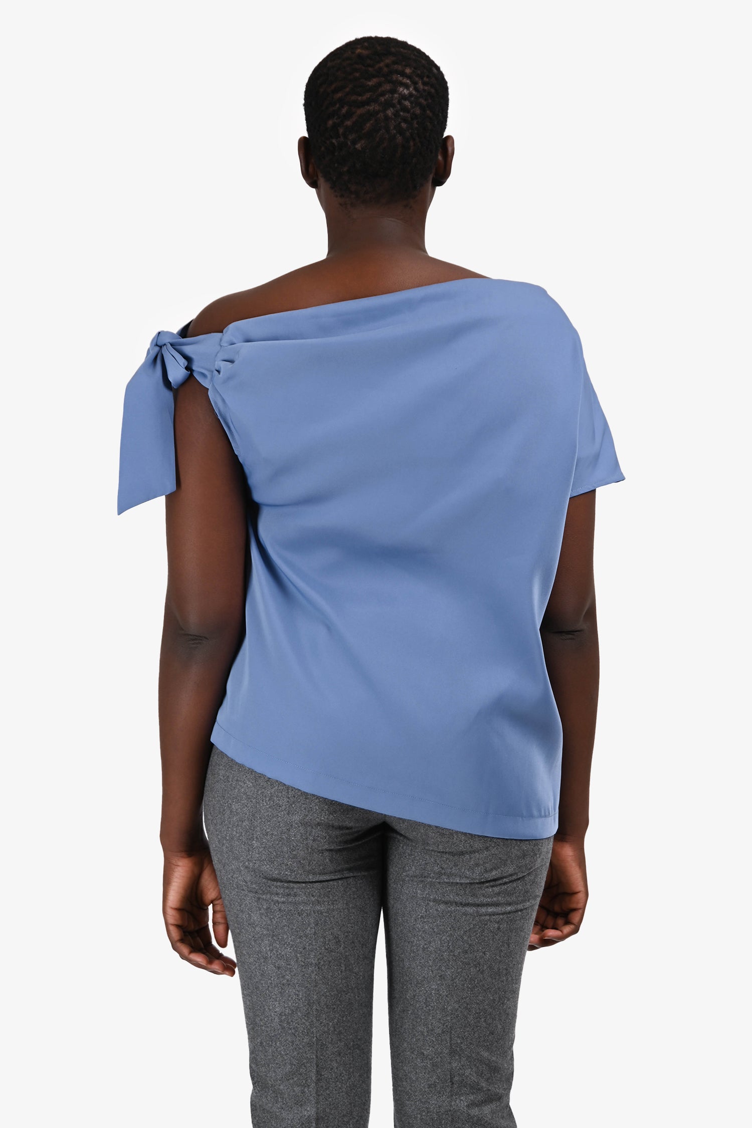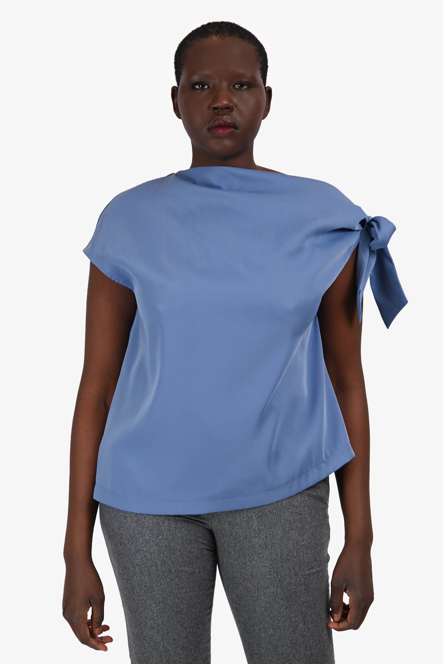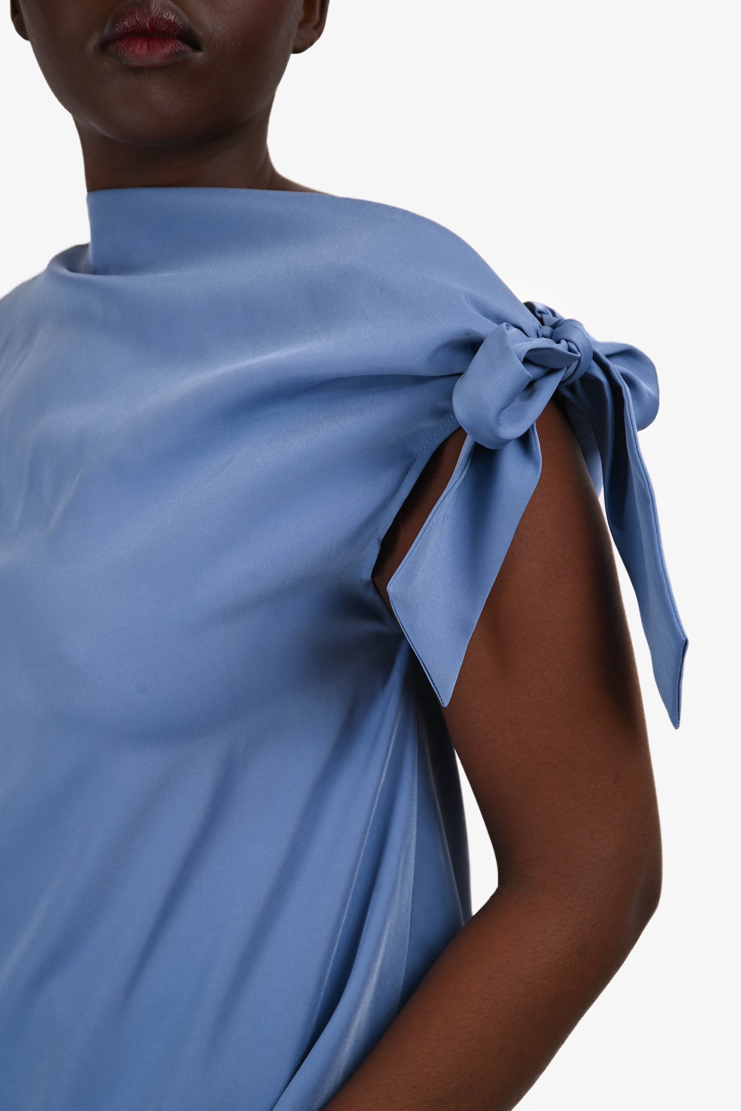 Mossman Blue Satin 'Drop Off' Cold Shoulder Tie Top Size L