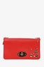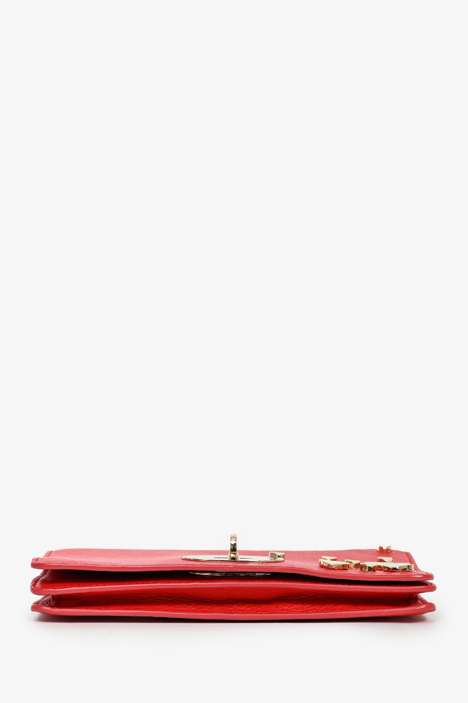 Mulberry Red Grained Leather Gold Heart Embellished 'Bayswater' Wallet on Chain