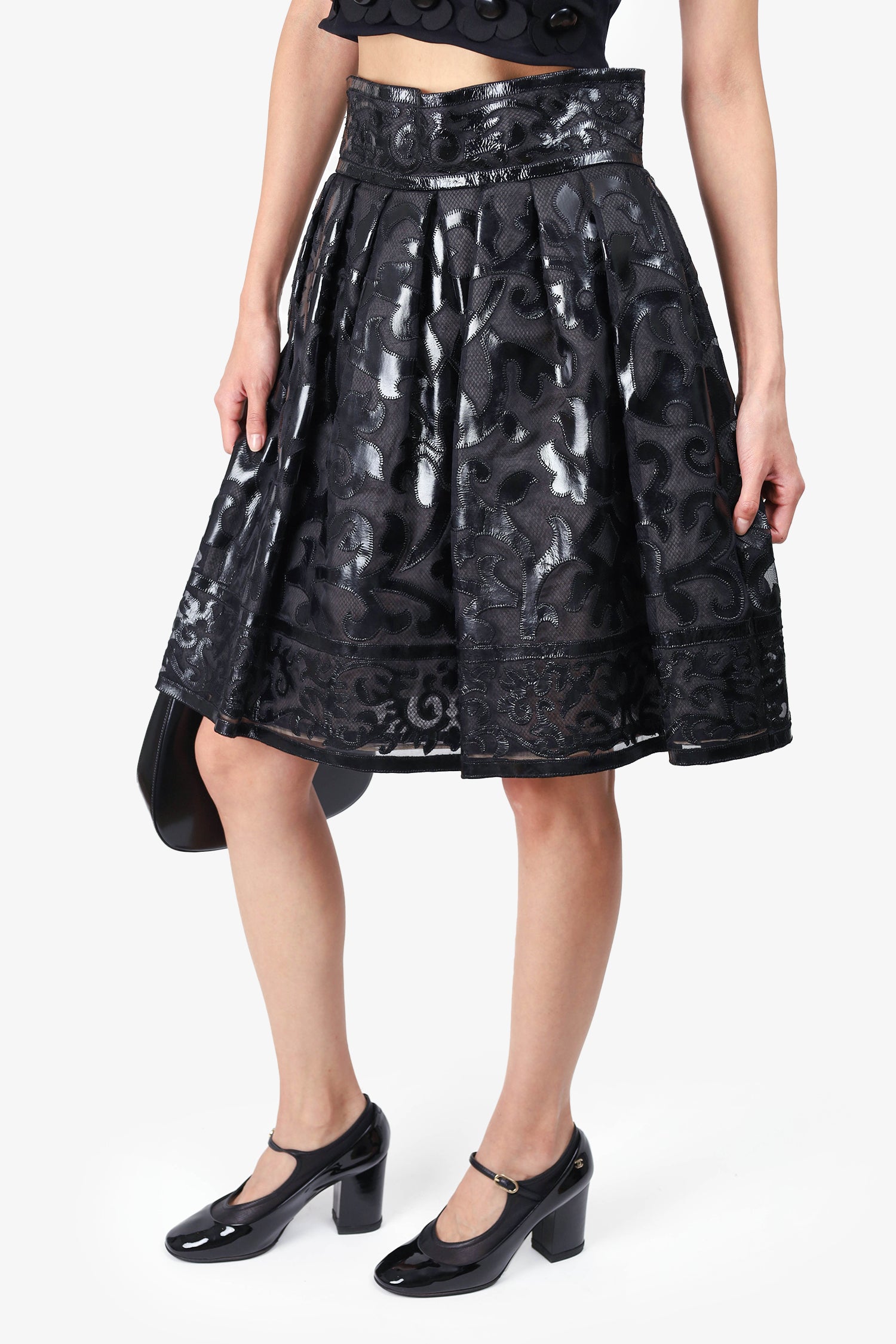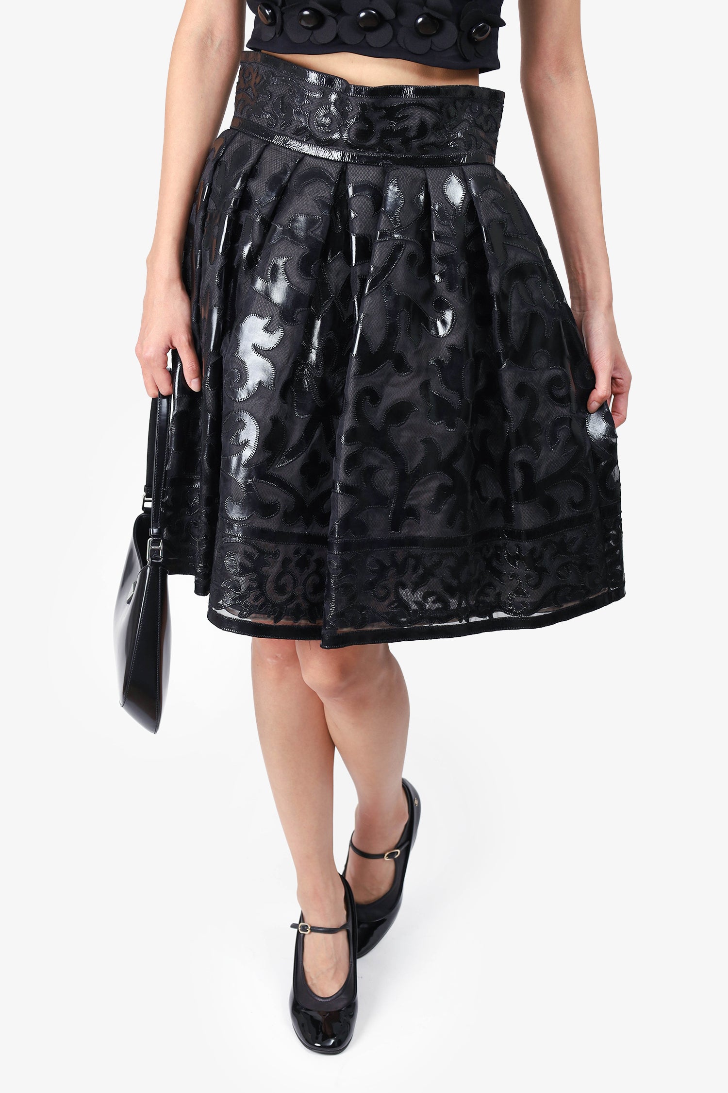 Naeem Khan Black Slim Patterned Pleated Skirt Size 8 (As Is)
