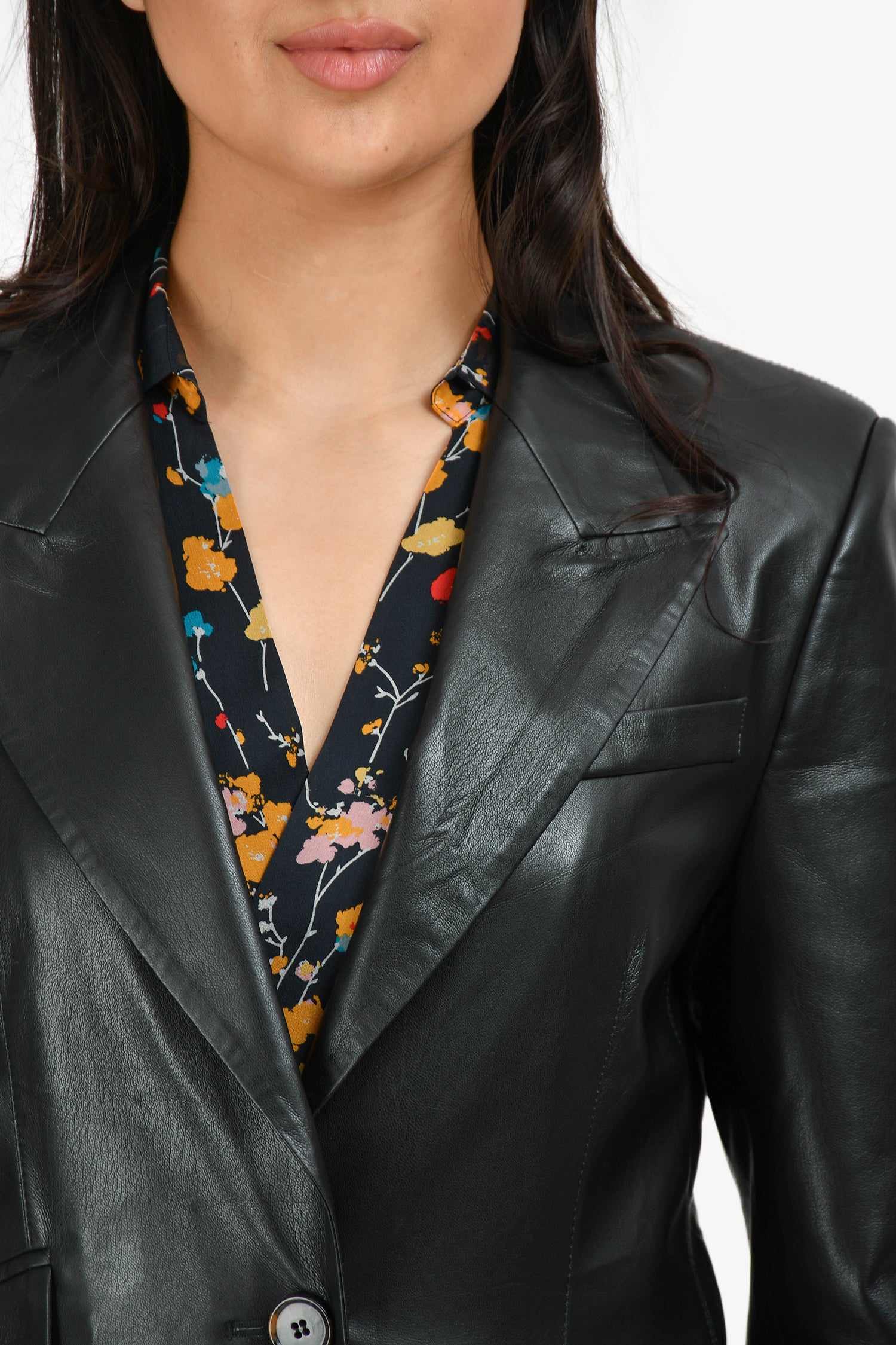 Refresh availabilityNanushka Black Faux Leather Single Breasted Blazer. Front button-up closure. Front decorative pockets. Lined. Tonal stitching.