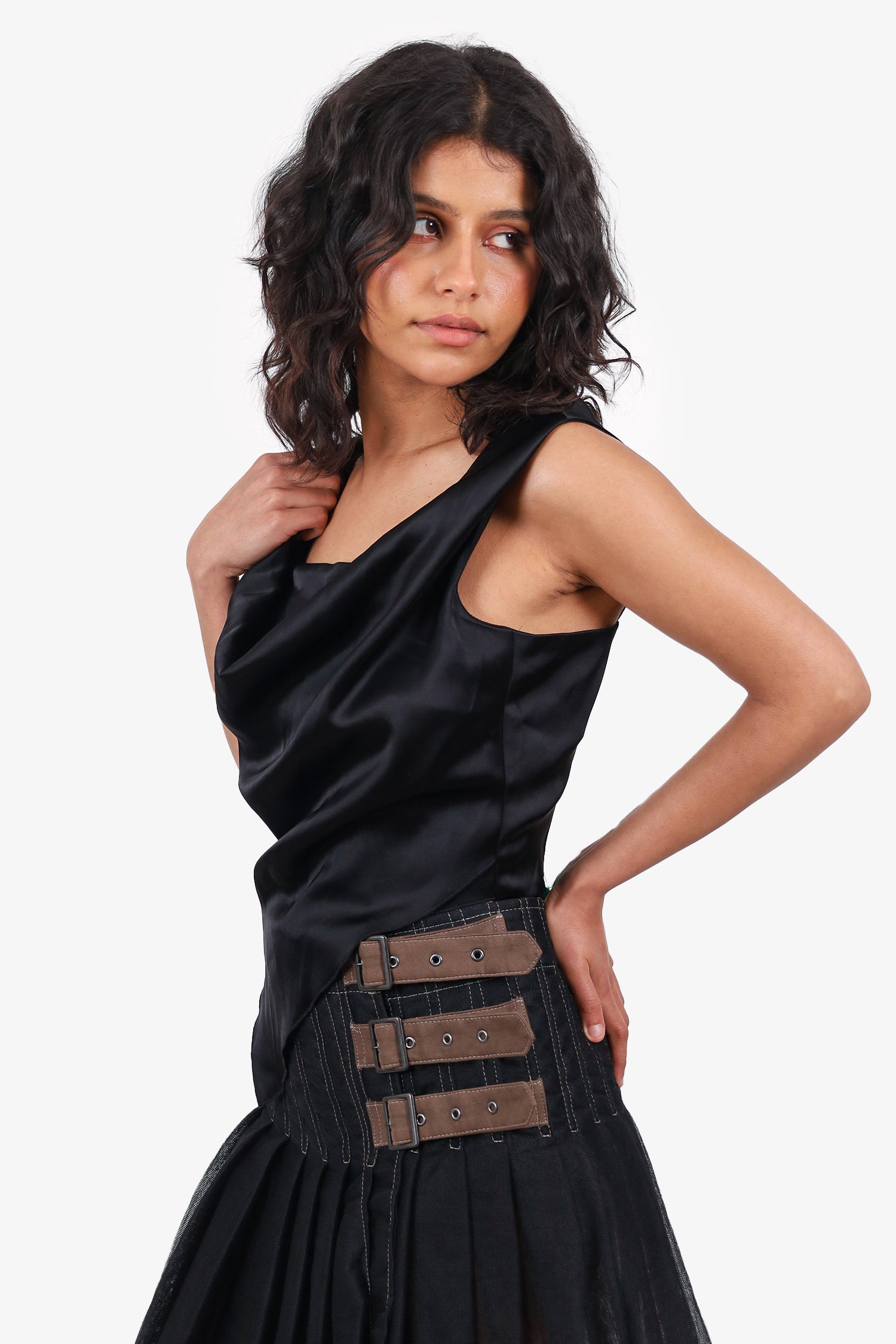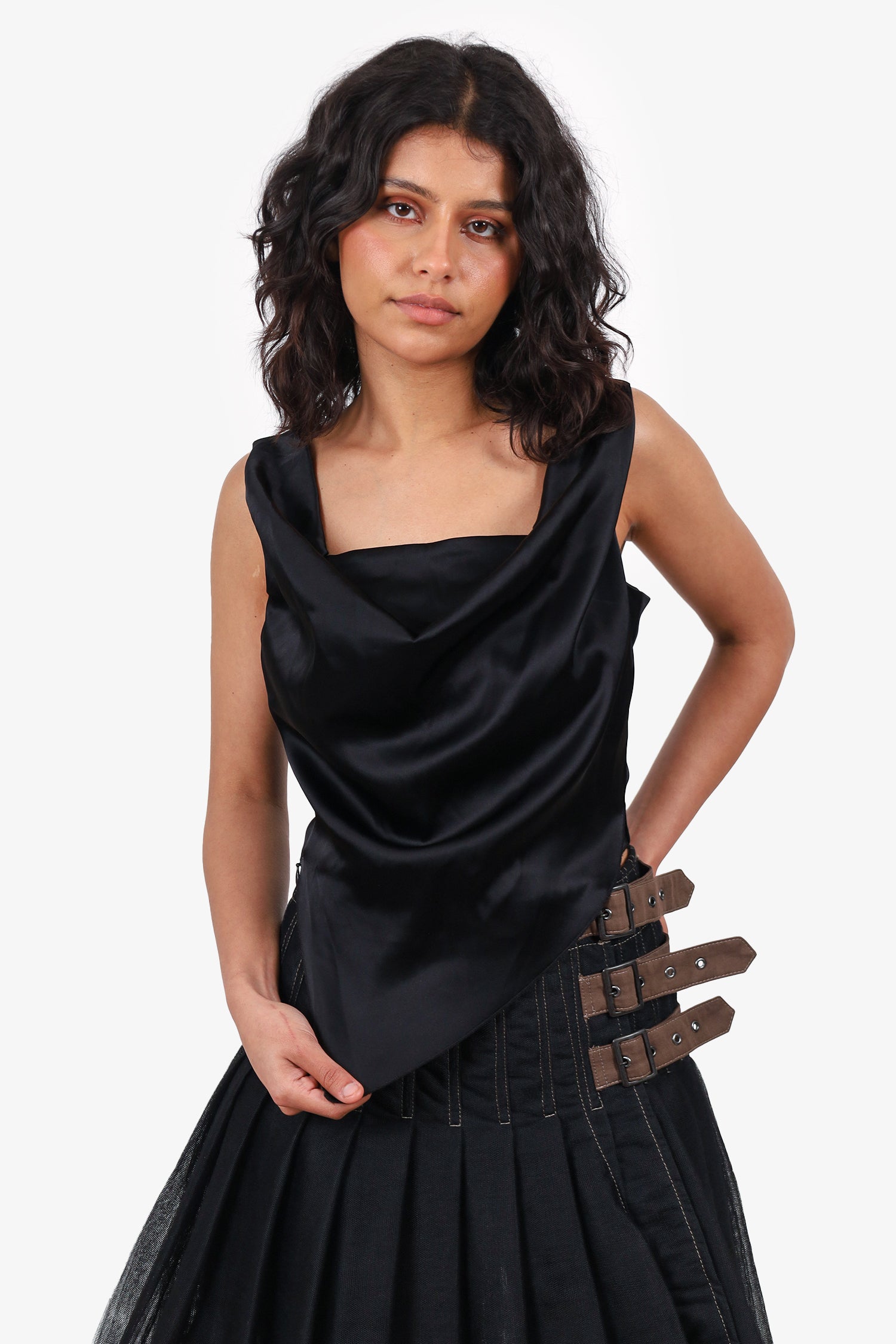 Refresh availabilityNanushka Black Satin Petra Top. Pull-on. Cowl-neckline. Size zip closure. Tonal stitching.