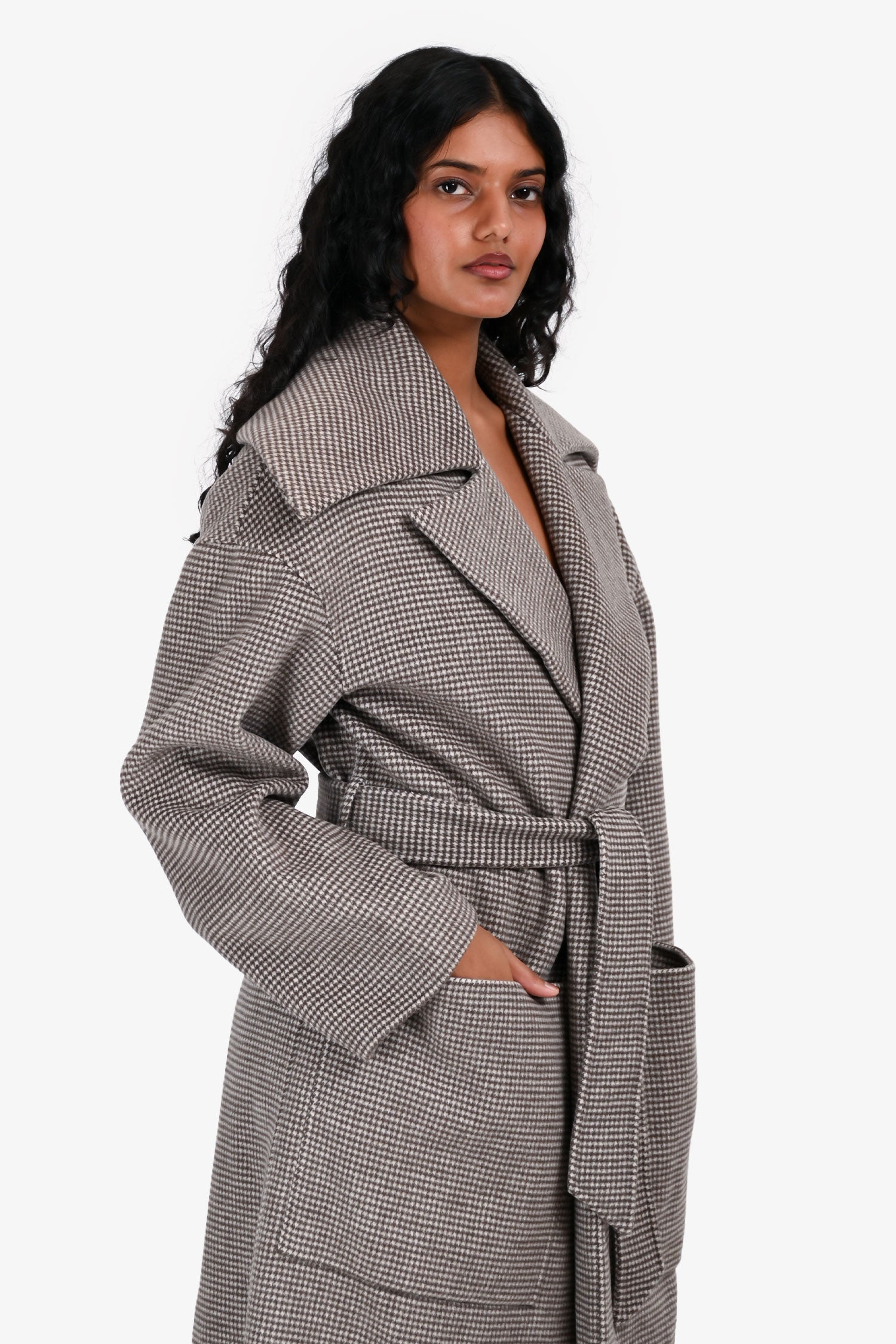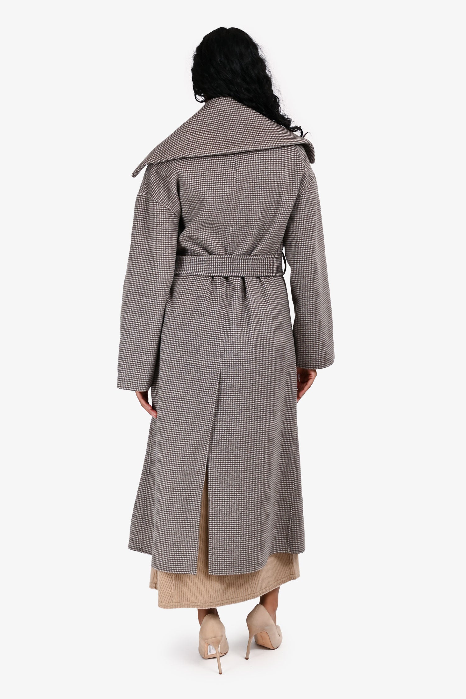 Nanushka Brown 'Ruta' Houndstooth Belted Long Coat Size XXS