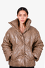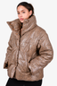 Nanushka Brown Snake Printed Faux Leather Puffer Jacket Size S