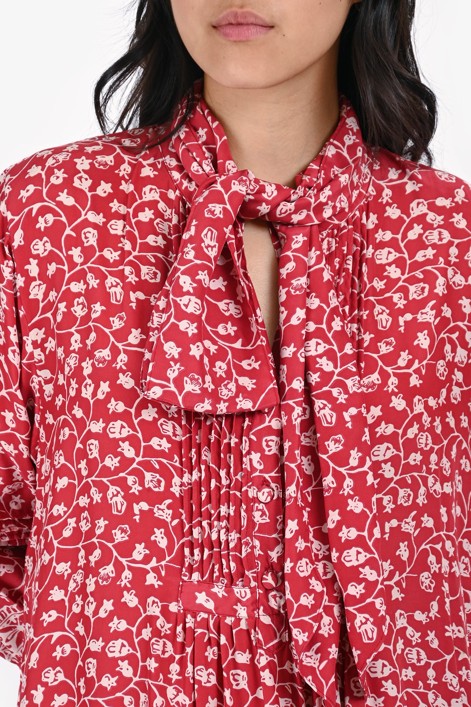 Refresh availabilityNatalie Martin Red/White Floral Pattern Silk Maxi Dress. Front button closure. Comes with a belt. Tonal stitching.