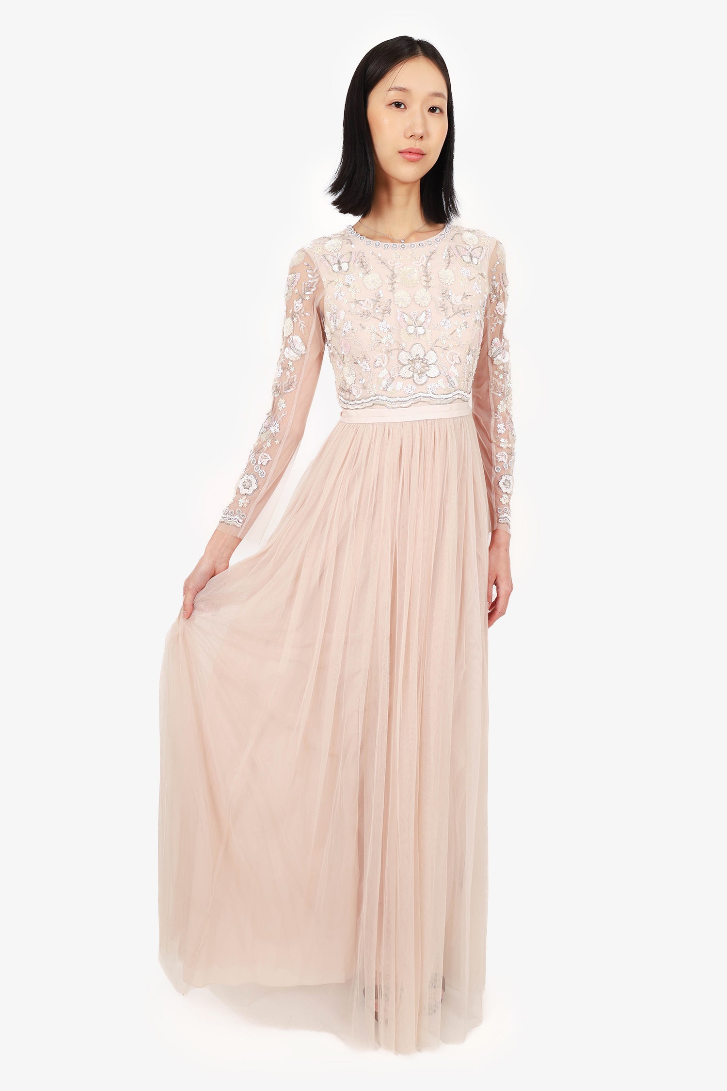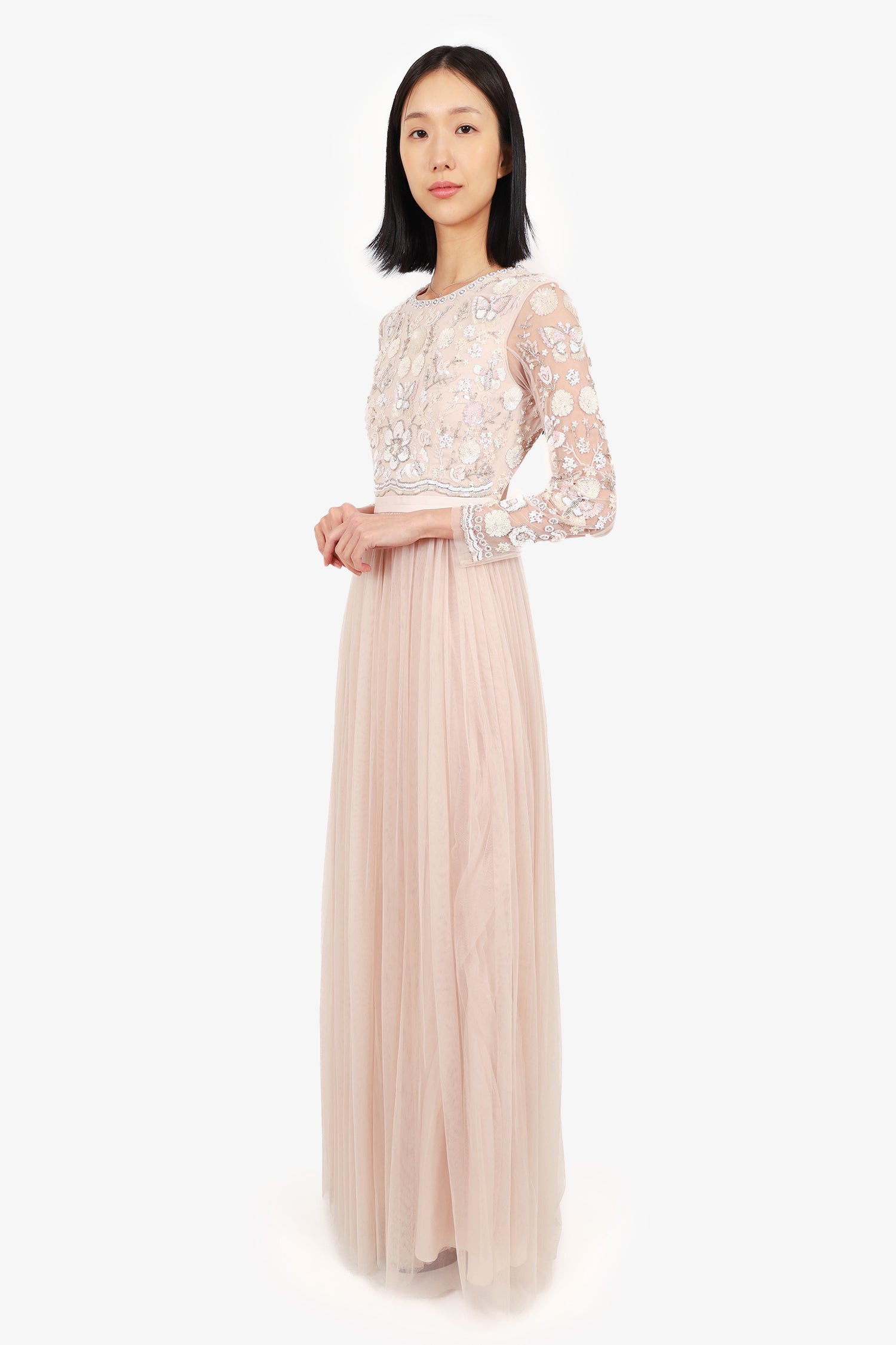 Needle and Thread Pink Beaded Mesh Gown Size 4