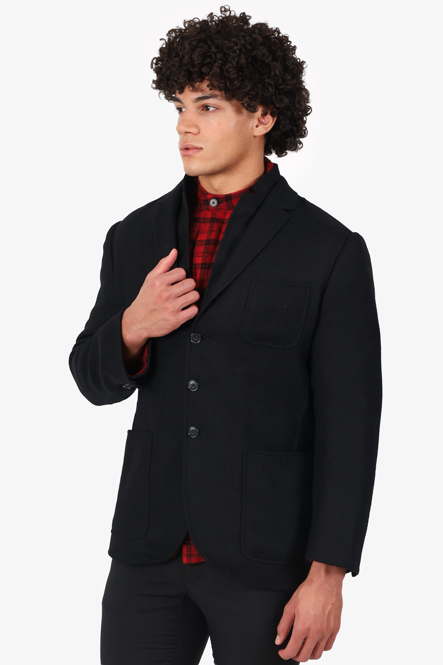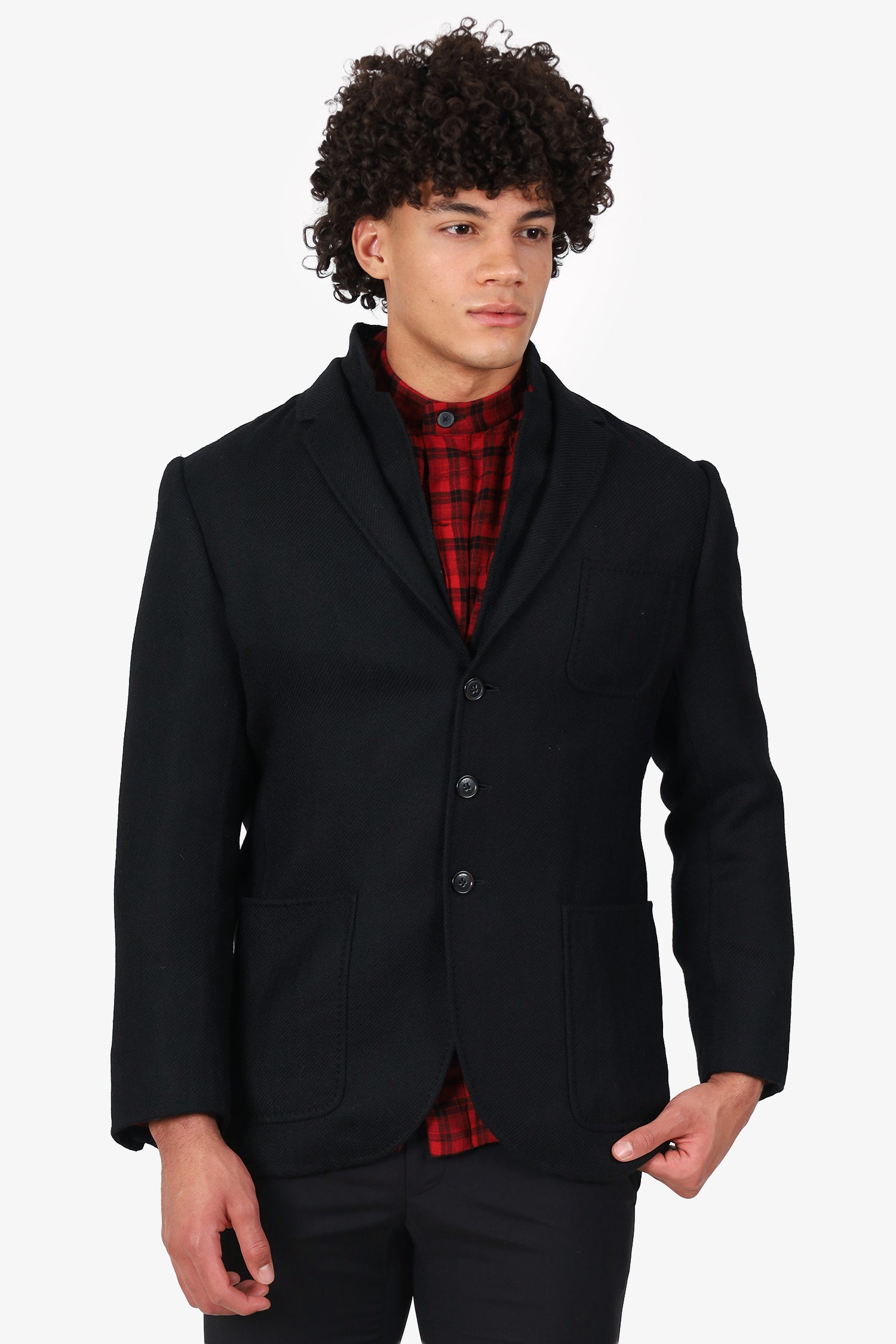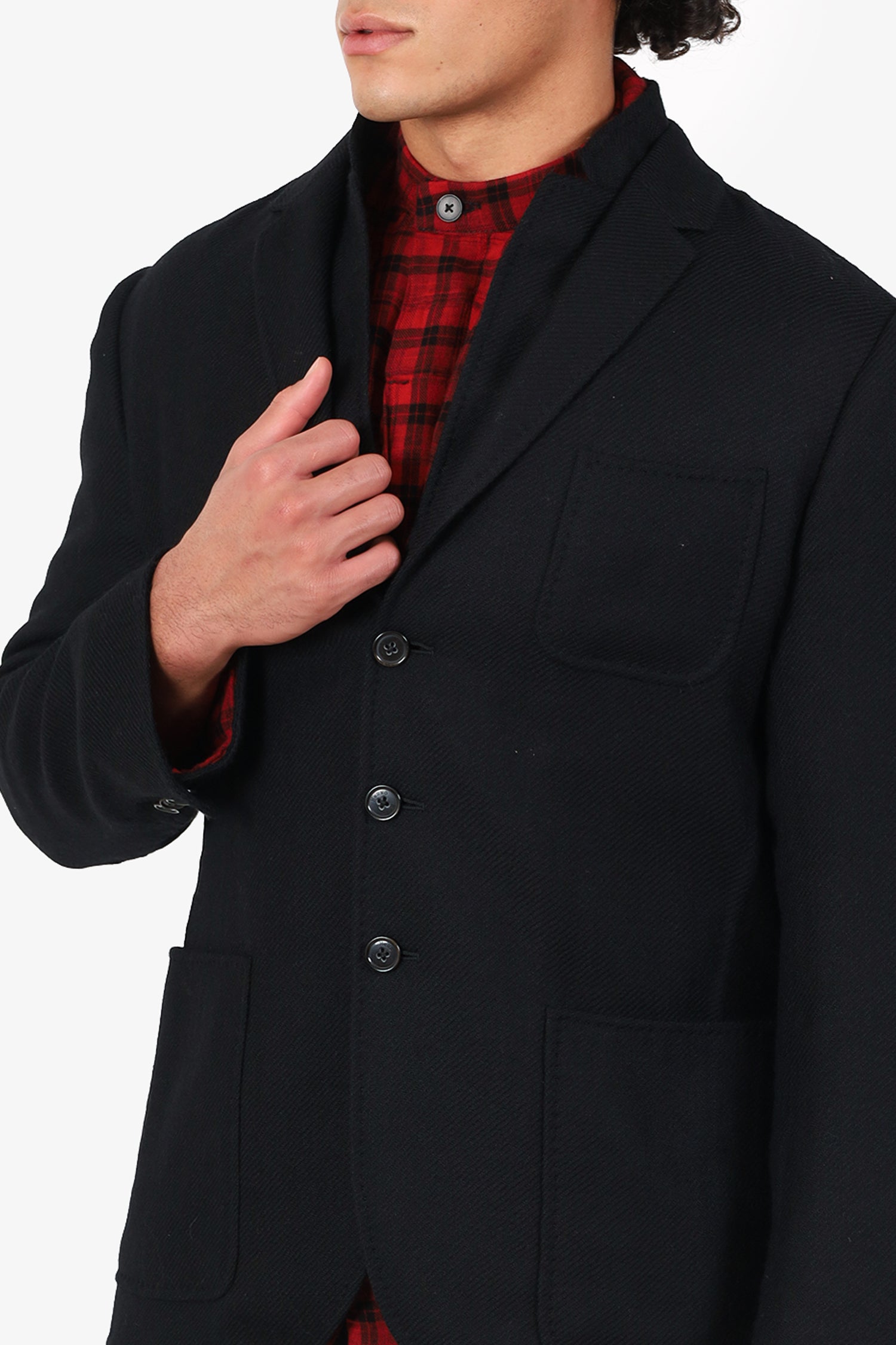Refresh availabilityNeil Barrett X Herno Black Wool Button Down Jacket. Pull-on. Collared neckline. Front button-up closure. Padding to shoulders. Sleeve cuffs with button-up closure. 3 exterior slip pockets; 1 chest, and 2 front . Tonal stitching.